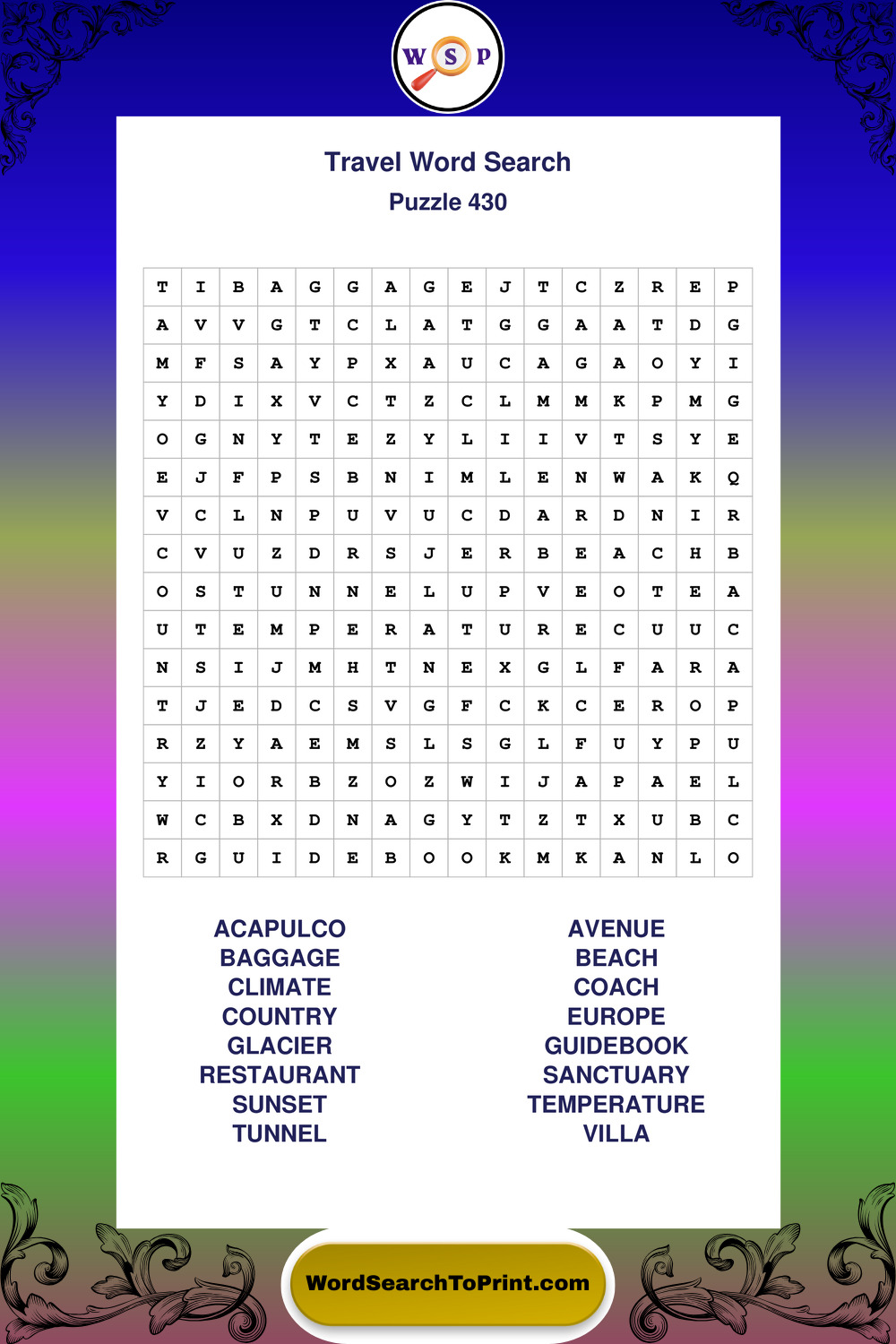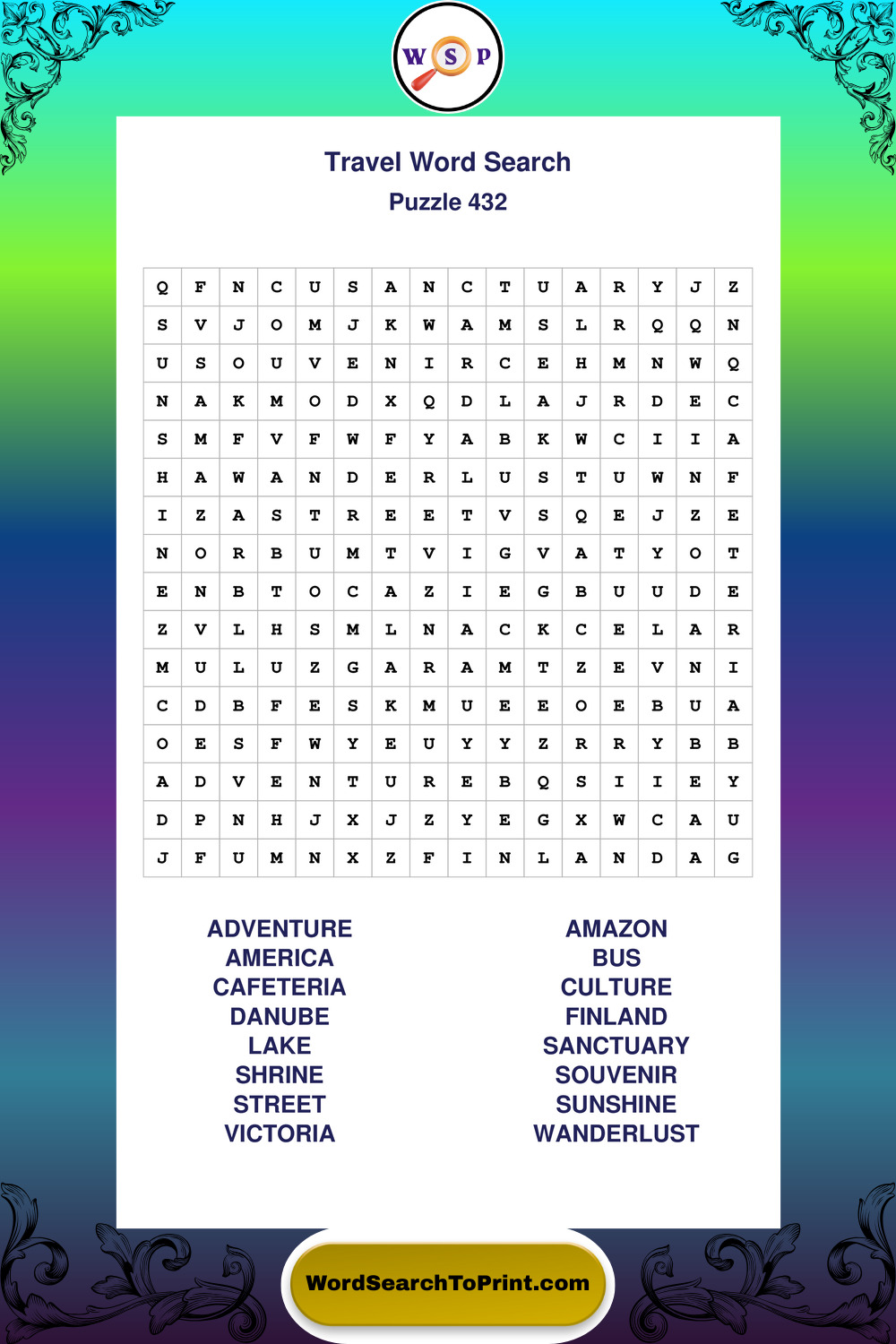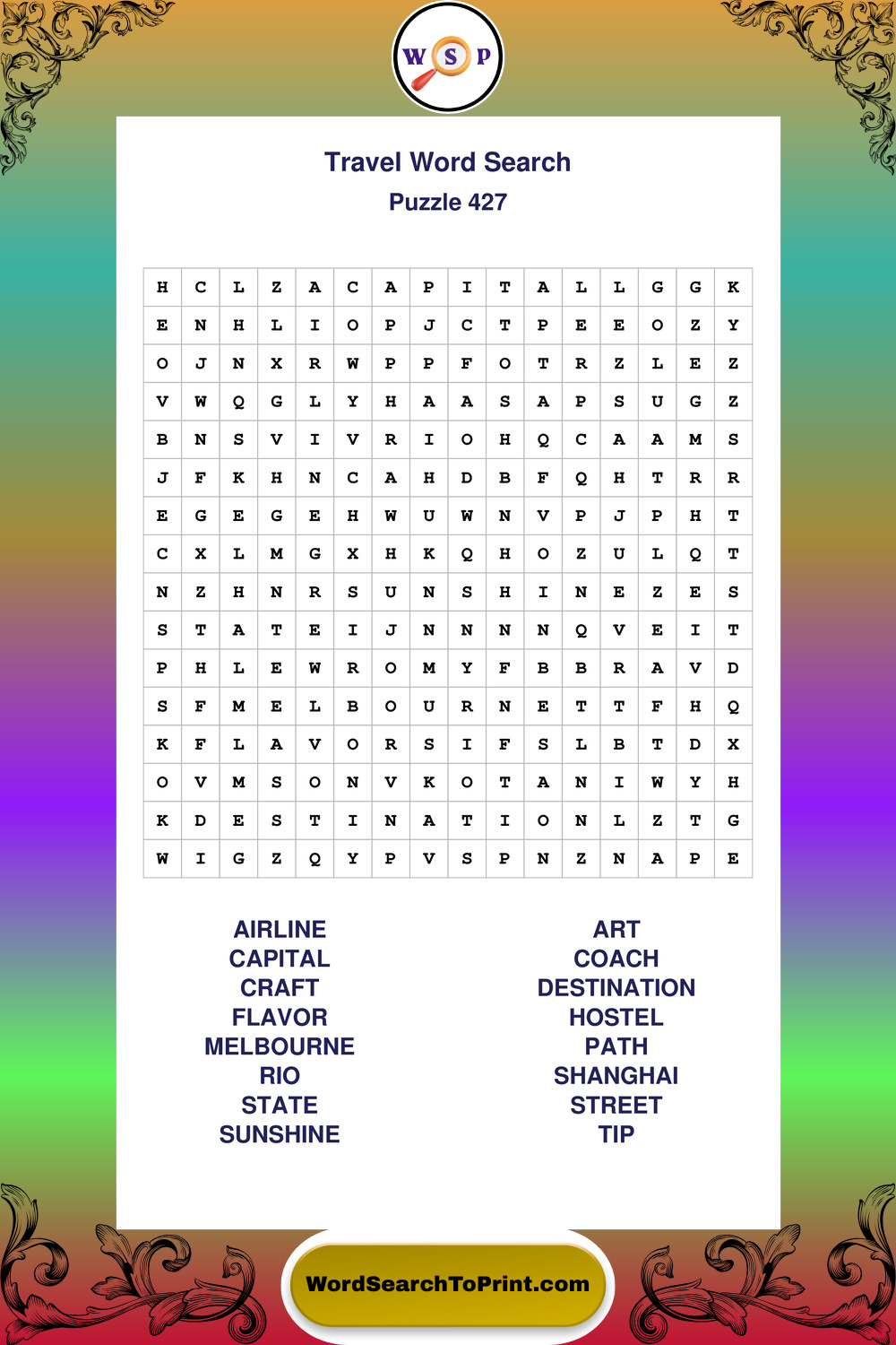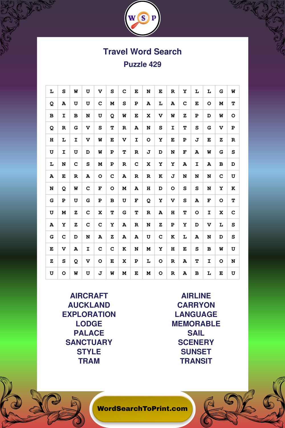 Printable Travel Wordsearch Puzzles