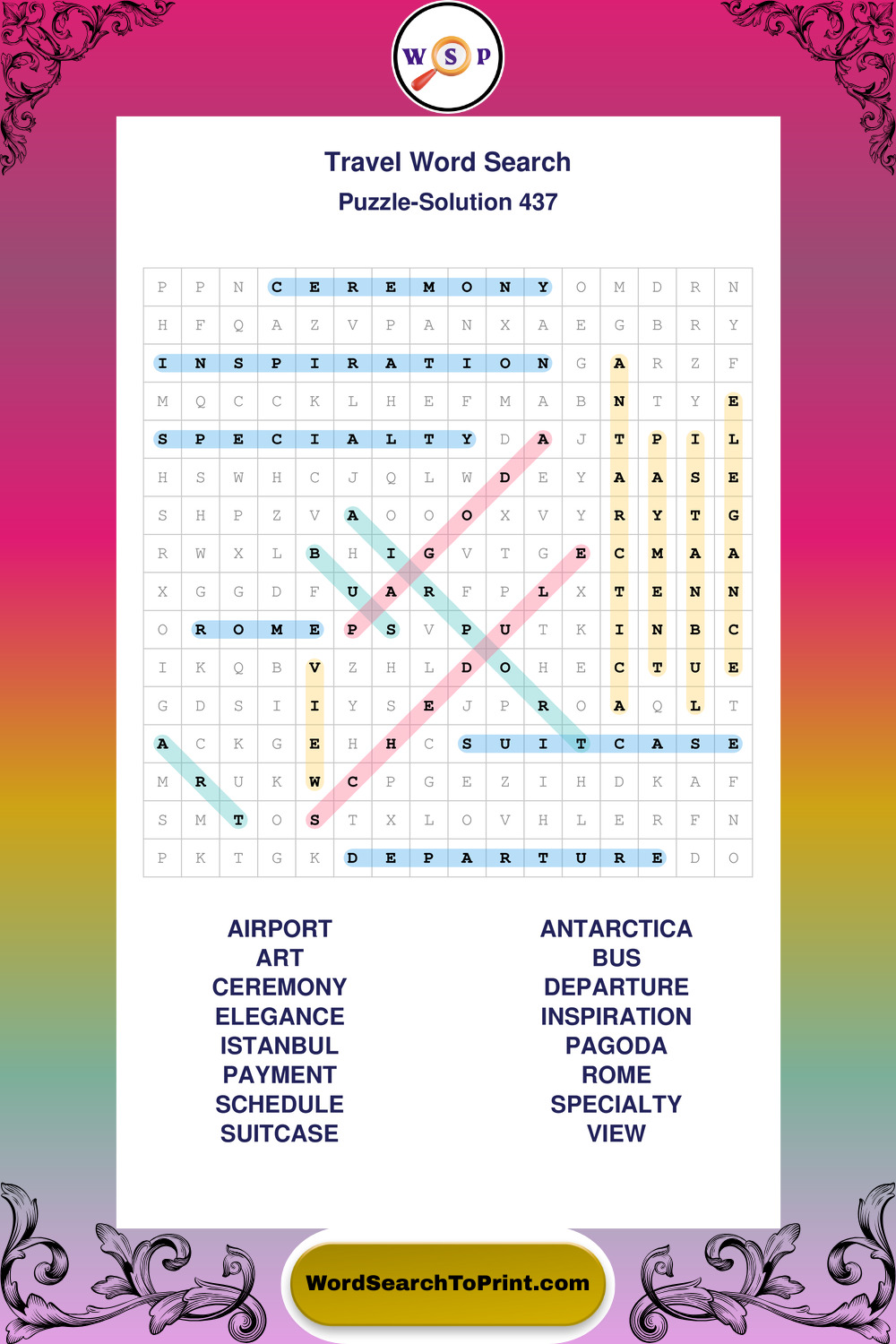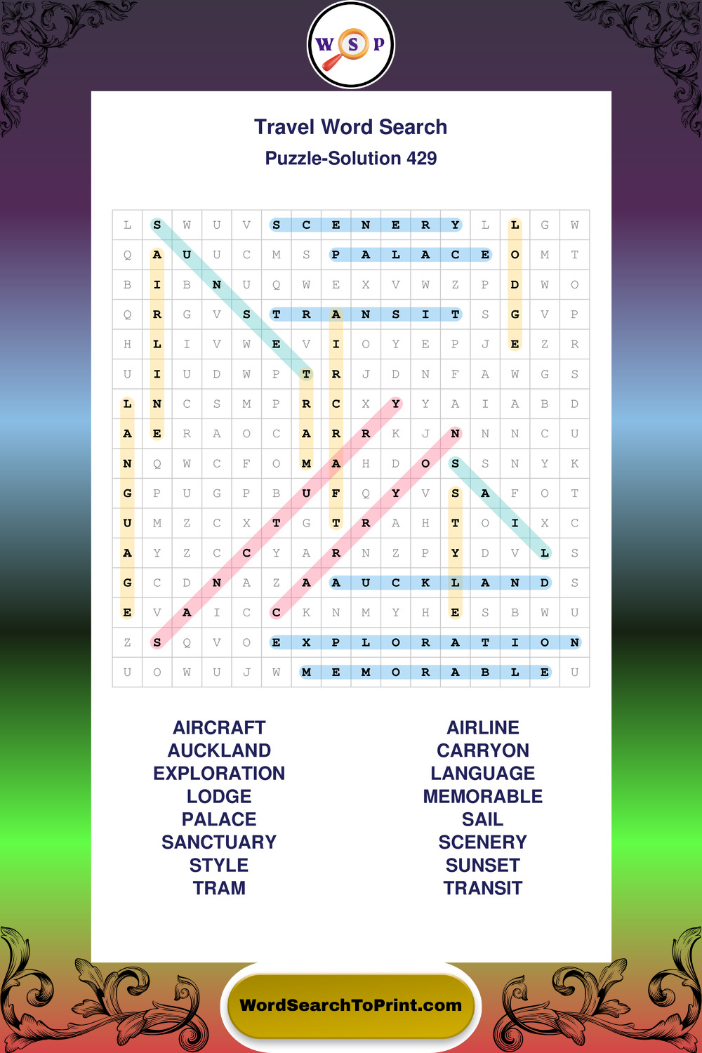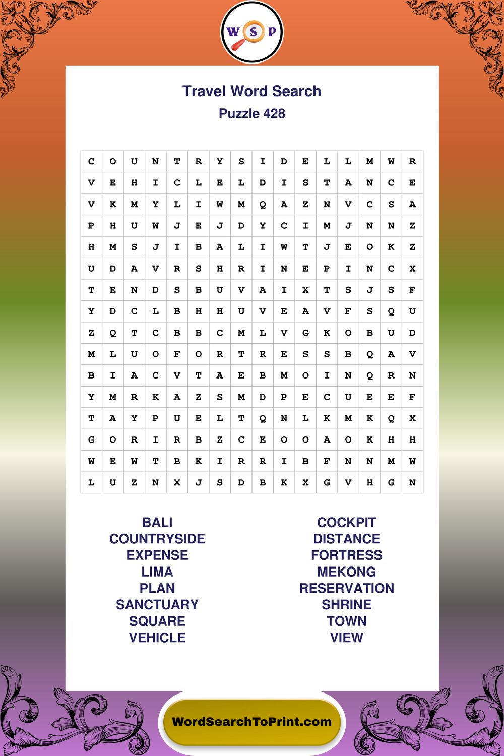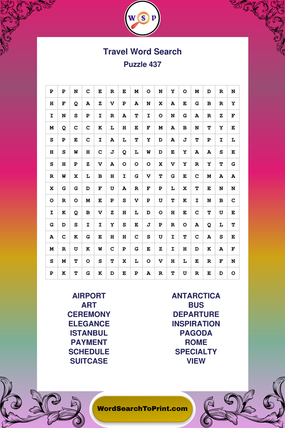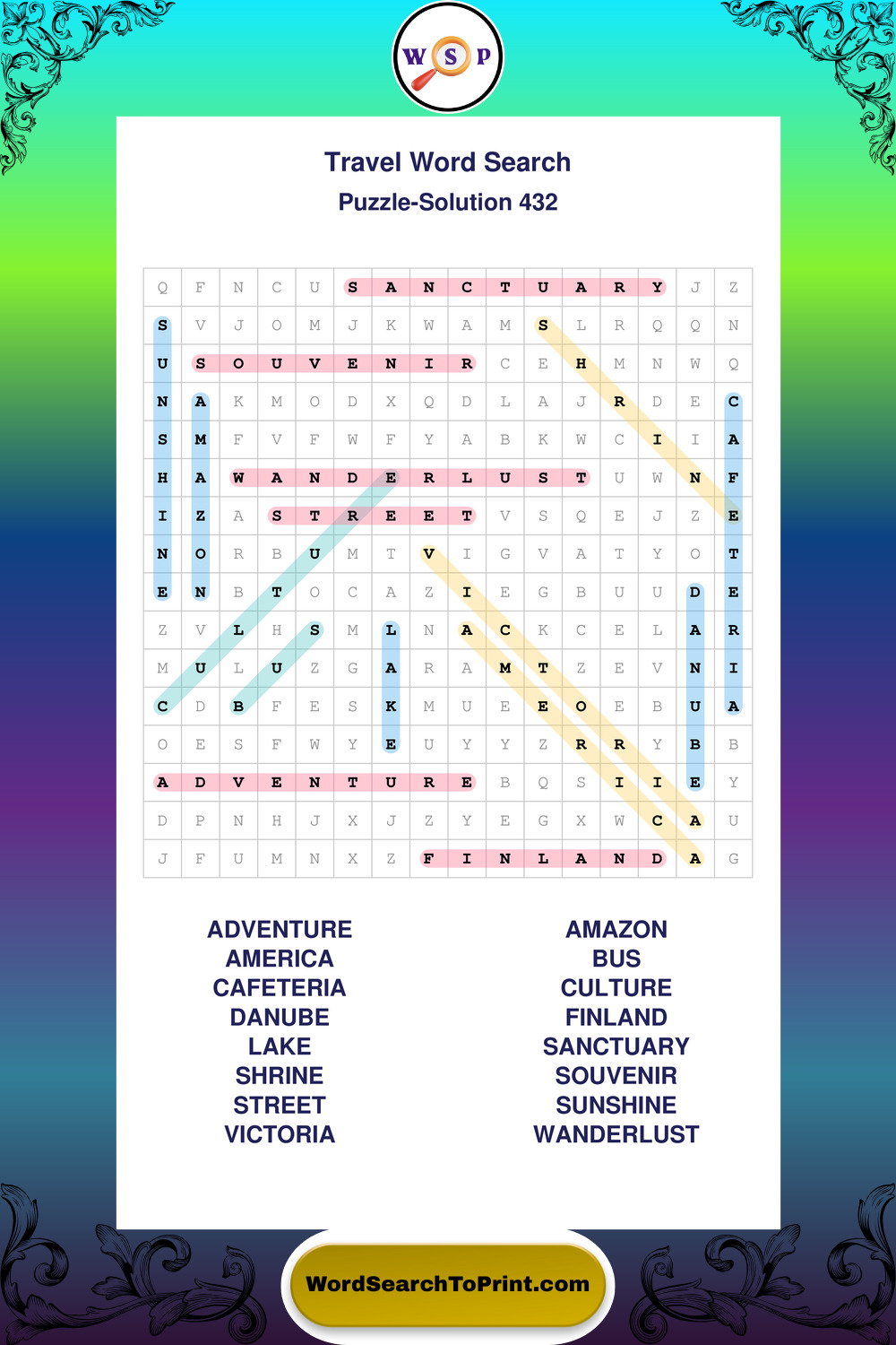 Printable Travel Wordsearch Puzzles
