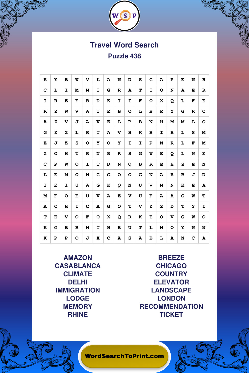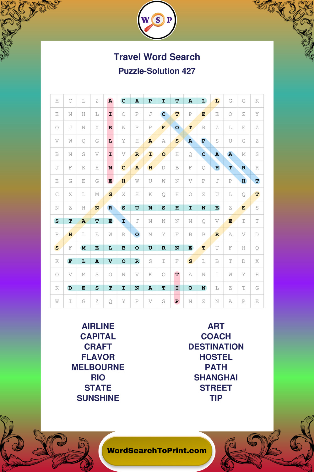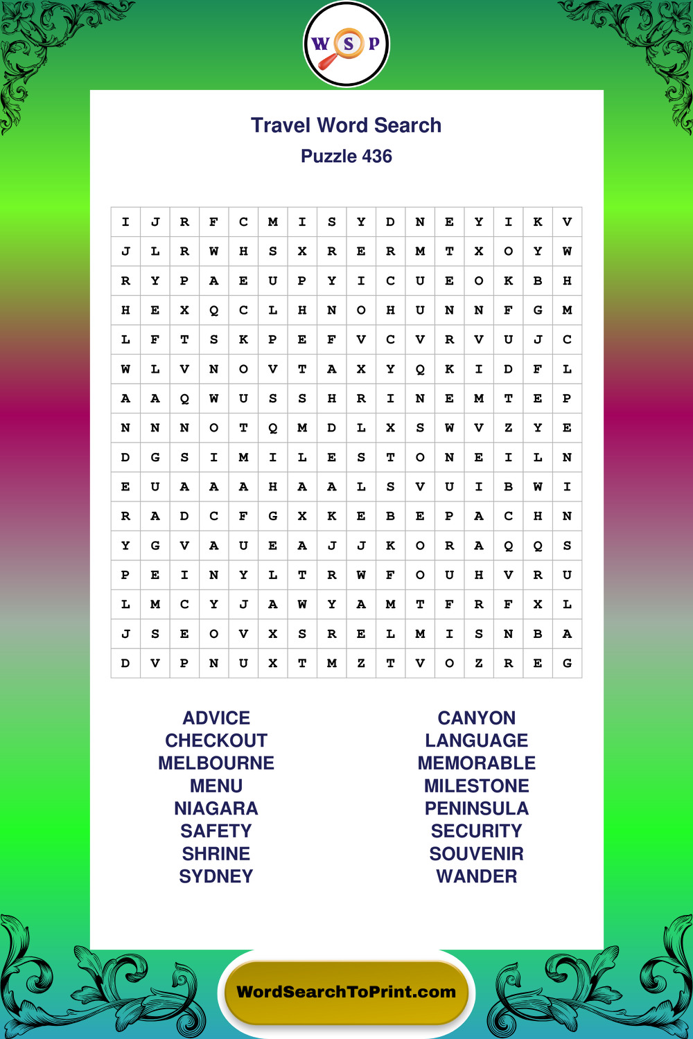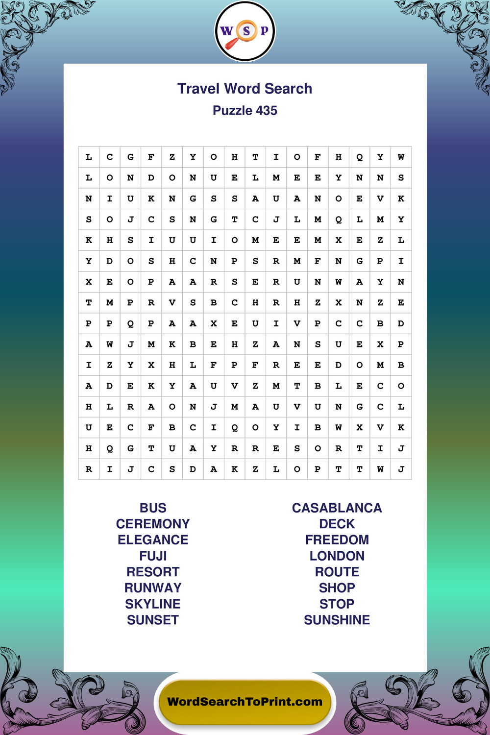 Printable Travel Wordsearch Puzzles