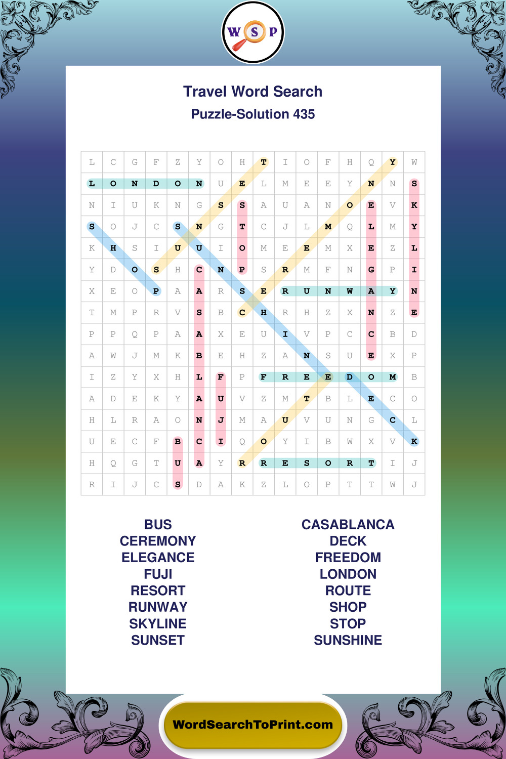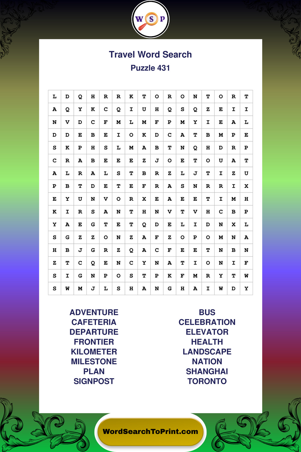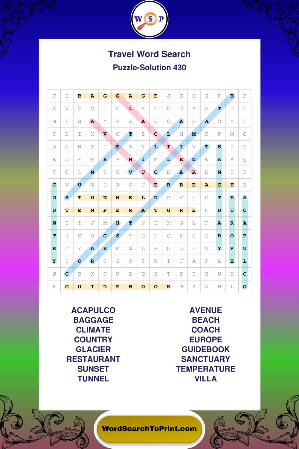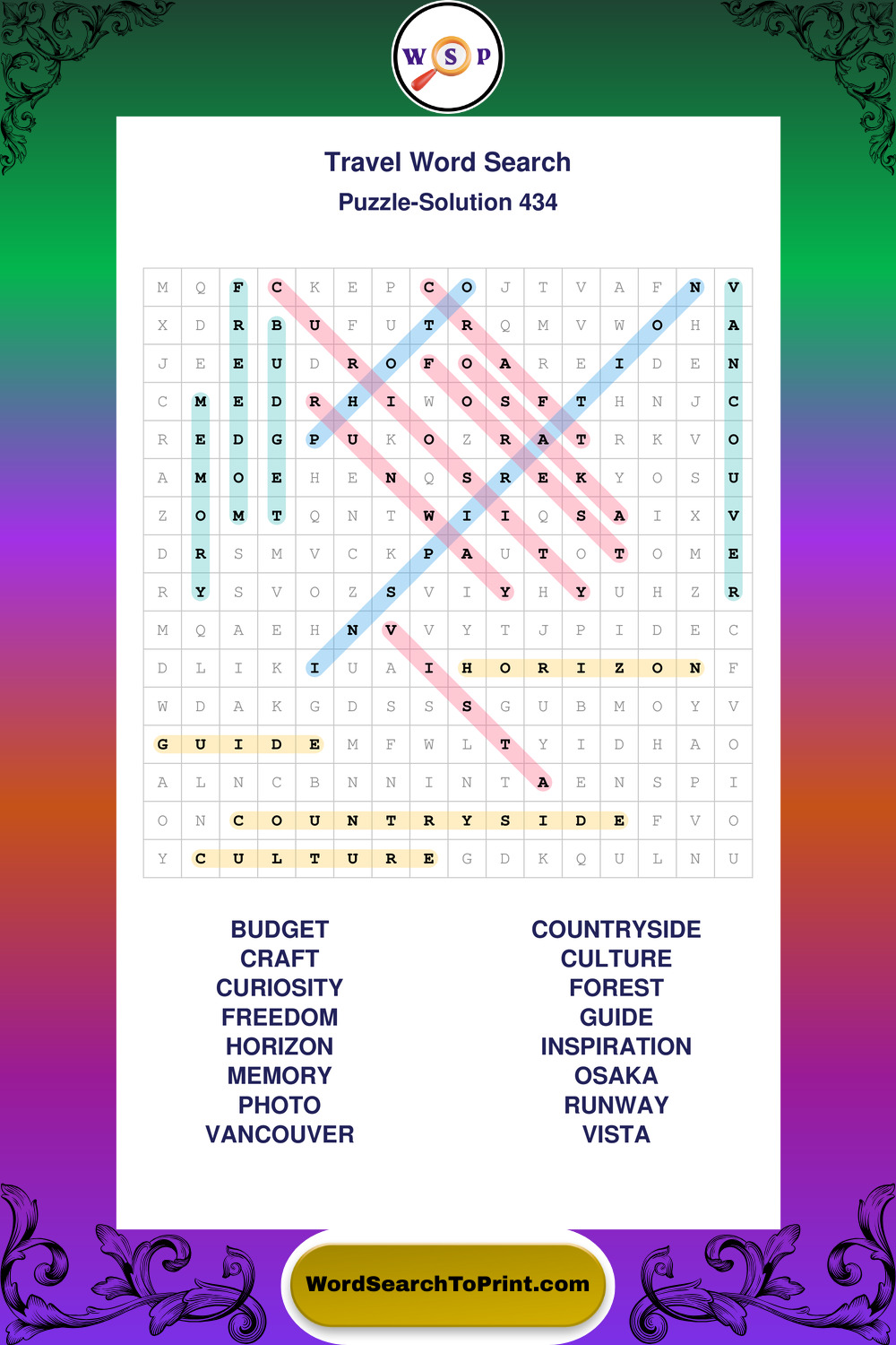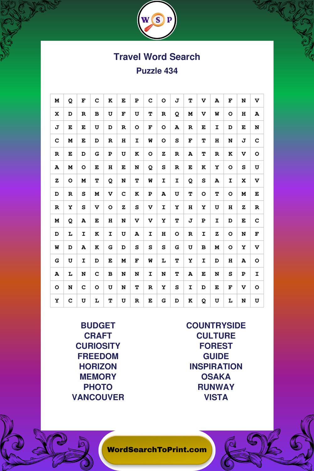 Printable Travel Wordsearch Puzzles