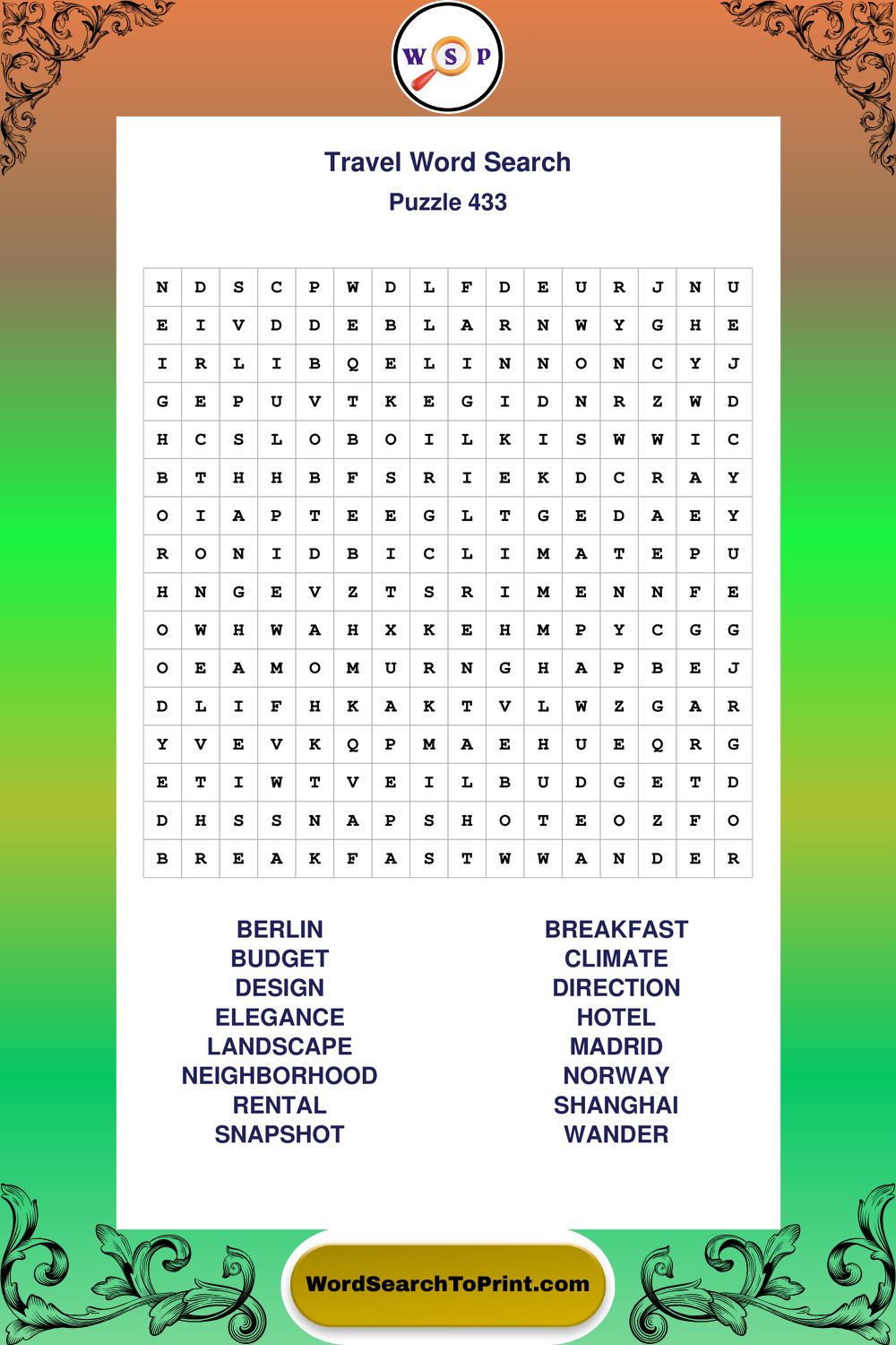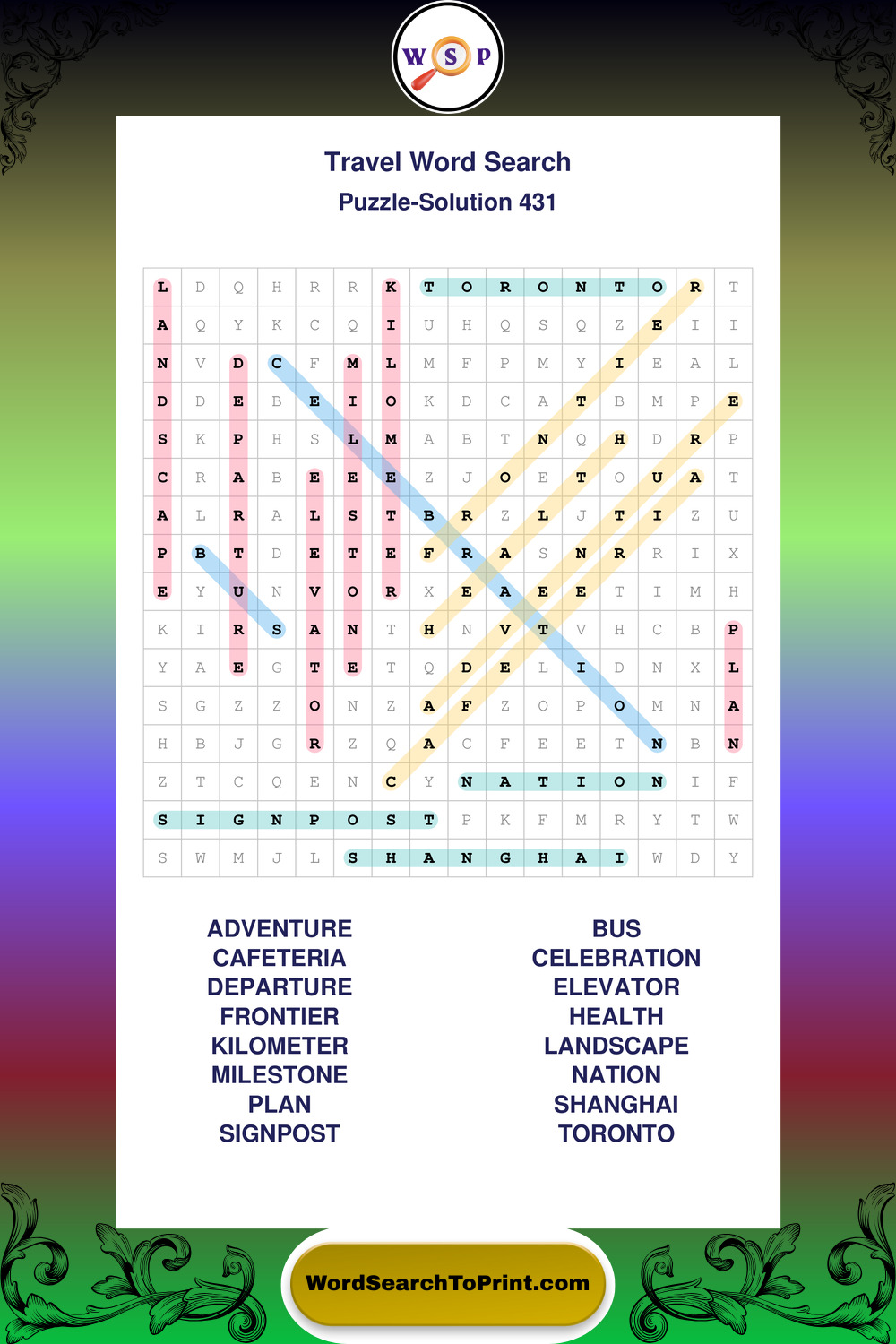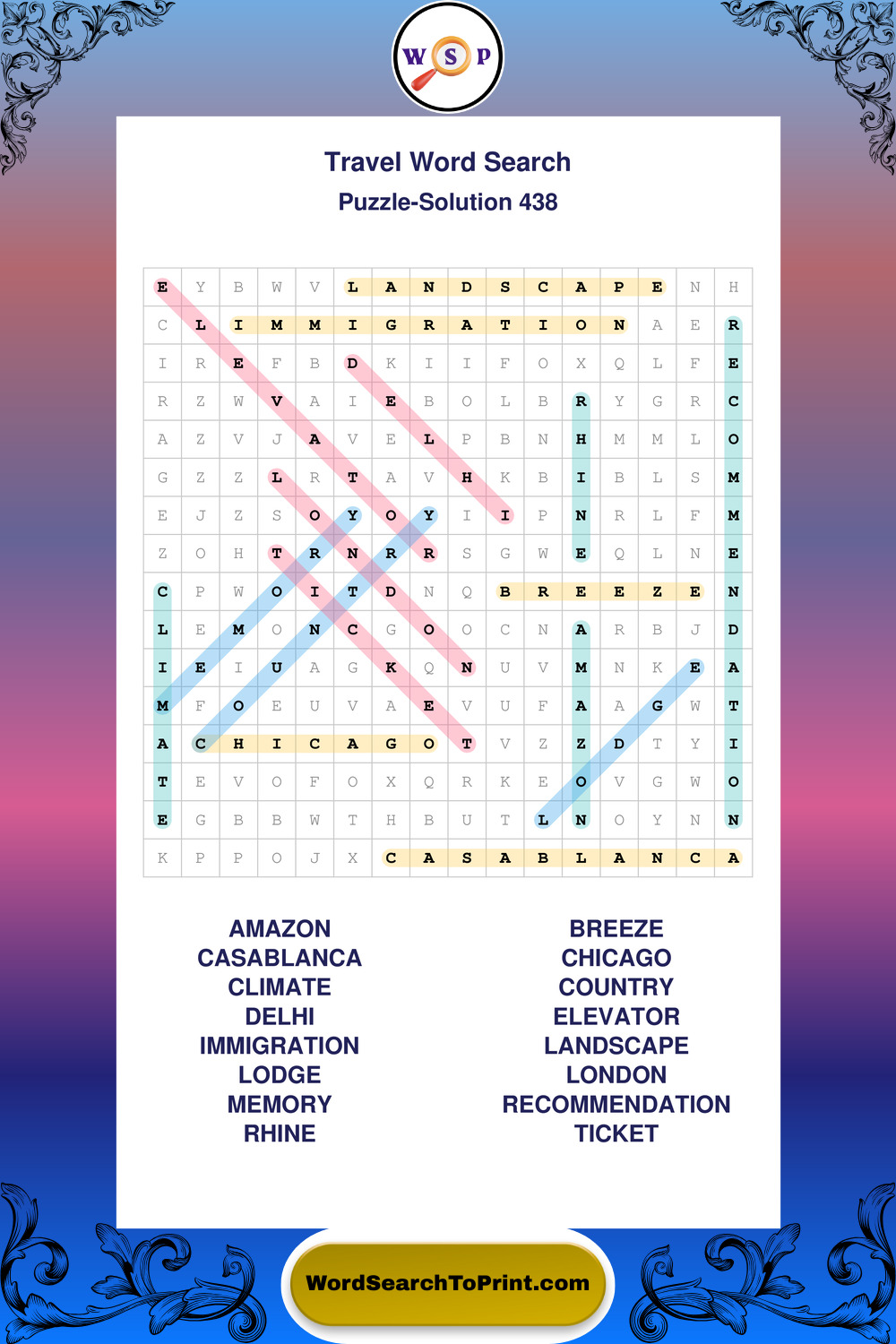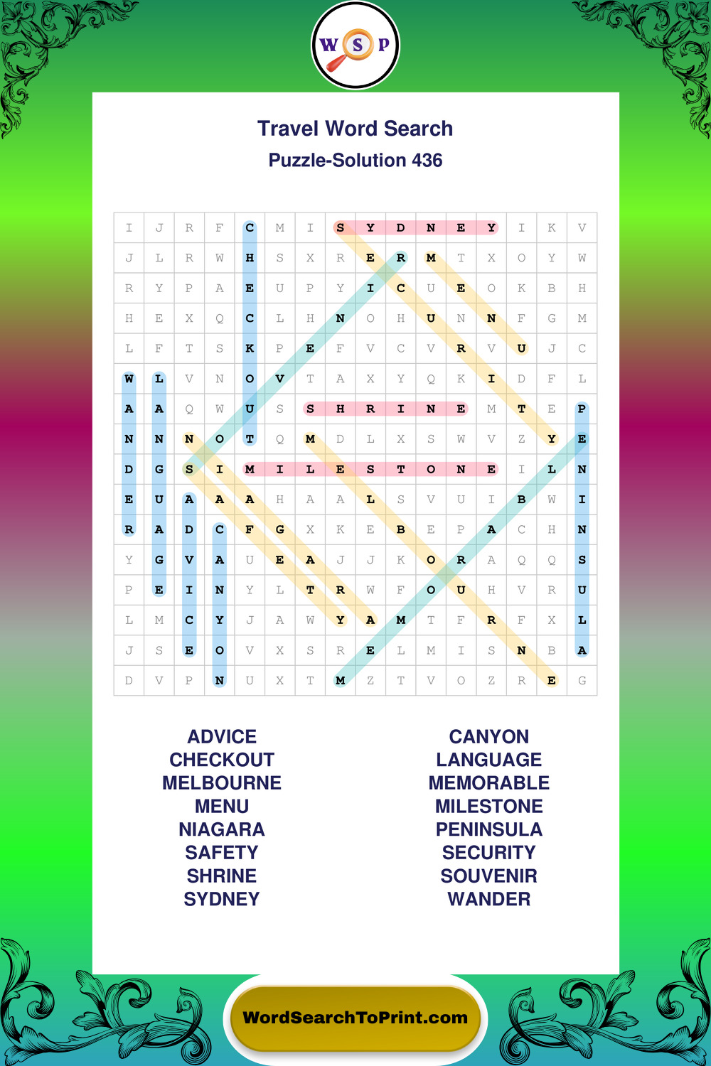 Printable Travel Wordsearch Puzzles