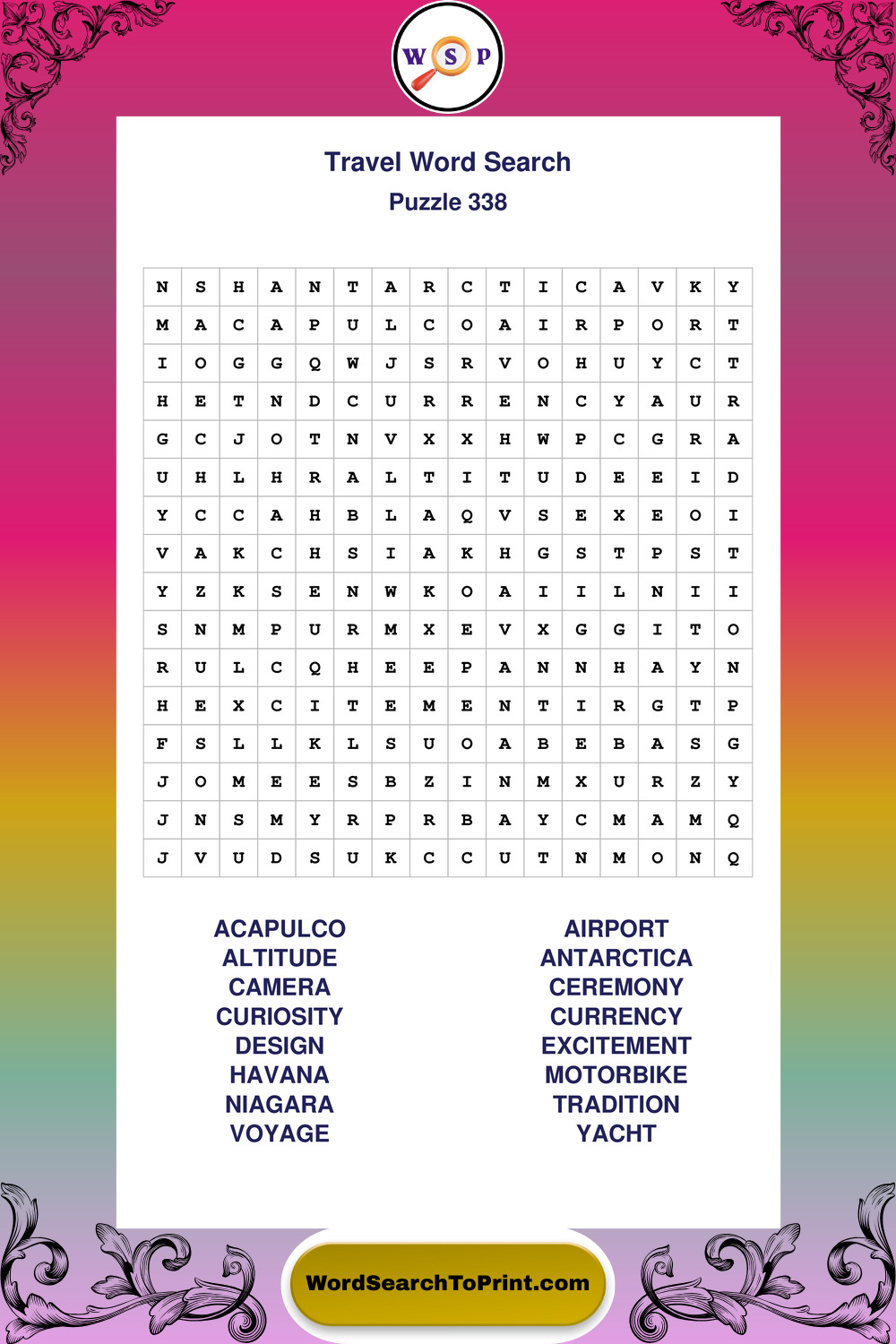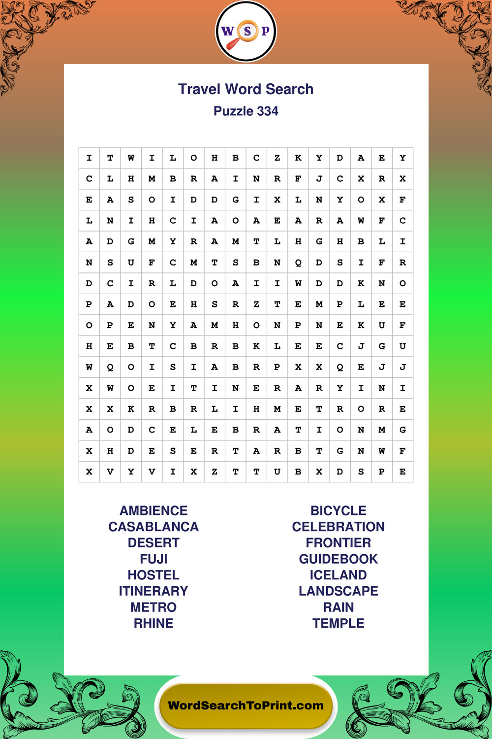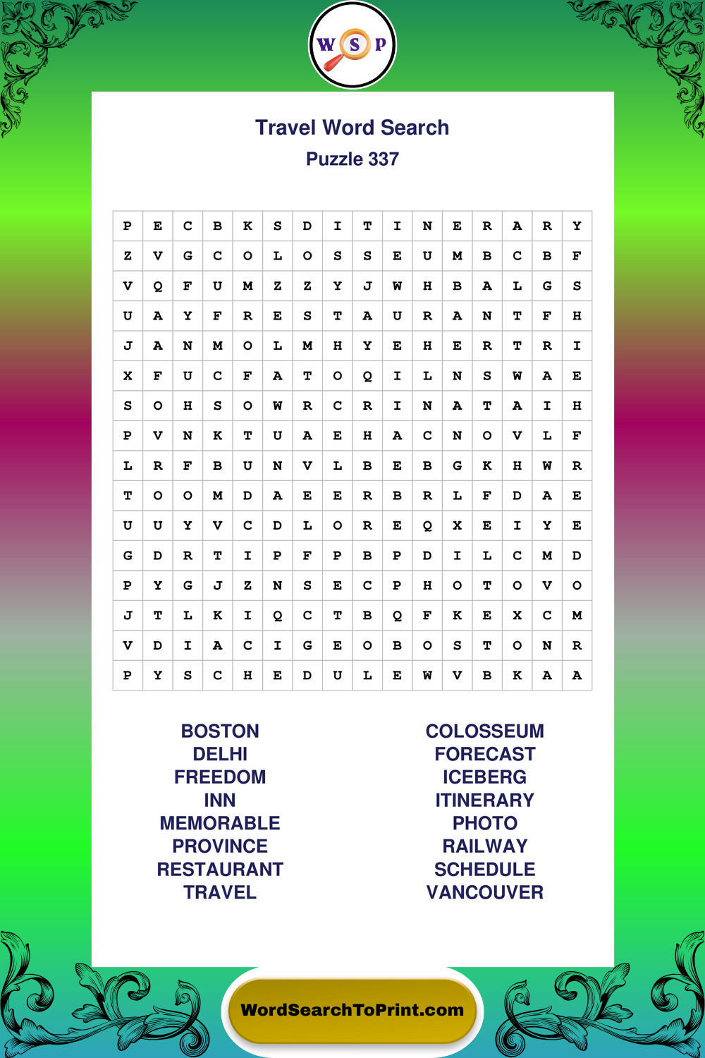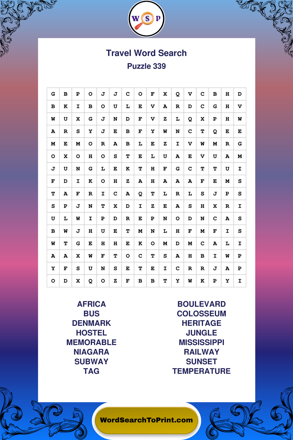 Enjoy these free large print Travel wordsearches designed for easy reading and relaxed puzzle solving. Perfect for teens, adults, and seniors.