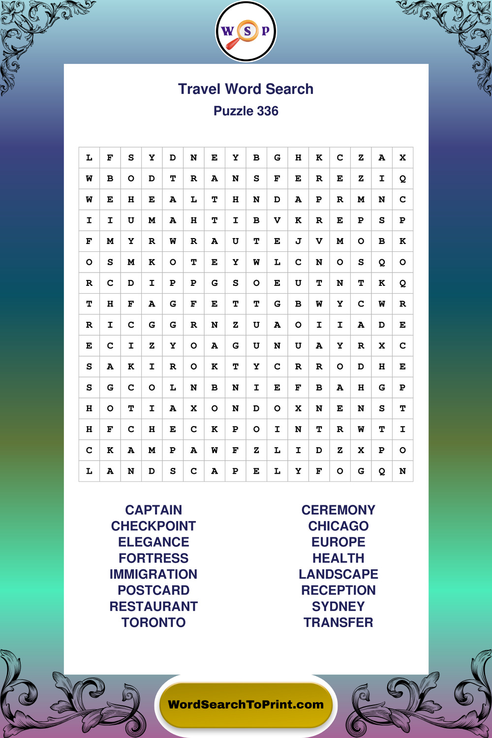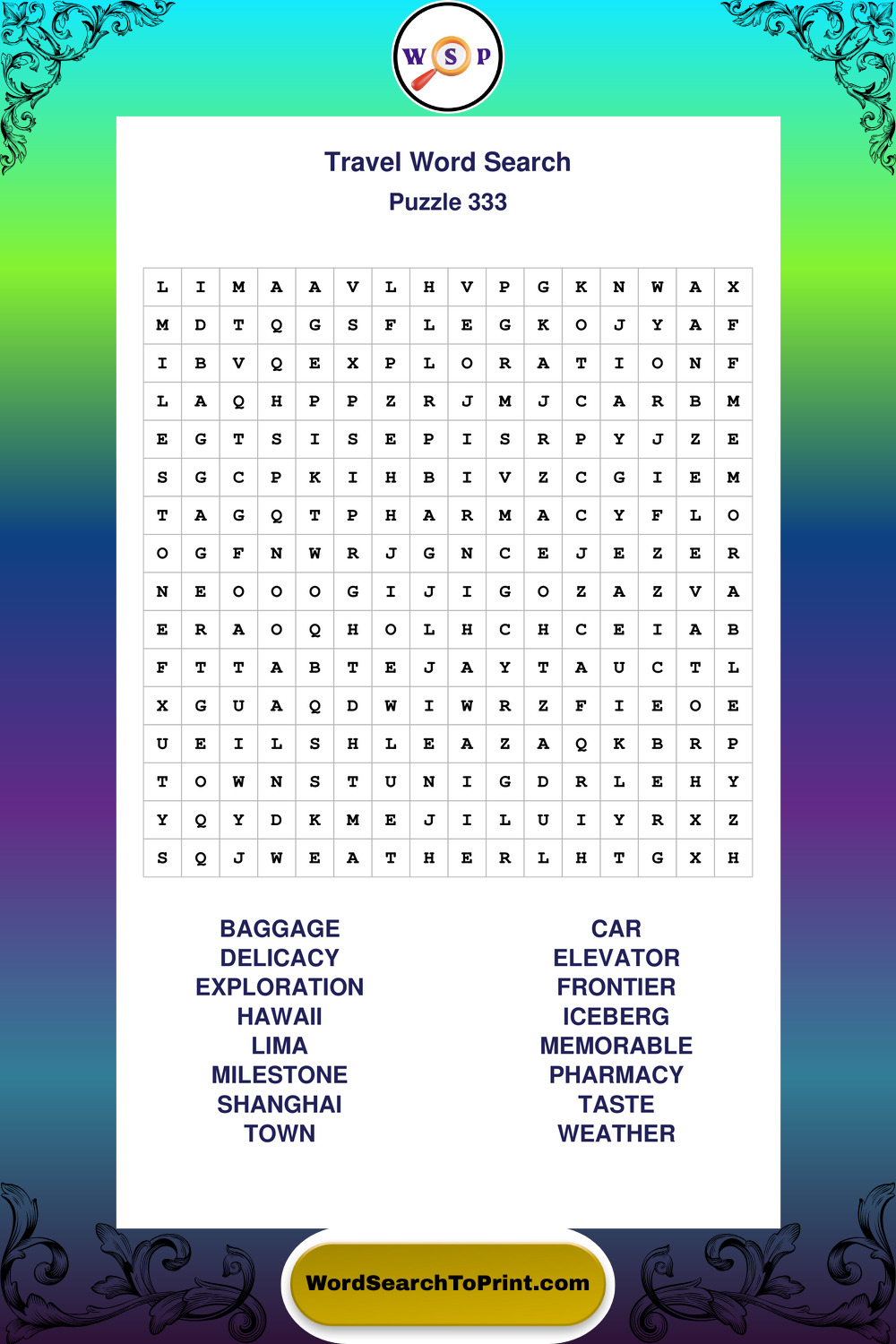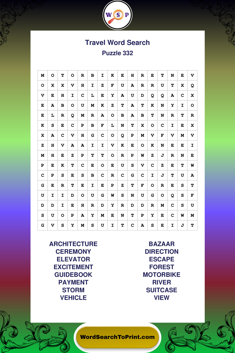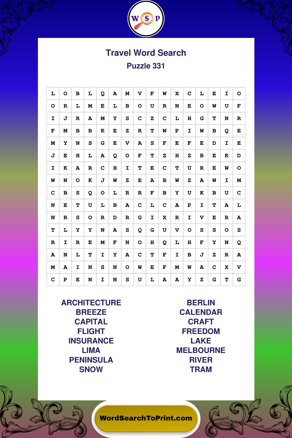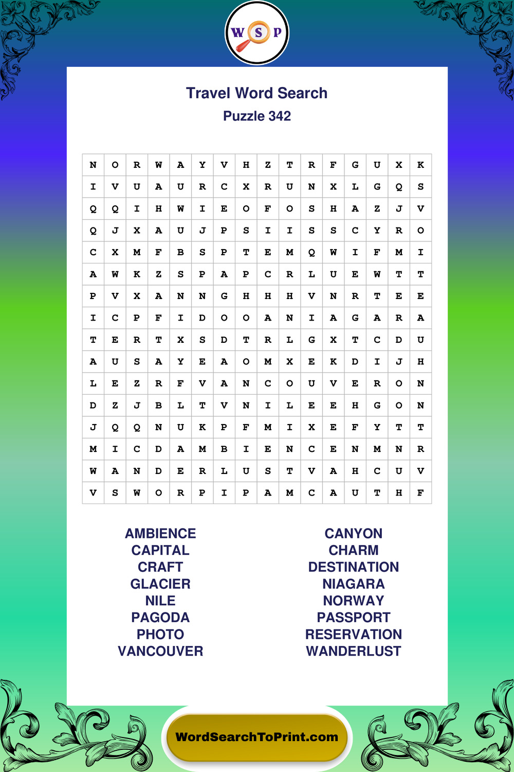 Enjoy these free large print Travel wordsearches designed for easy reading and relaxed puzzle solving. Perfect for teens, adults, and seniors.