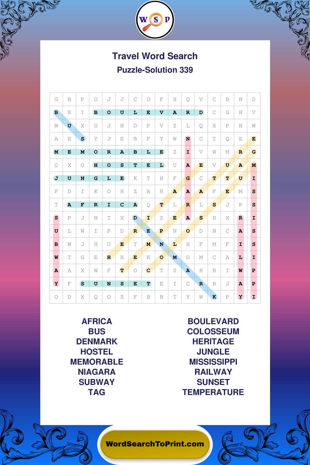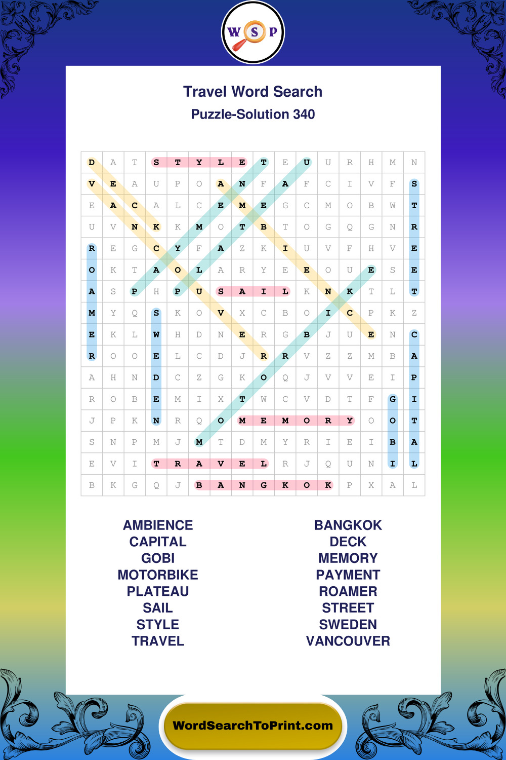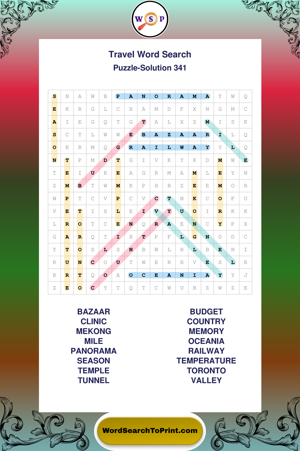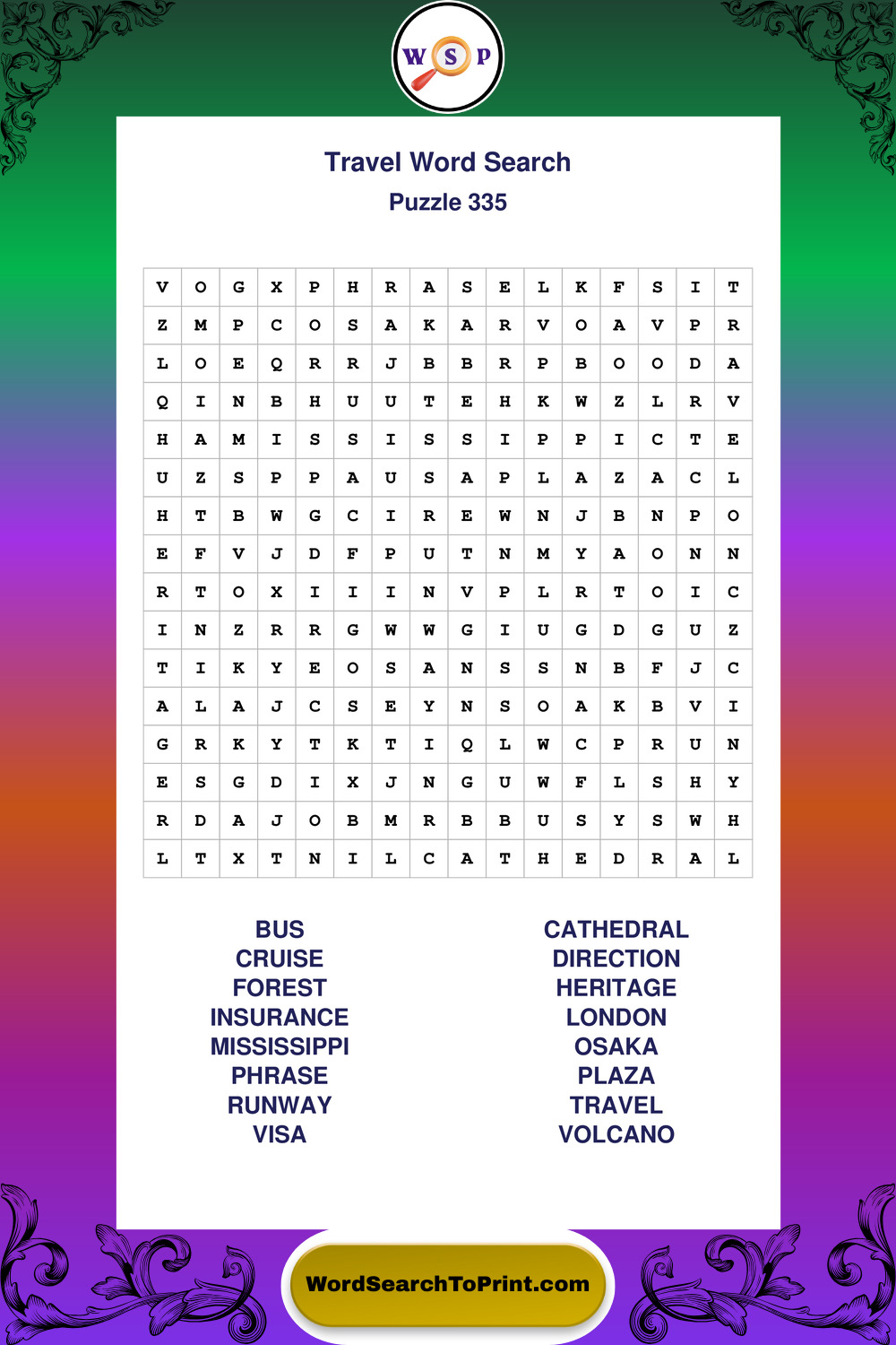 Enjoy these free large print Travel wordsearches designed for easy reading and relaxed puzzle solving. Perfect for teens, adults, and seniors.