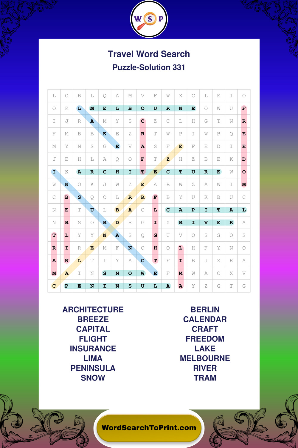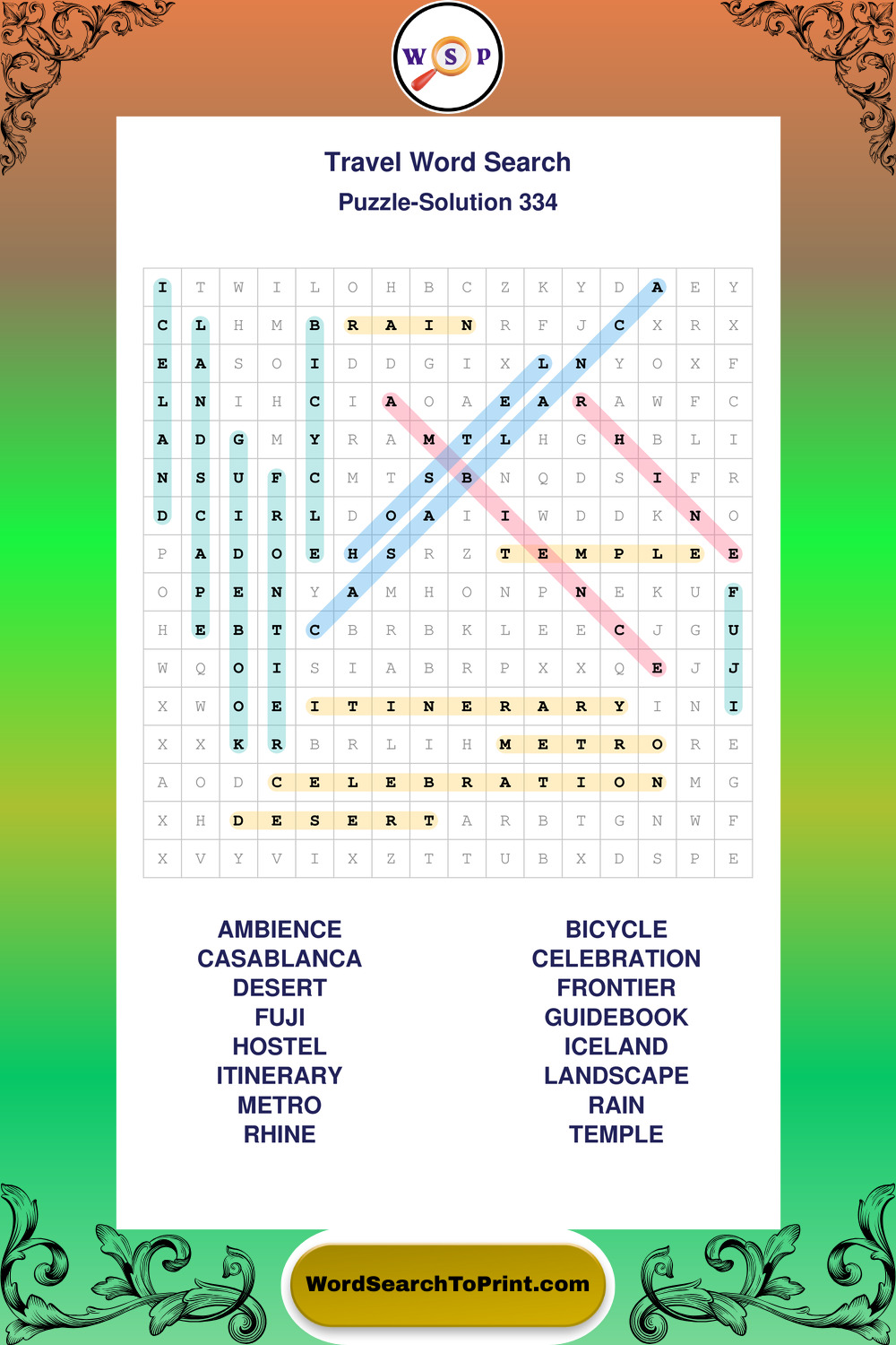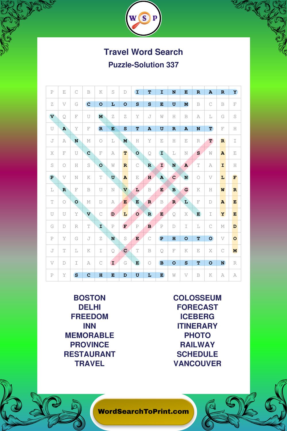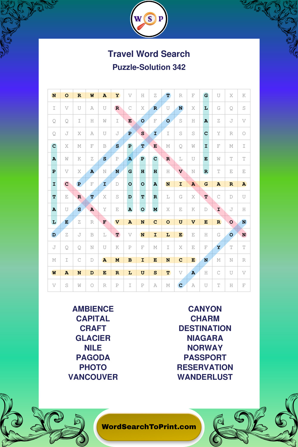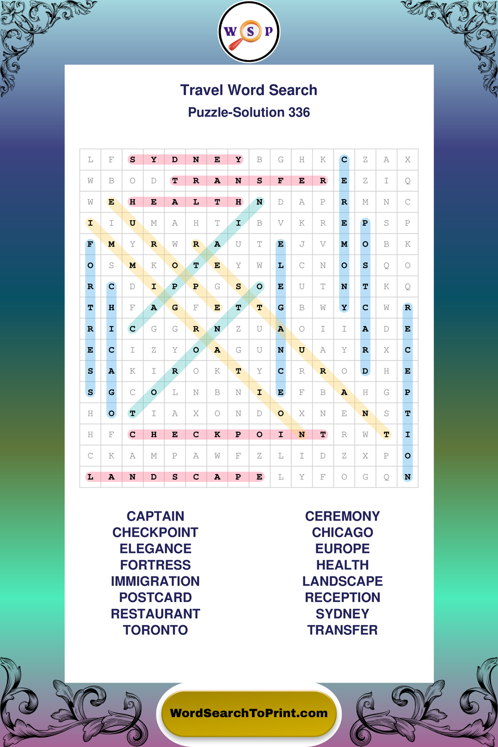 Enjoy these free large print Travel wordsearches designed for easy reading and relaxed puzzle solving. Perfect for teens, adults, and seniors.