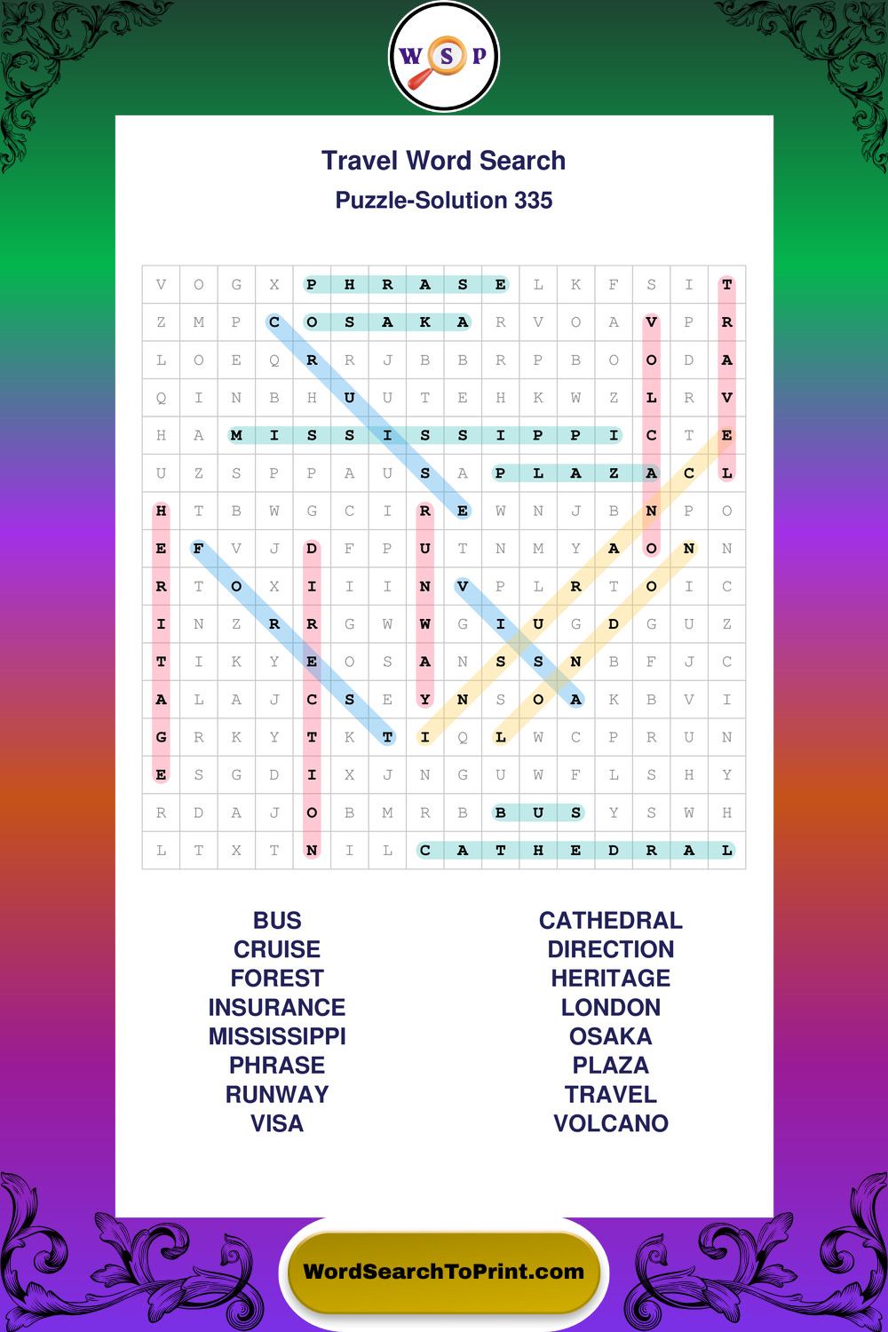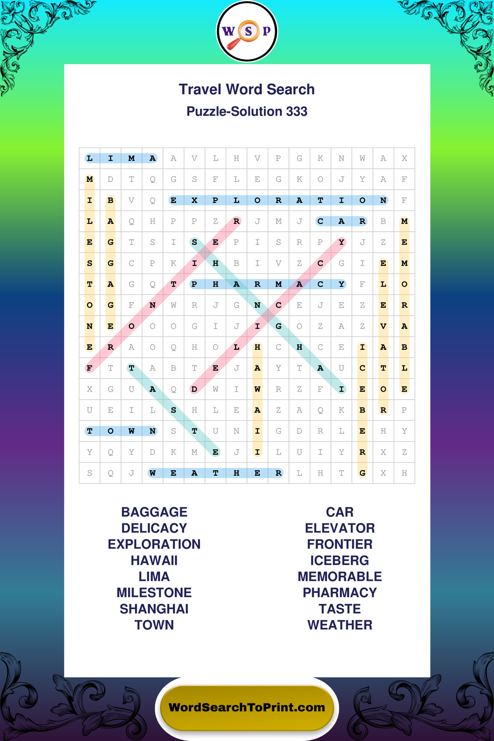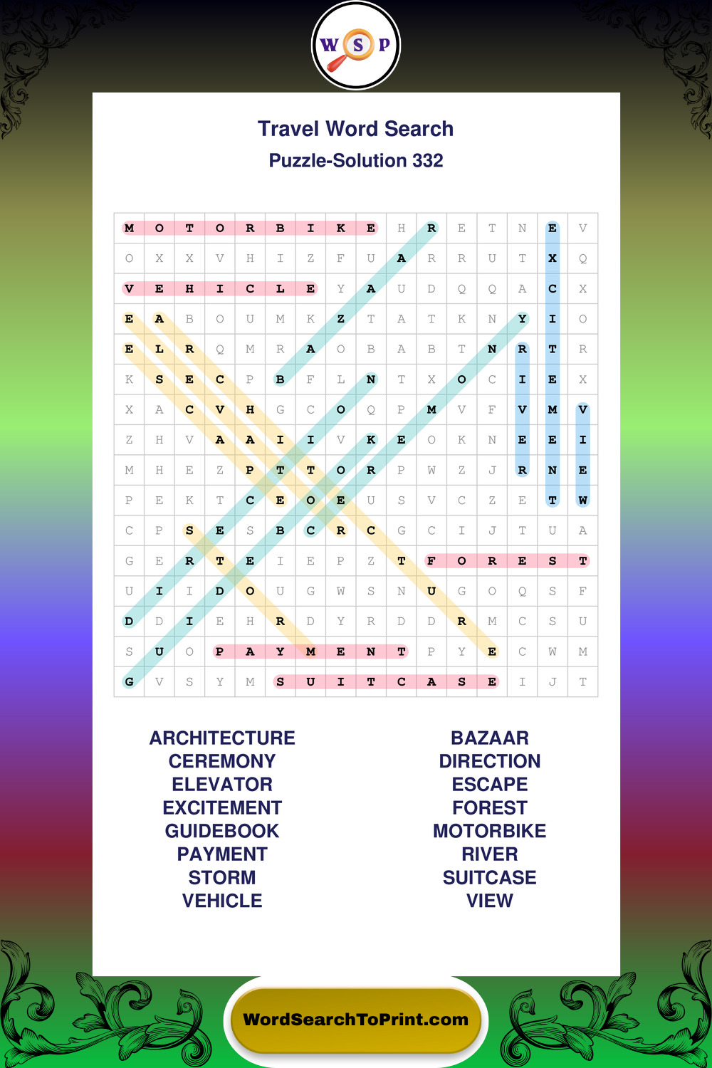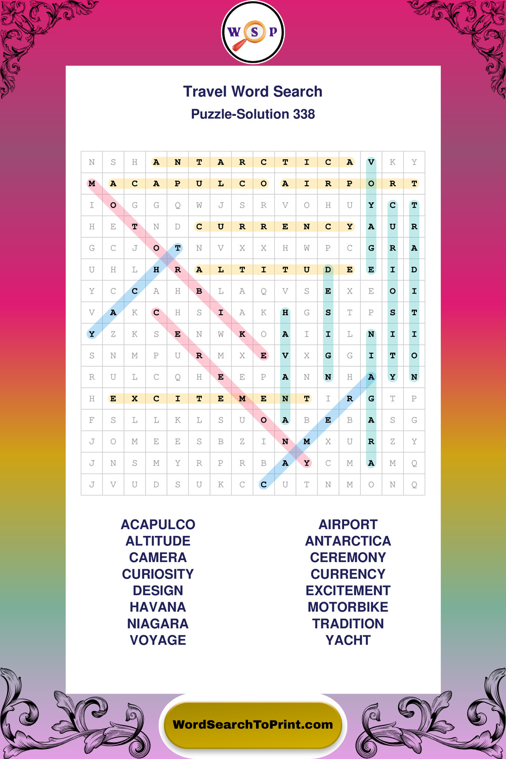 Enjoy these free large print Travel wordsearches designed for easy reading and relaxed puzzle solving. Perfect for teens, adults, and seniors.