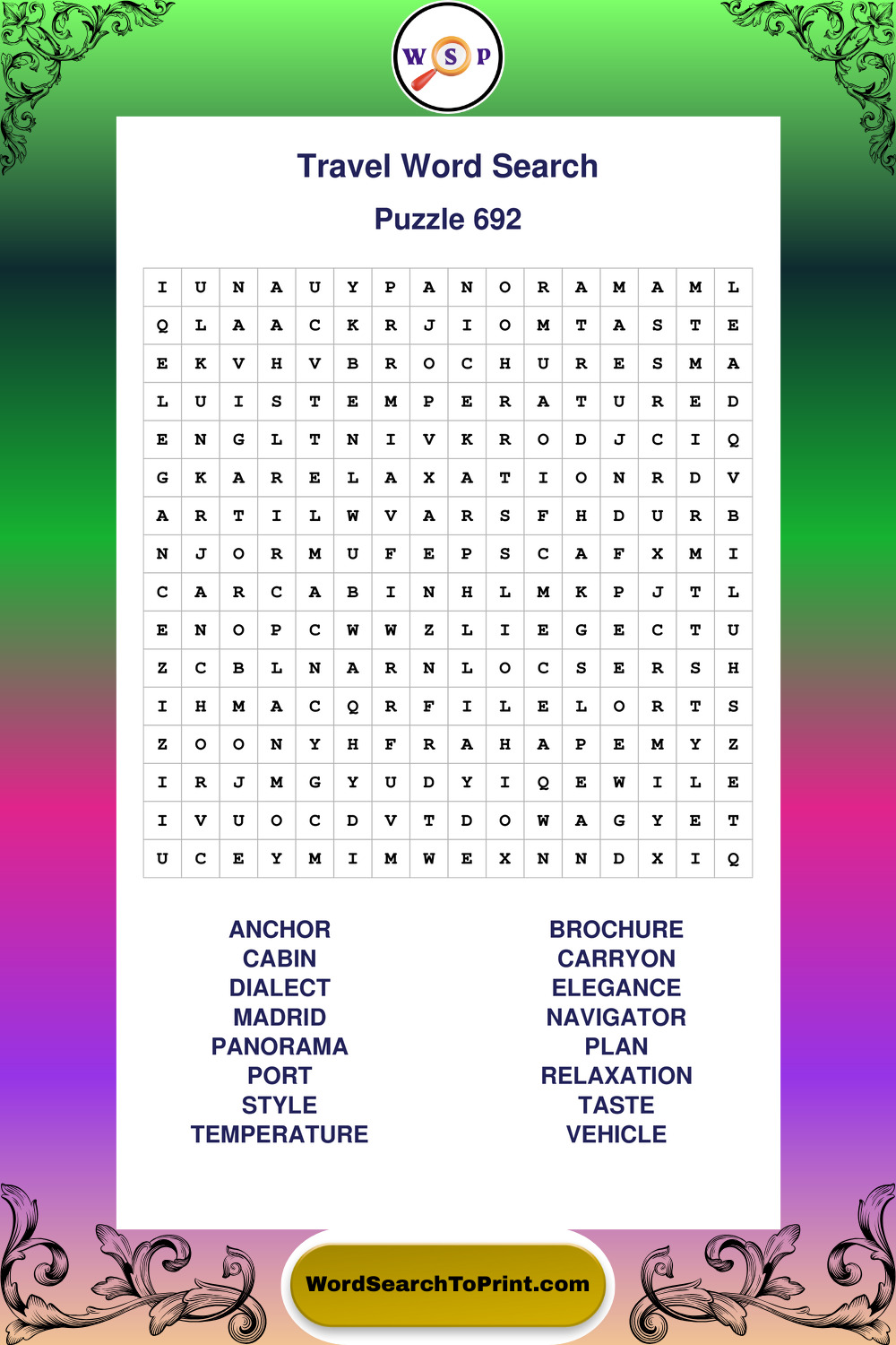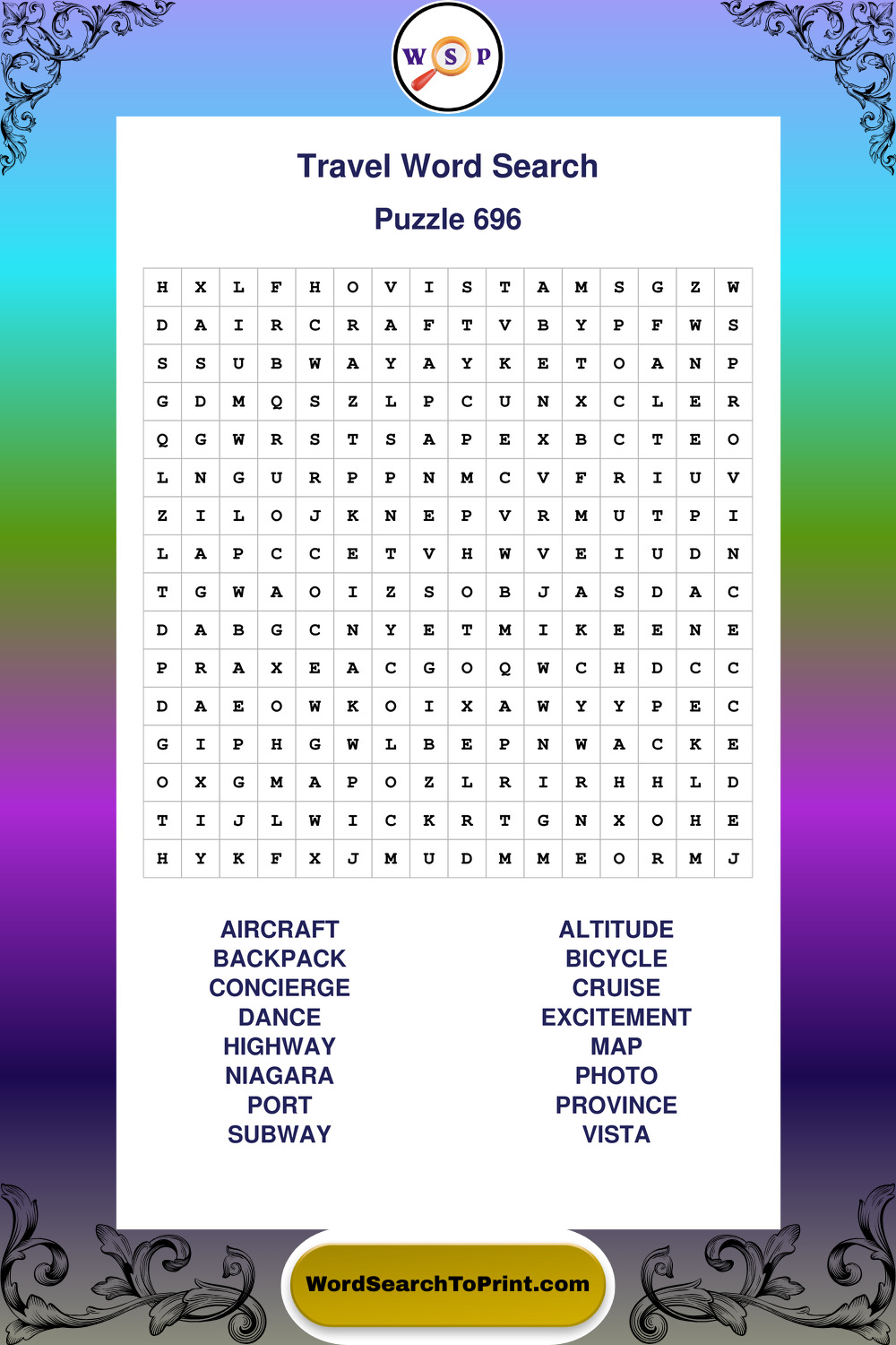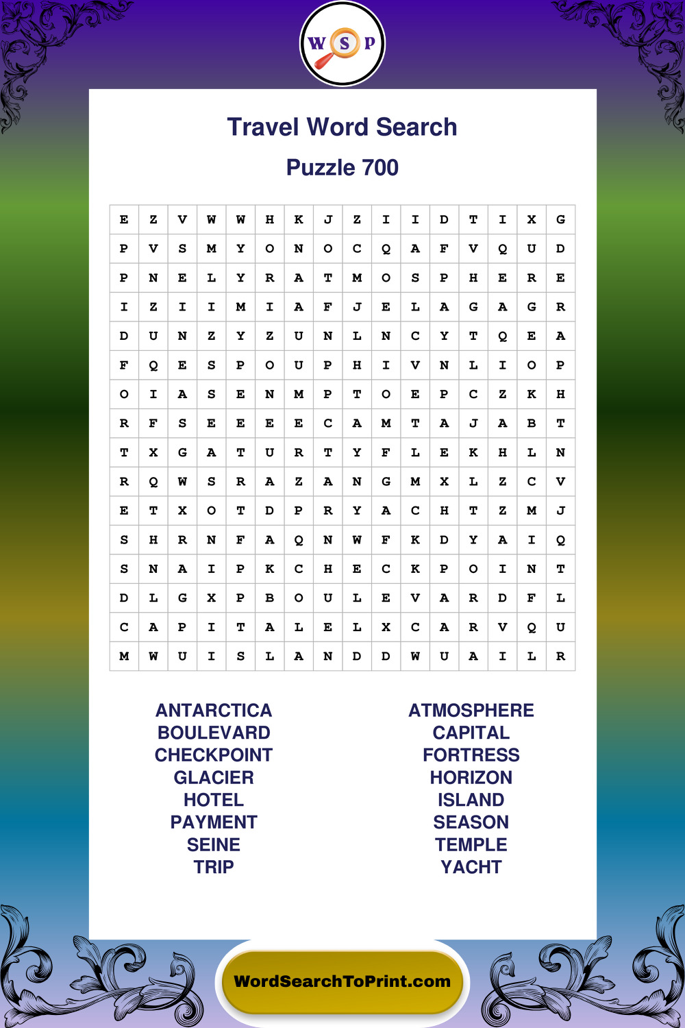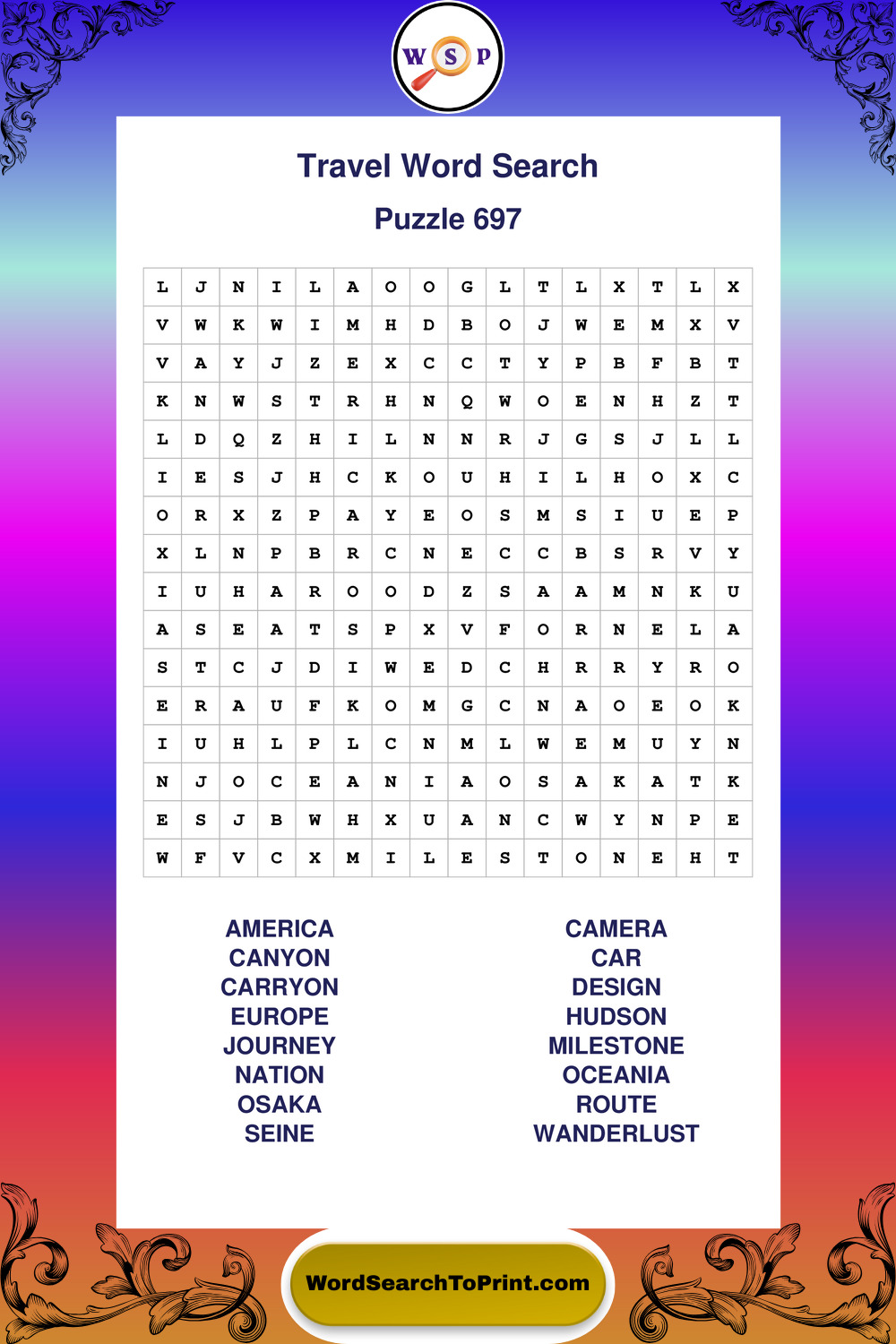 Enjoy these free large print Travel wordsearches designed for easy reading and relaxed puzzle solving. Perfect for teens, adults, and seniors.