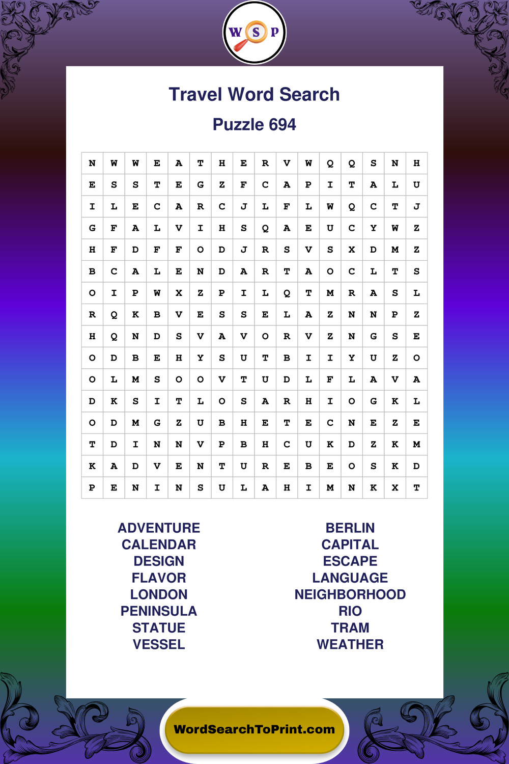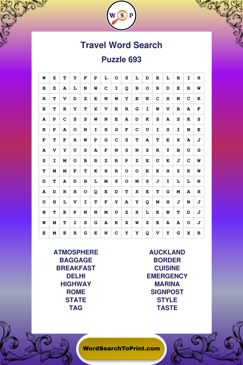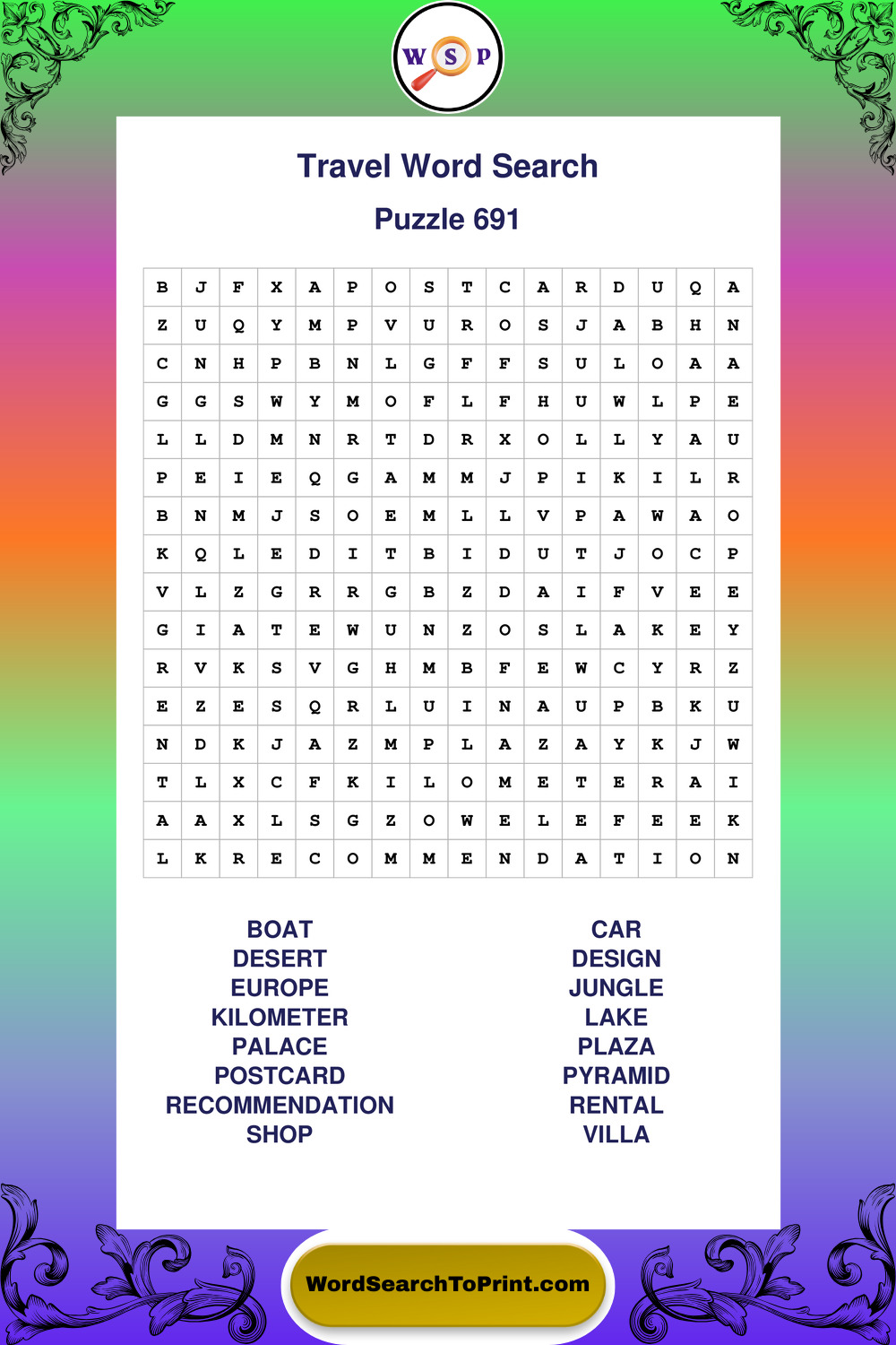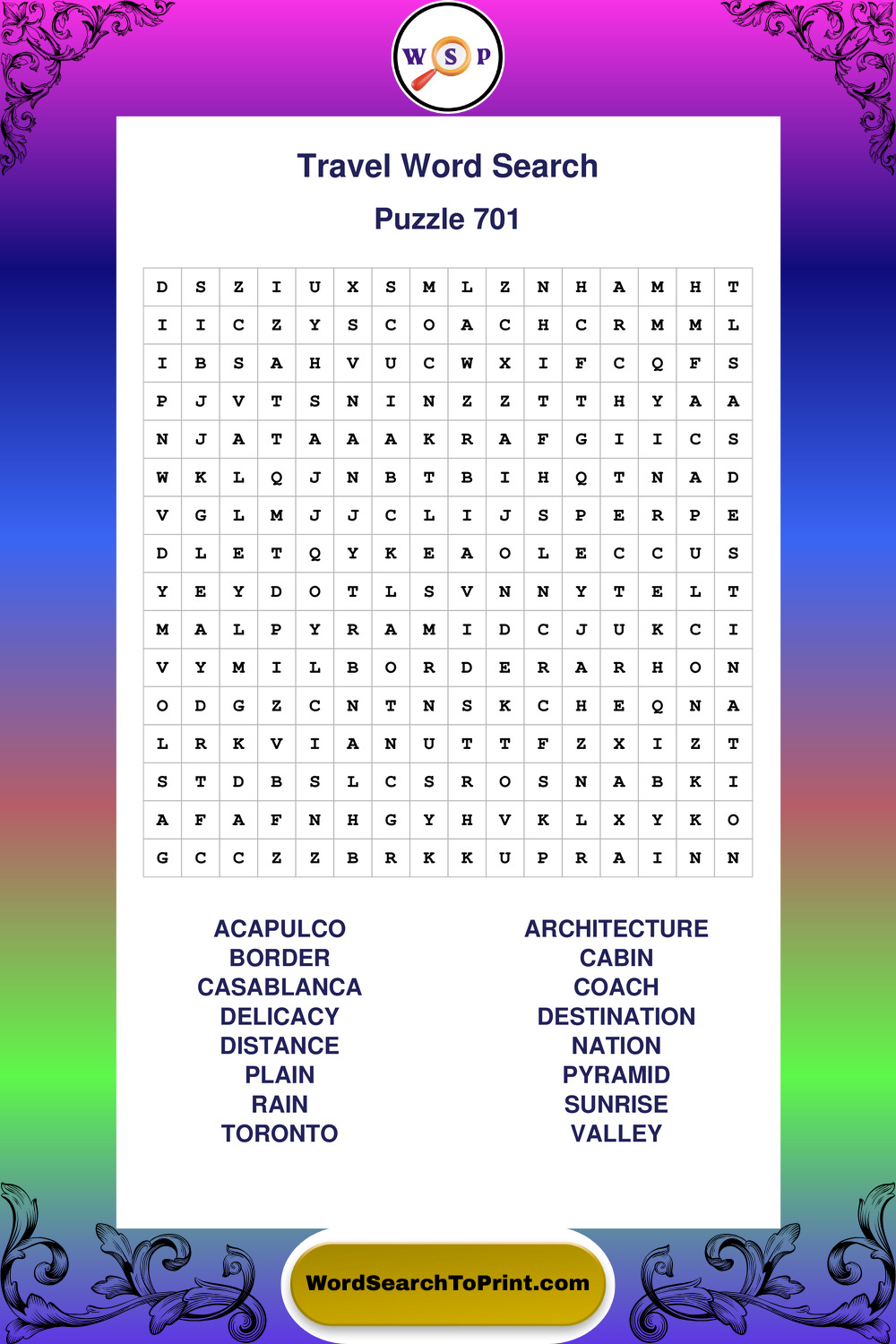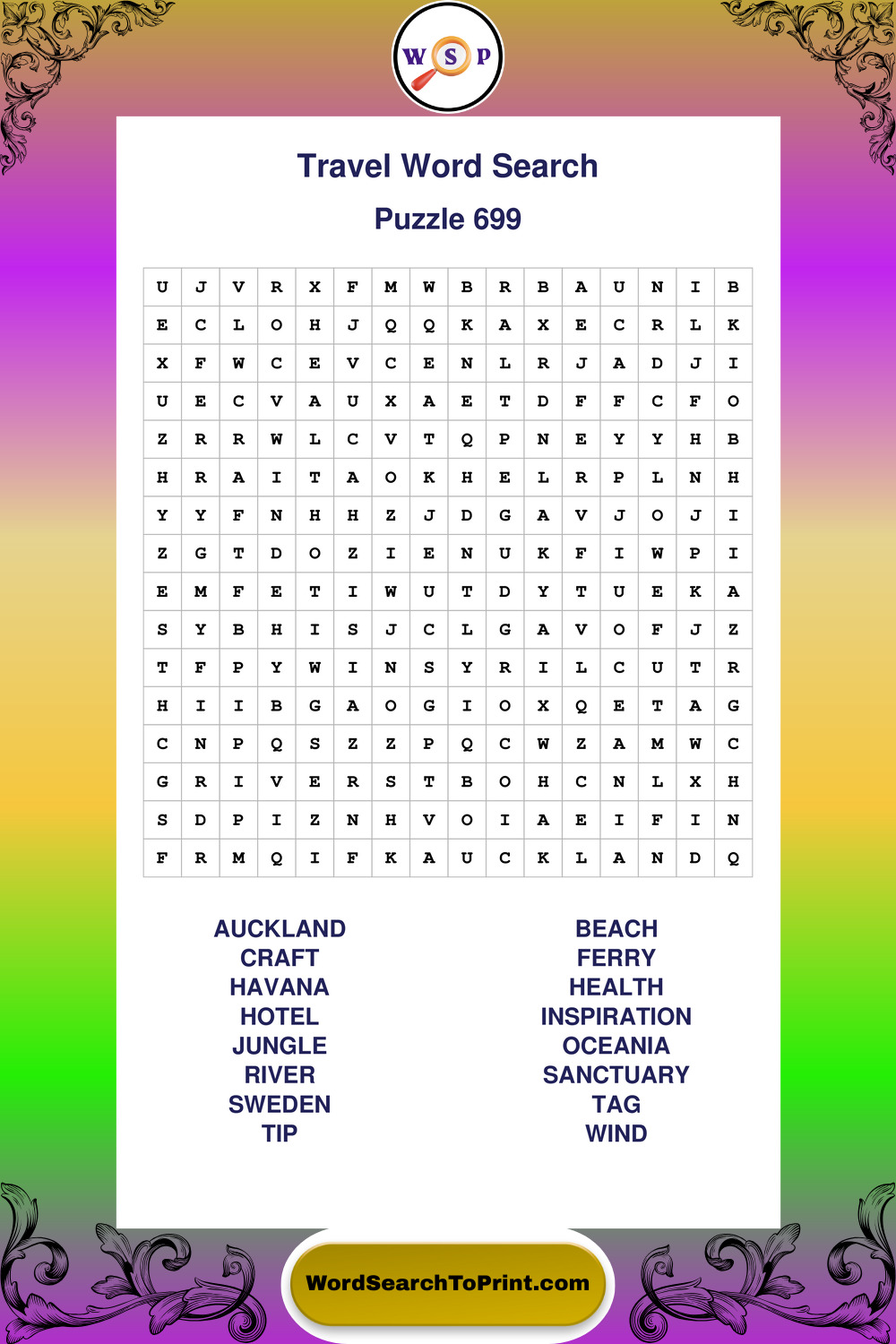 Enjoy these free large print Travel wordsearches designed for easy reading and relaxed puzzle solving. Perfect for teens, adults, and seniors.