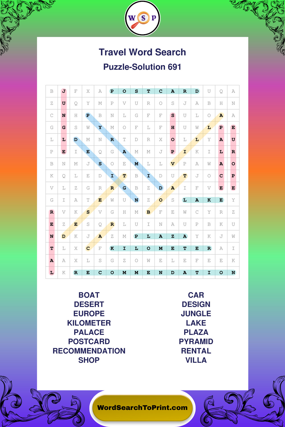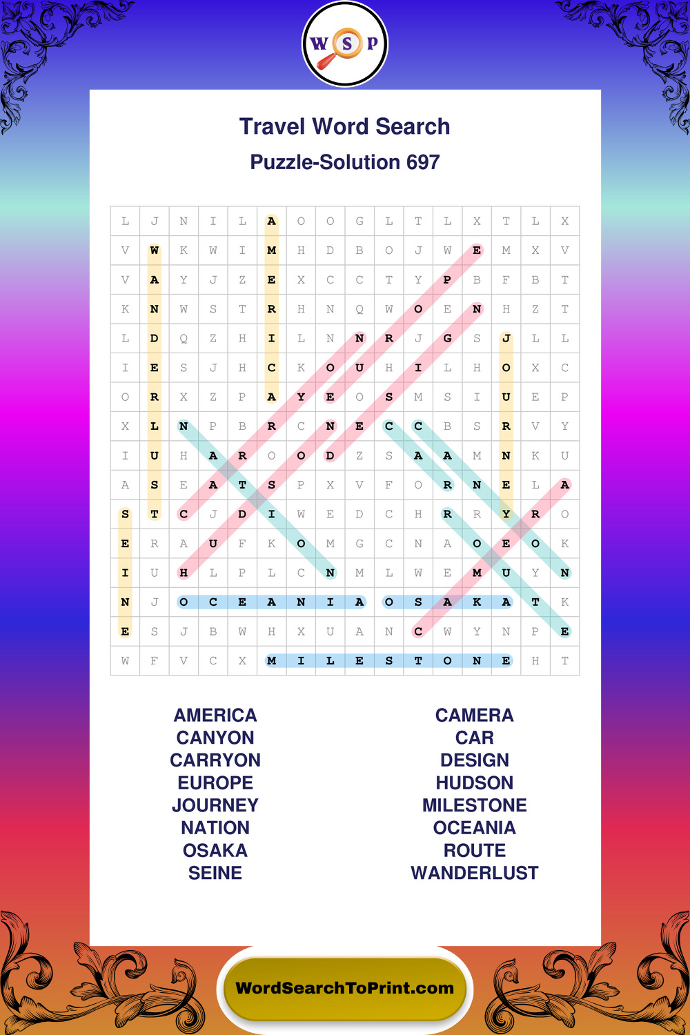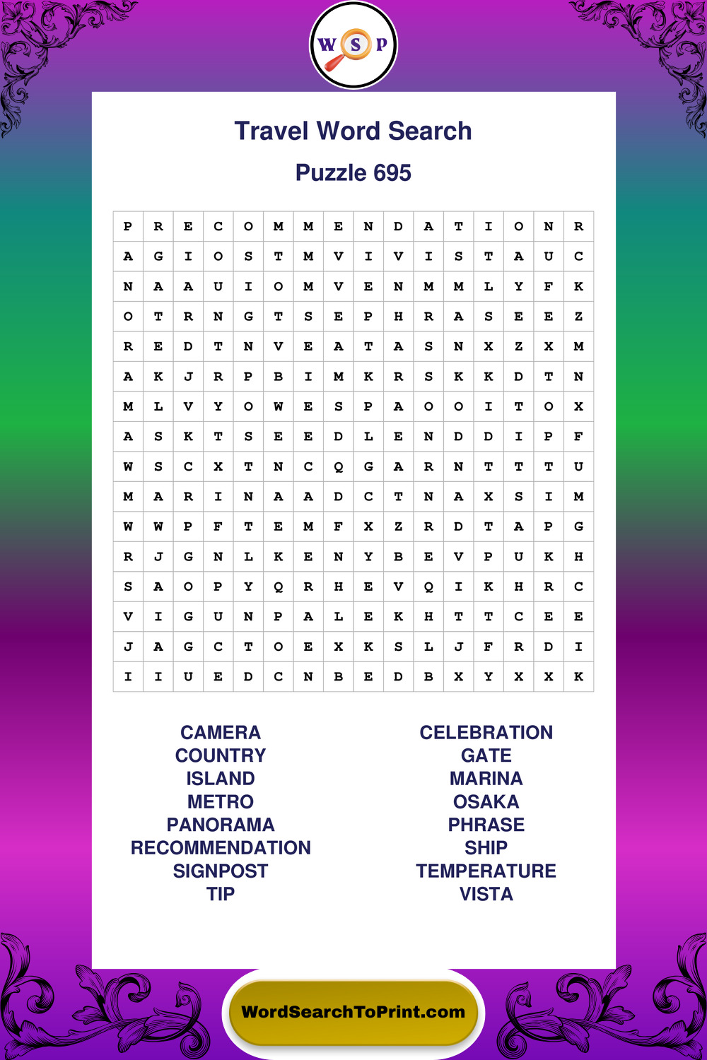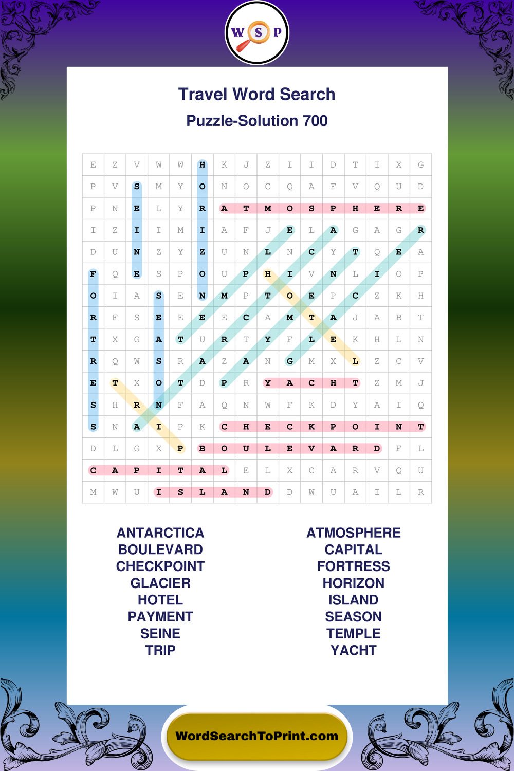 Enjoy these free large print Travel wordsearches designed for easy reading and relaxed puzzle solving. Perfect for teens, adults, and seniors.