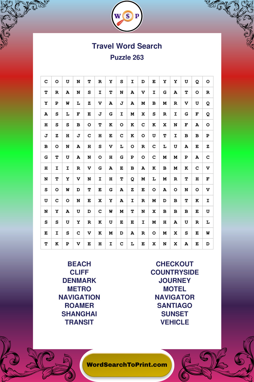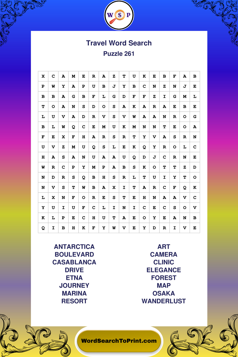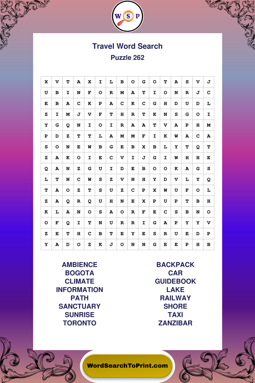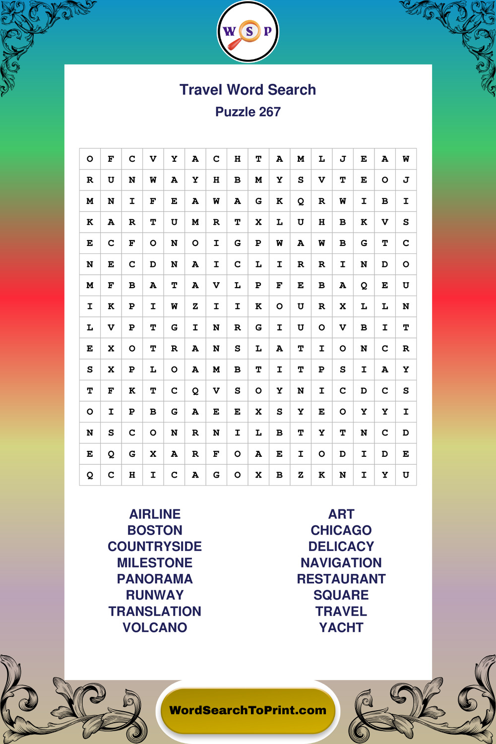 Printable Travel Wordsearch Puzzles