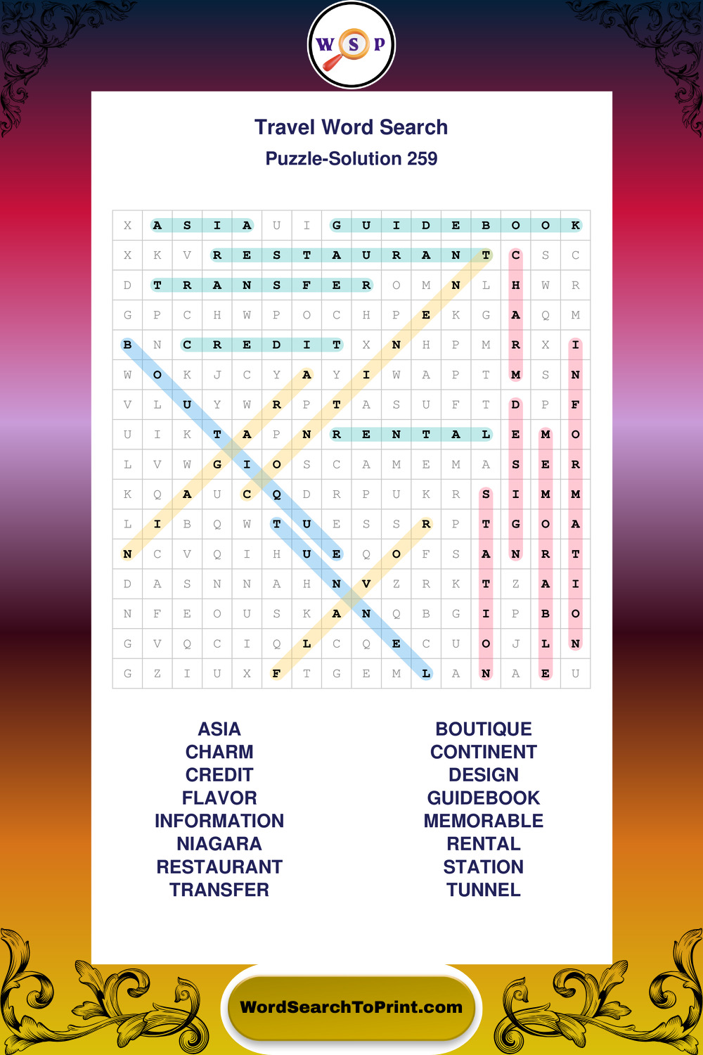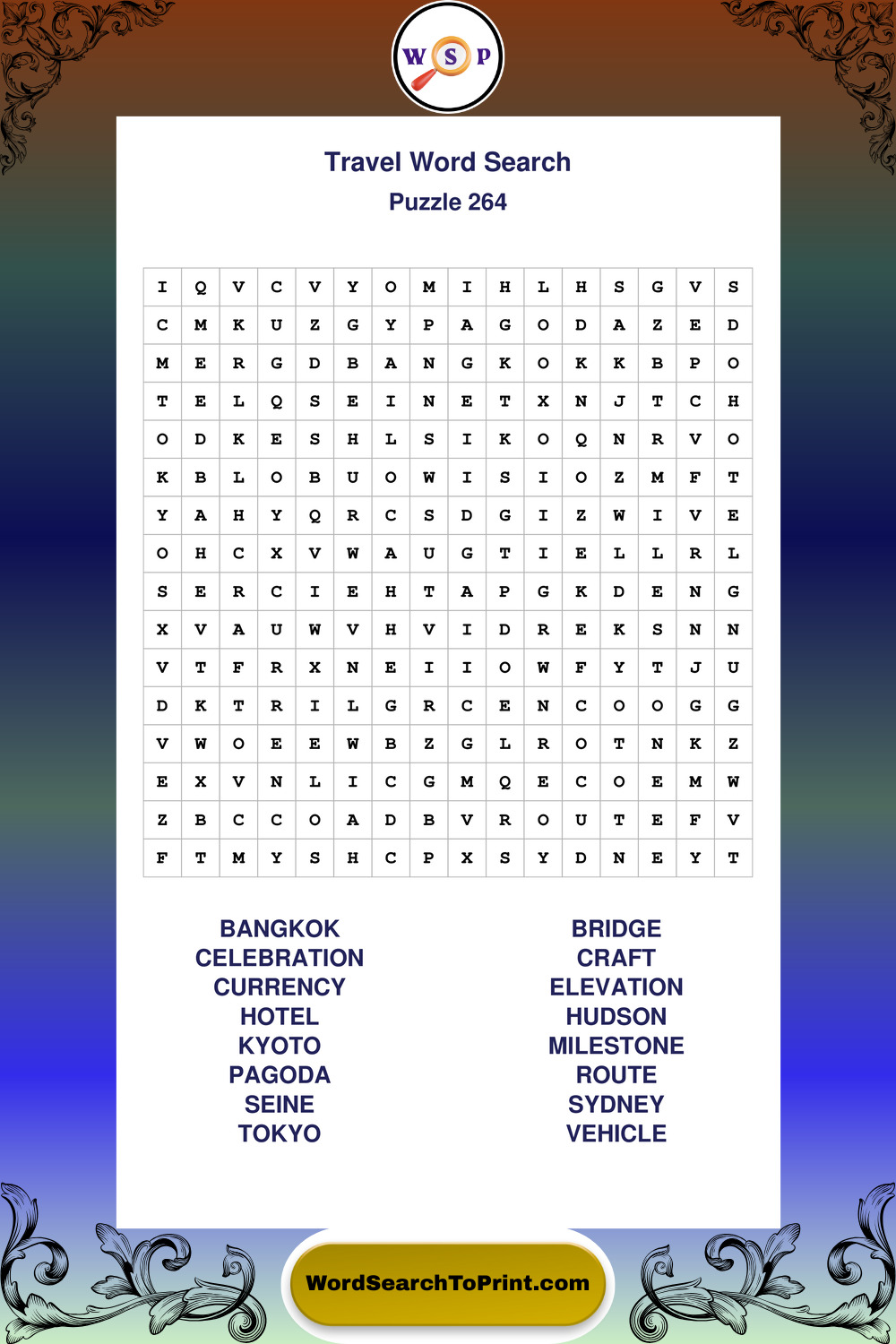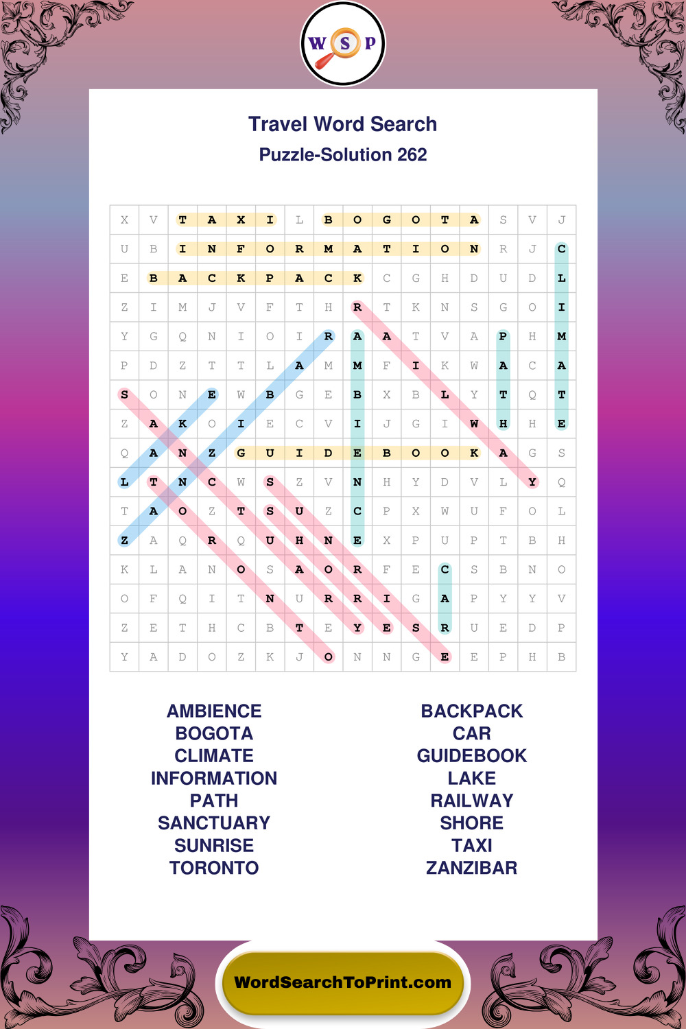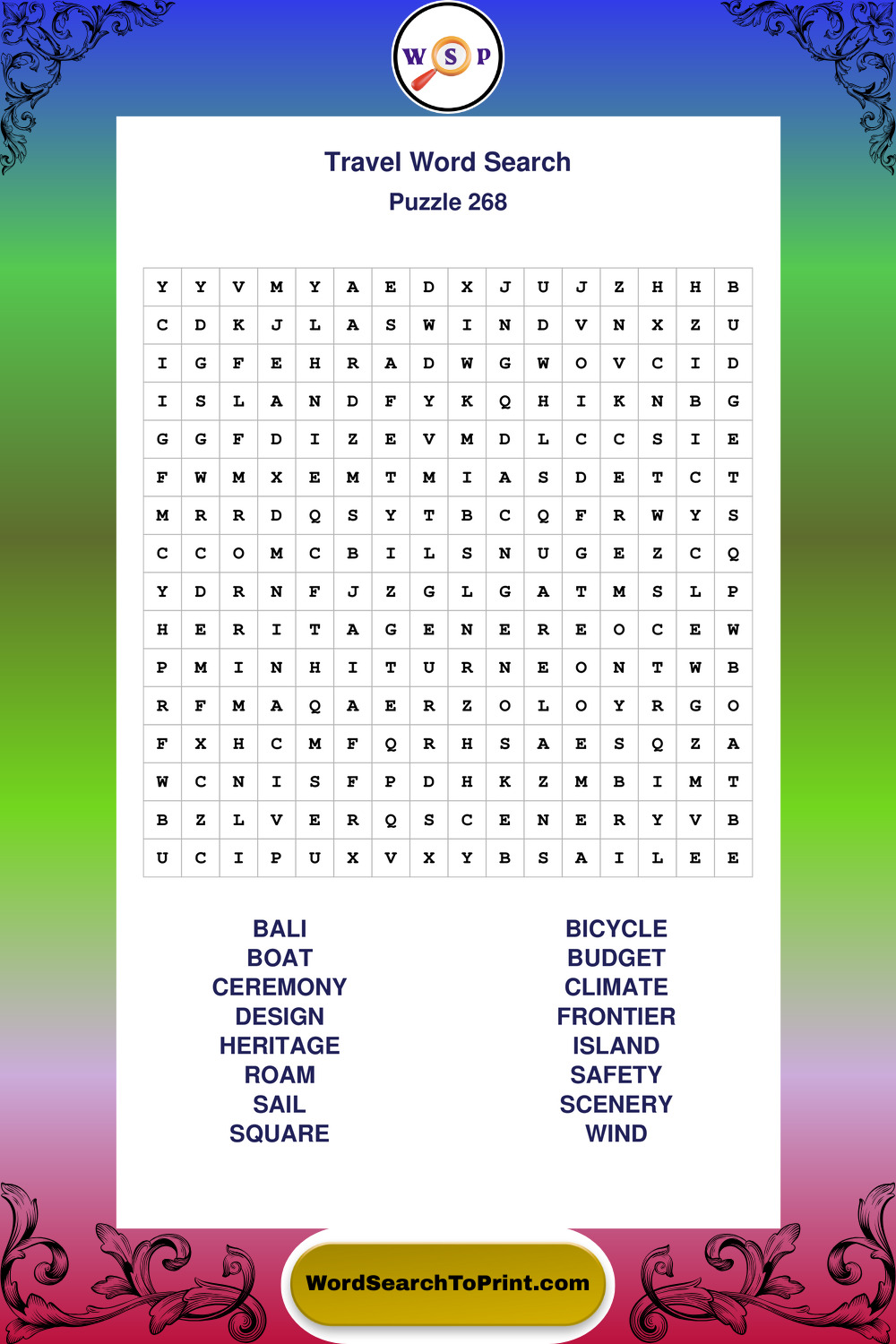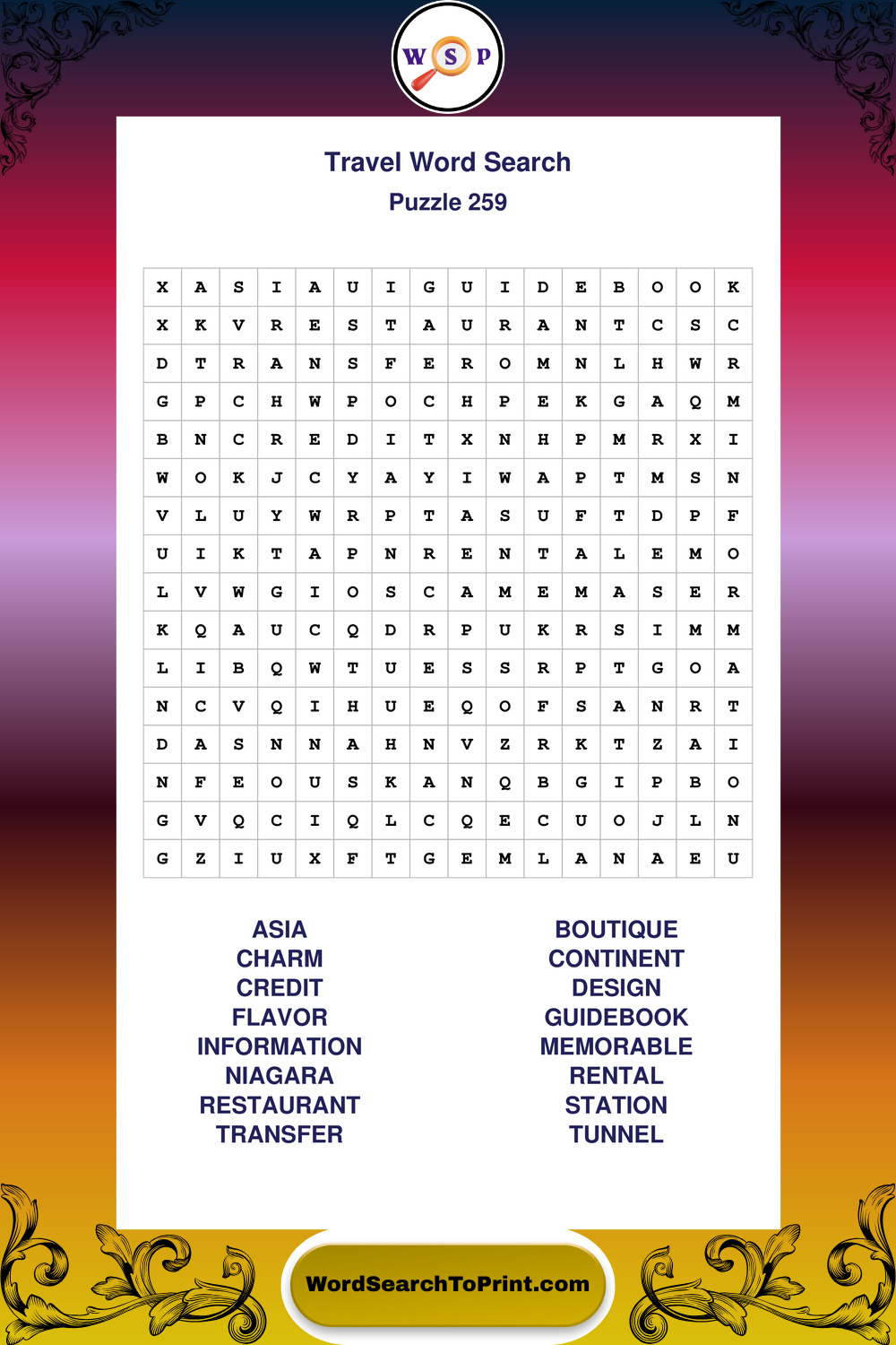 Printable Travel Wordsearch Puzzles