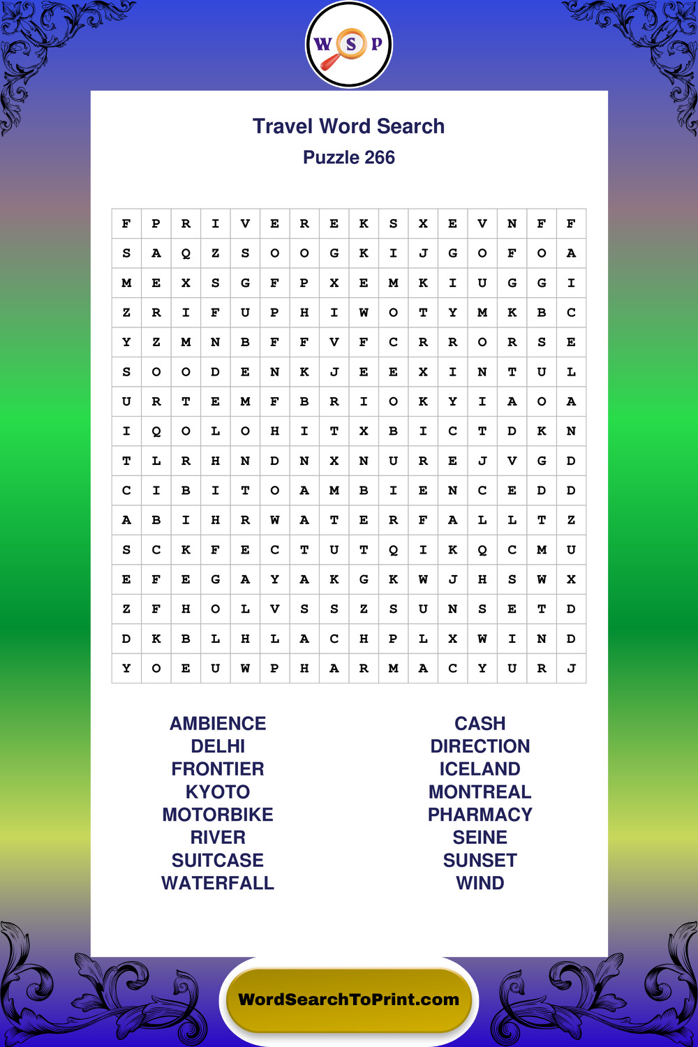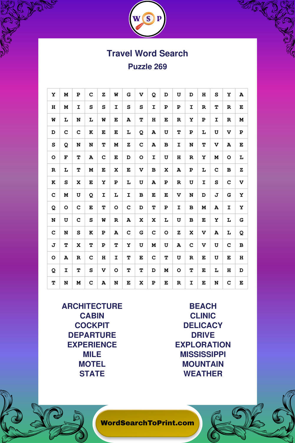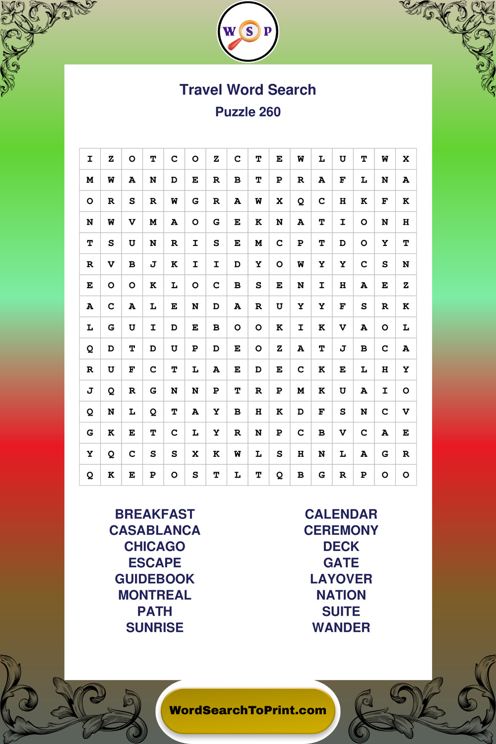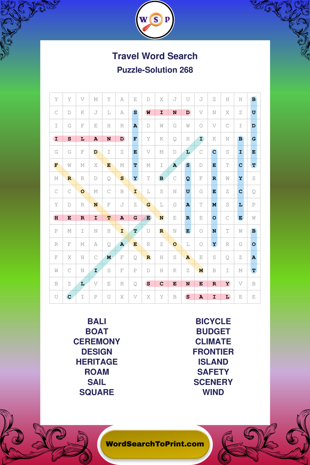 Printable Travel Wordsearch Puzzles