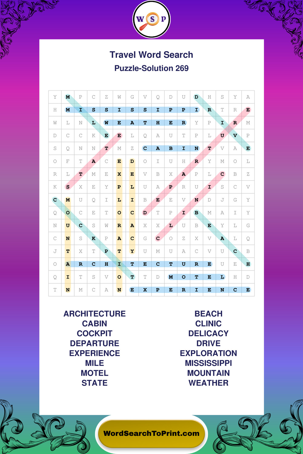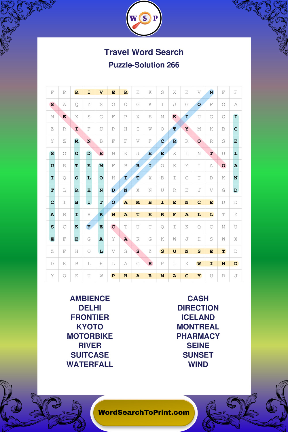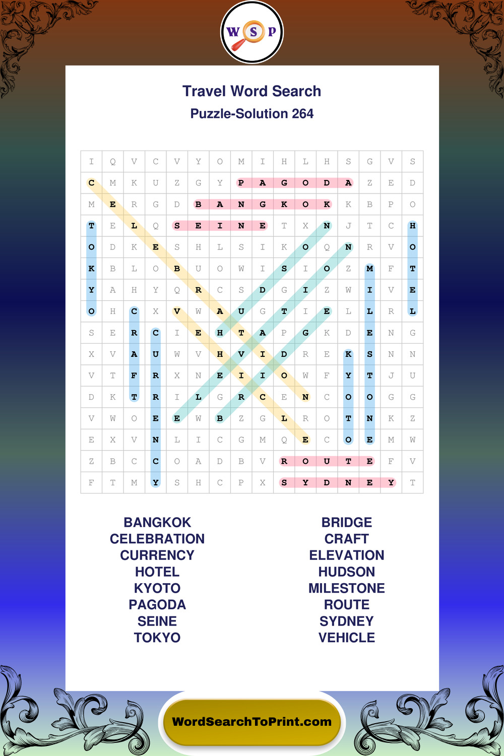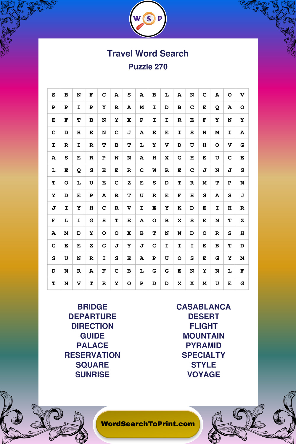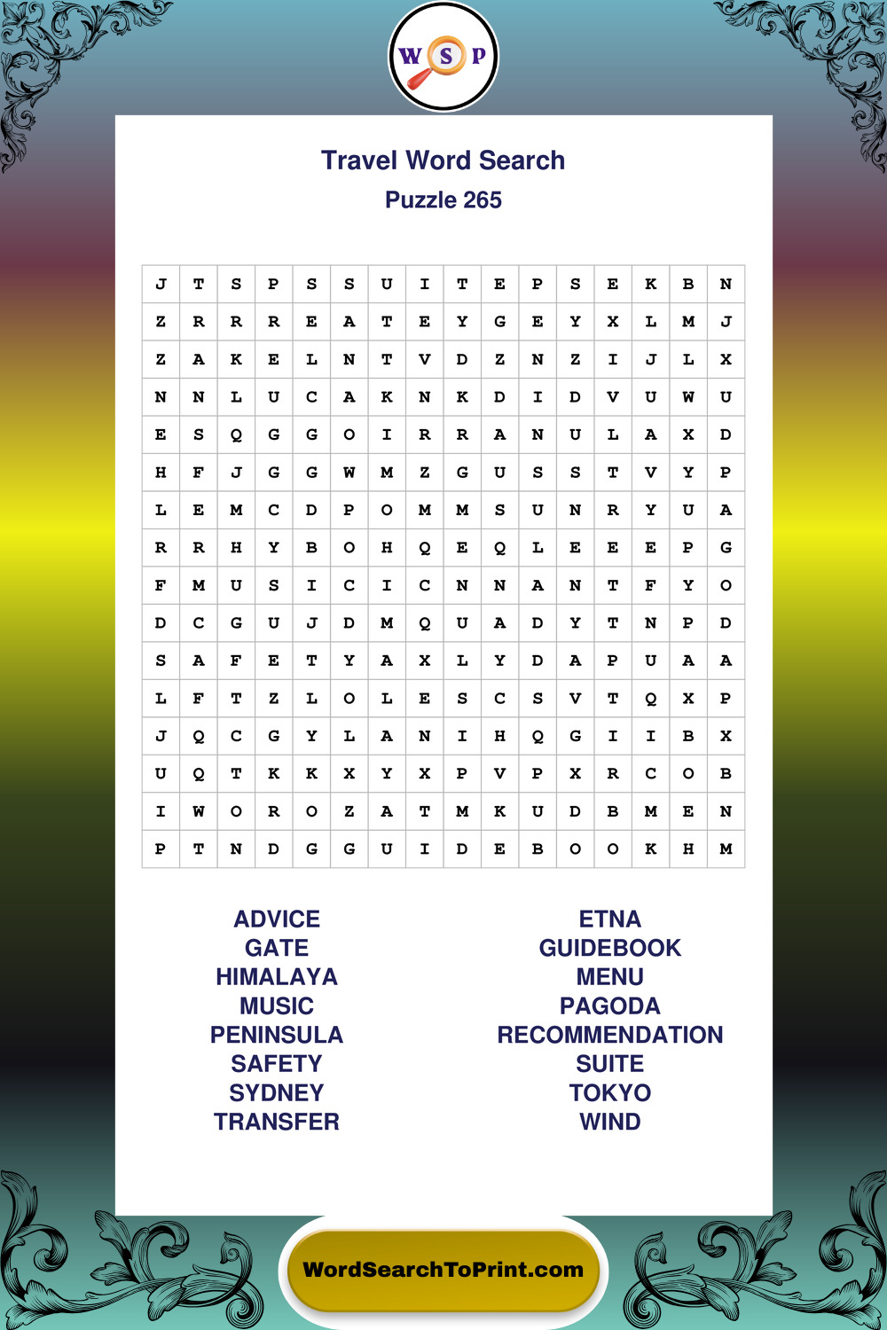 Printable Travel Wordsearch Puzzles
