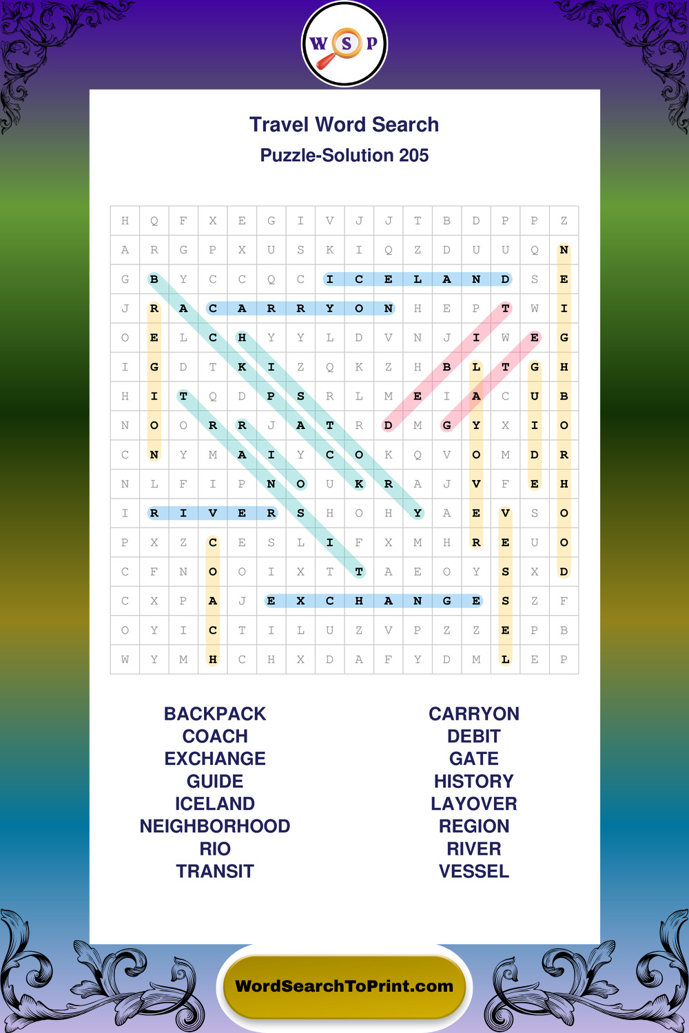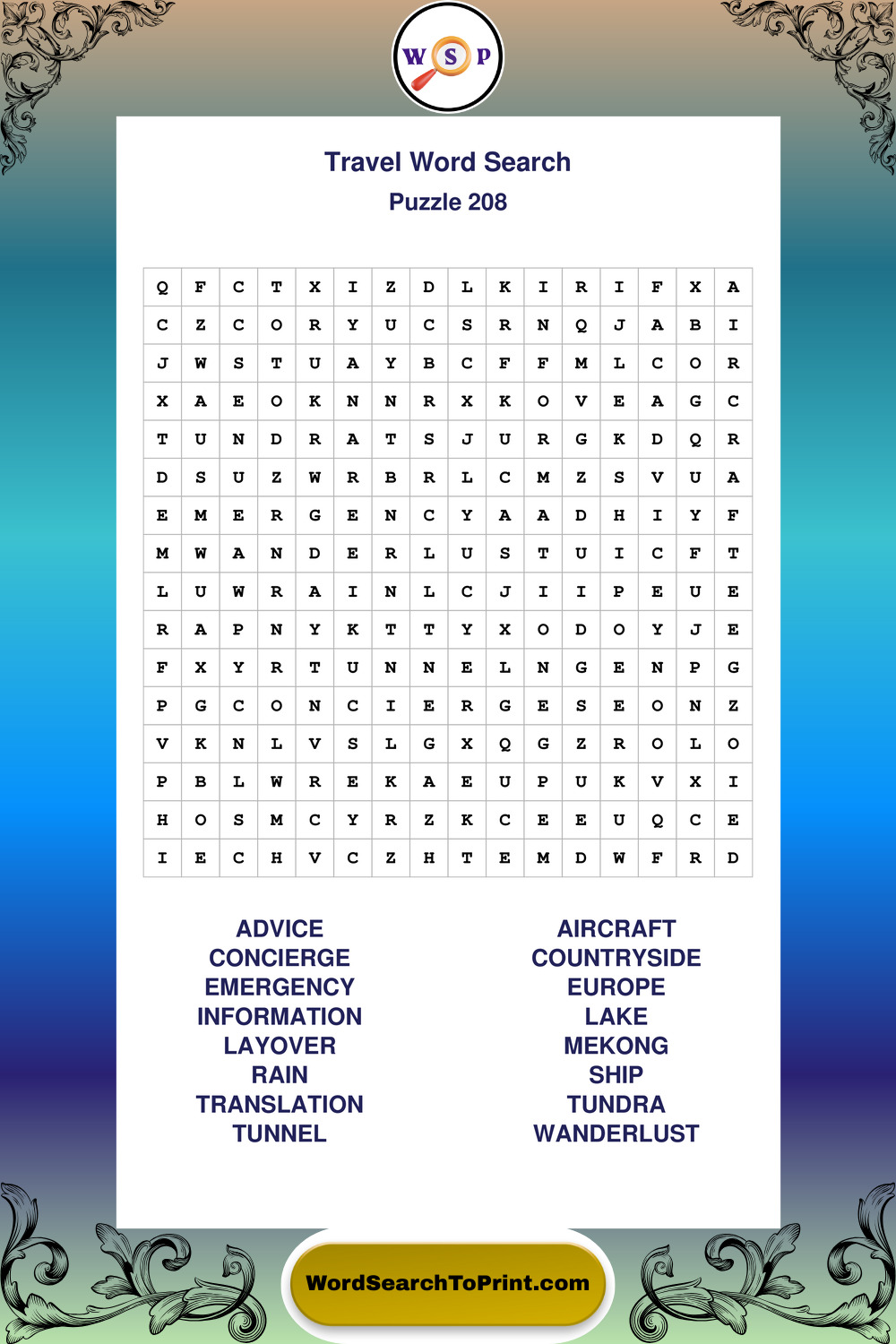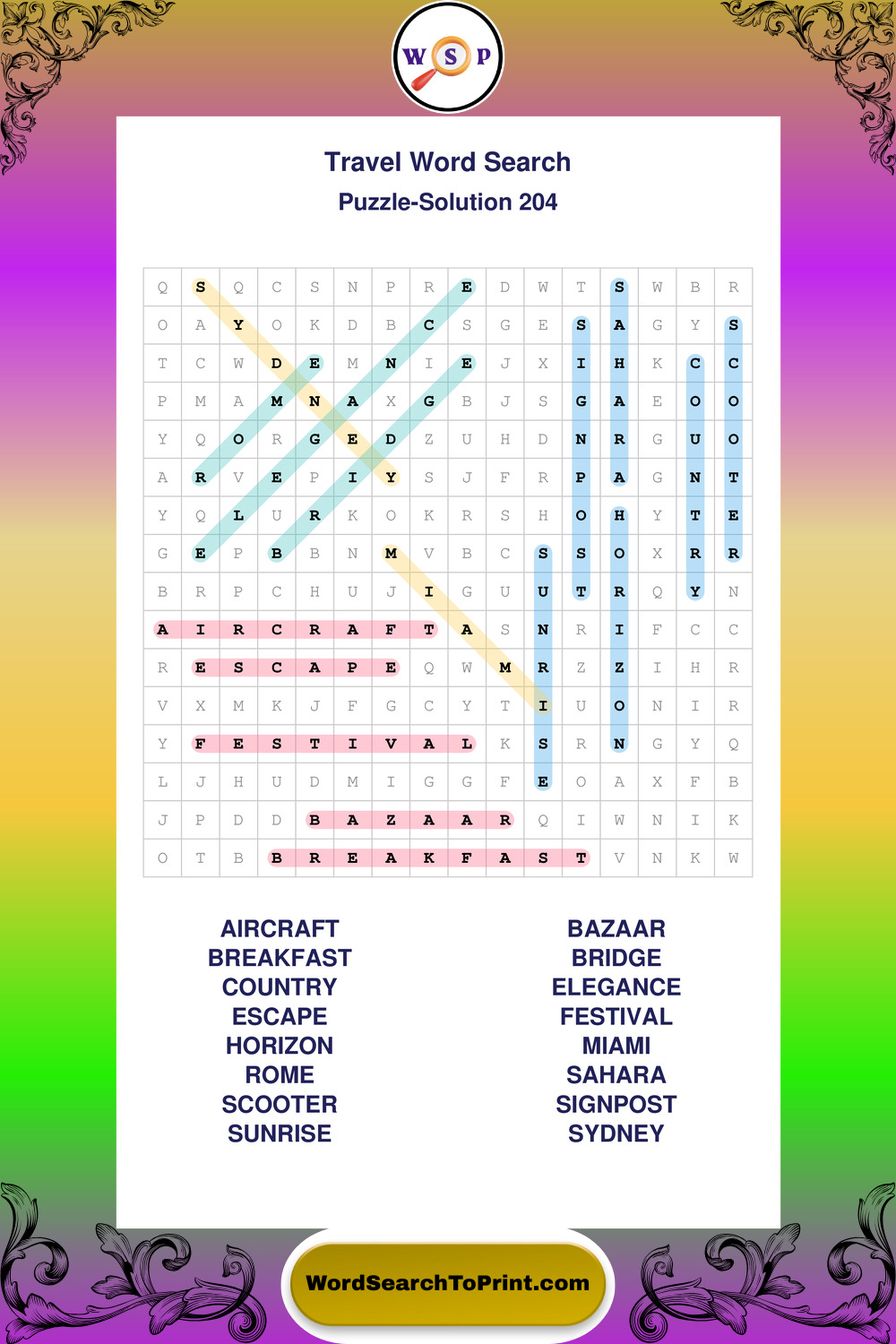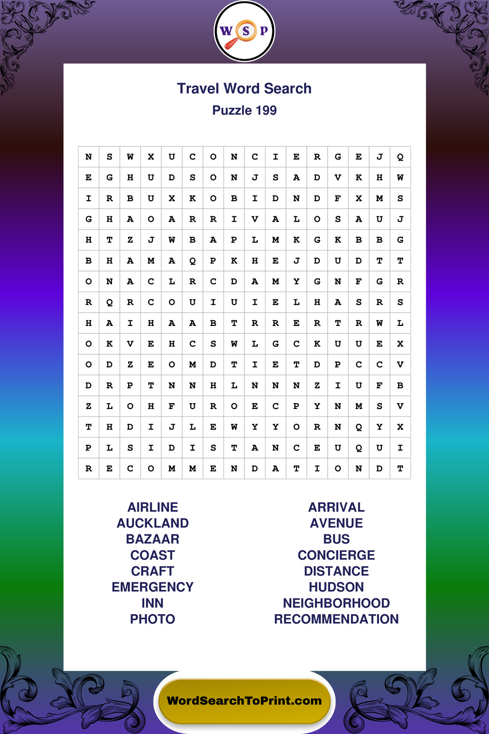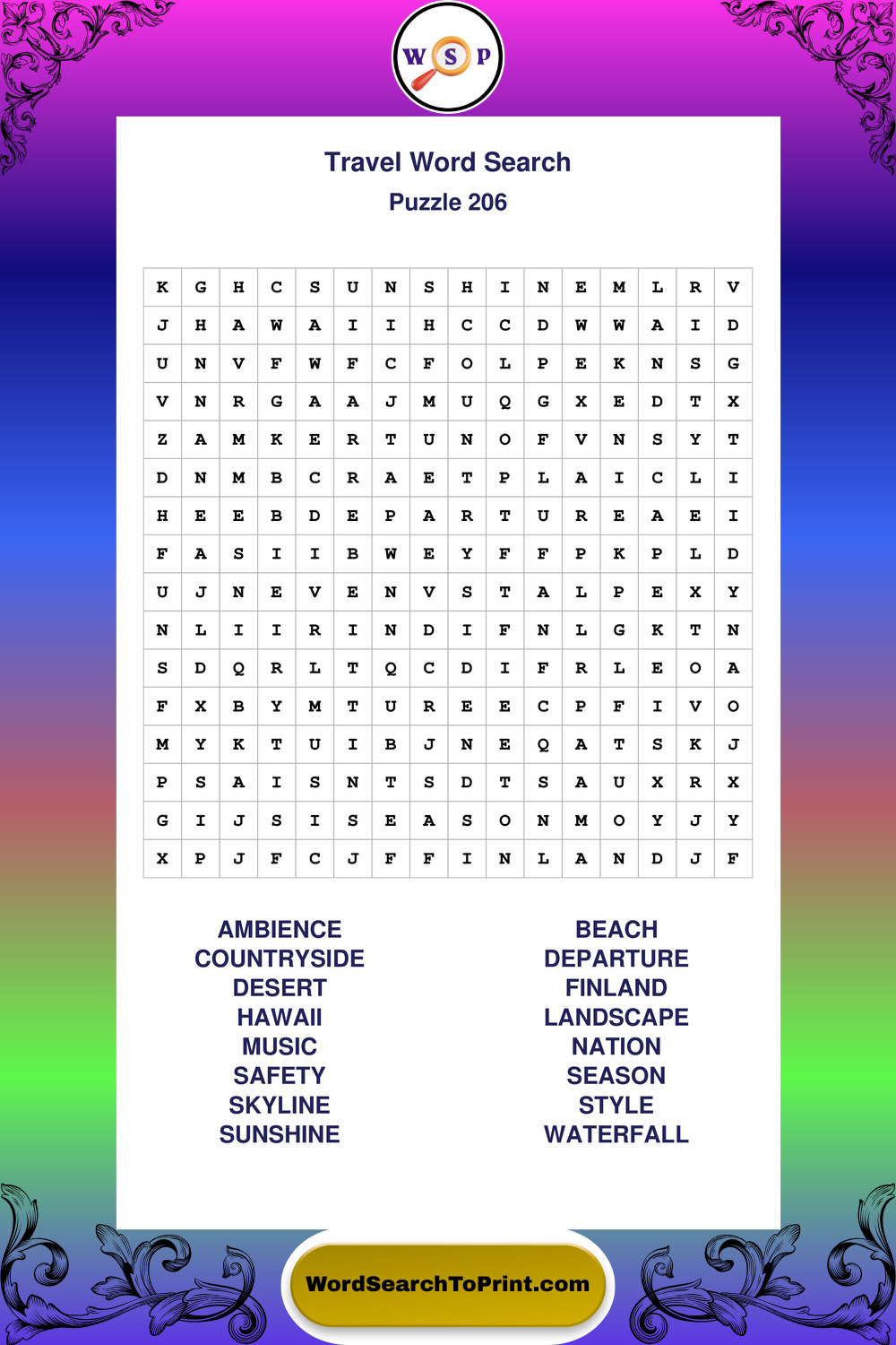 Enjoy these free large print Travel wordsearches designed for easy reading and relaxed puzzle solving. Perfect for teens, adults, and seniors.