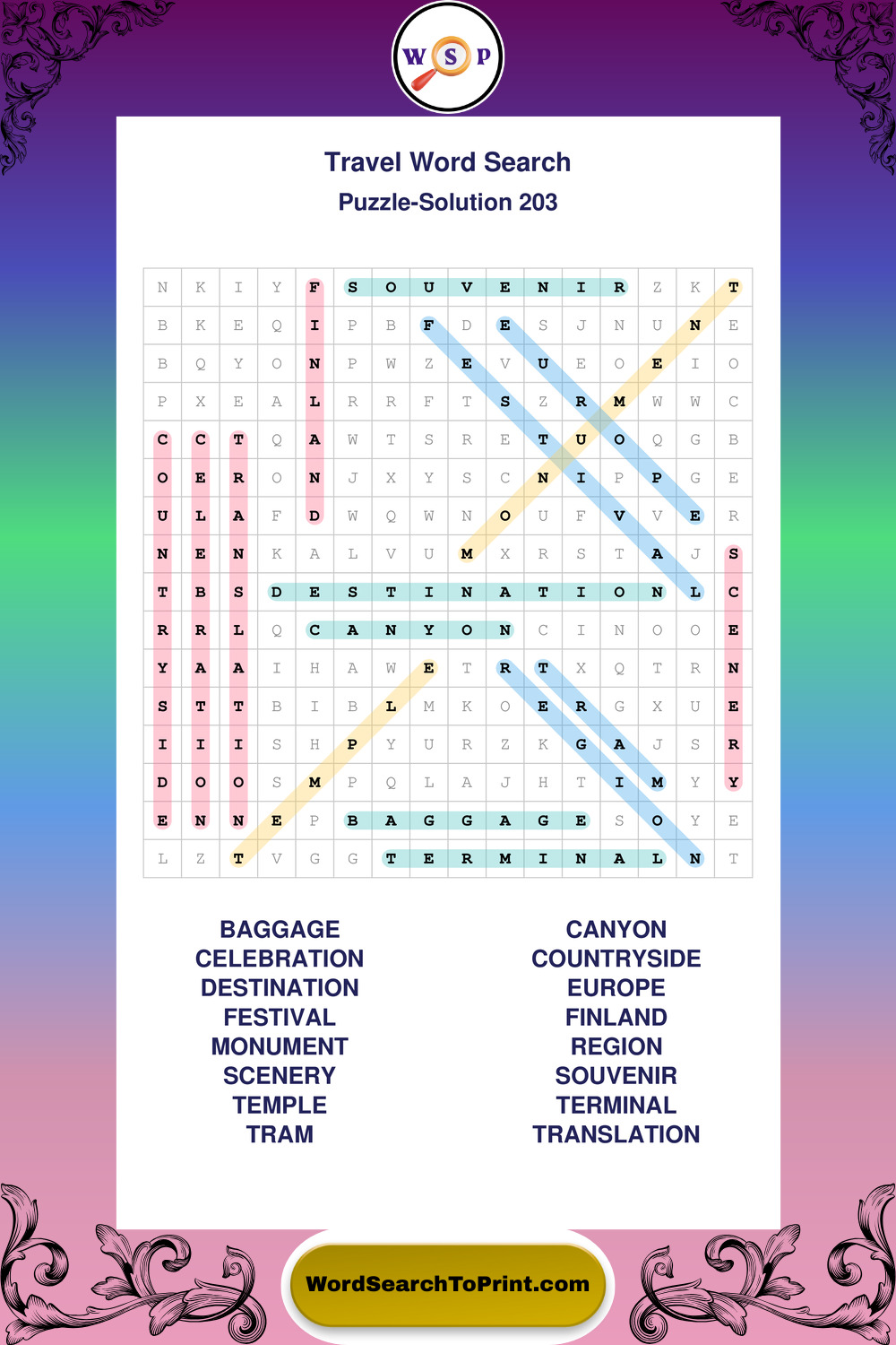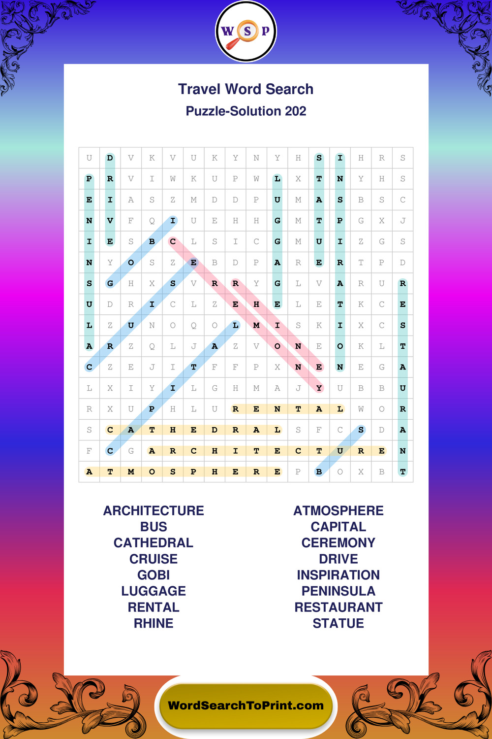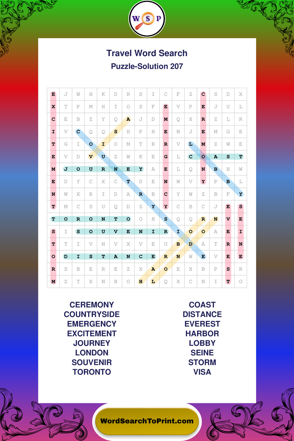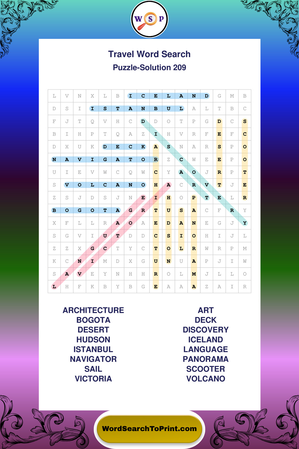 Enjoy these free large print Travel wordsearches designed for easy reading and relaxed puzzle solving. Perfect for teens, adults, and seniors.