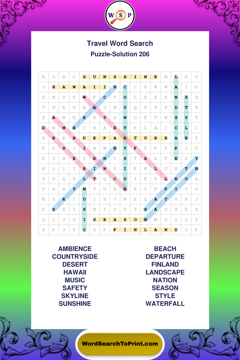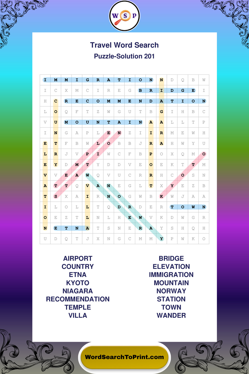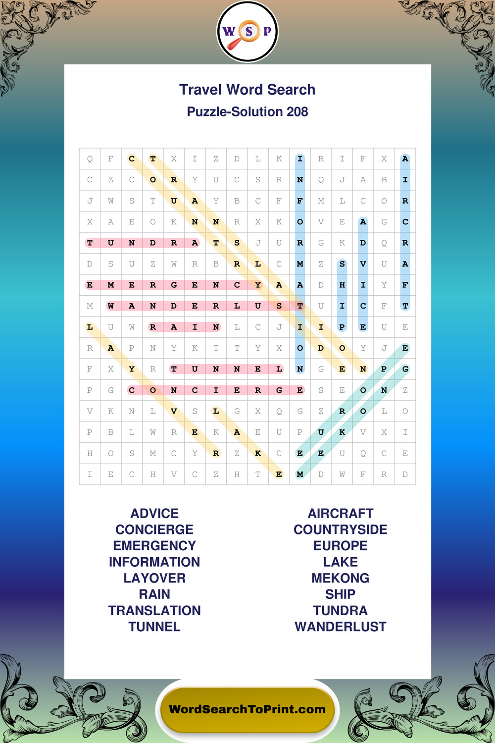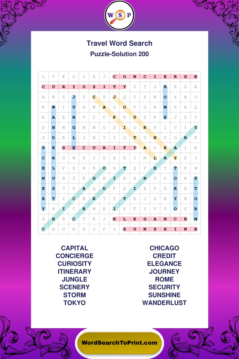 Enjoy these free large print Travel wordsearches designed for easy reading and relaxed puzzle solving. Perfect for teens, adults, and seniors.