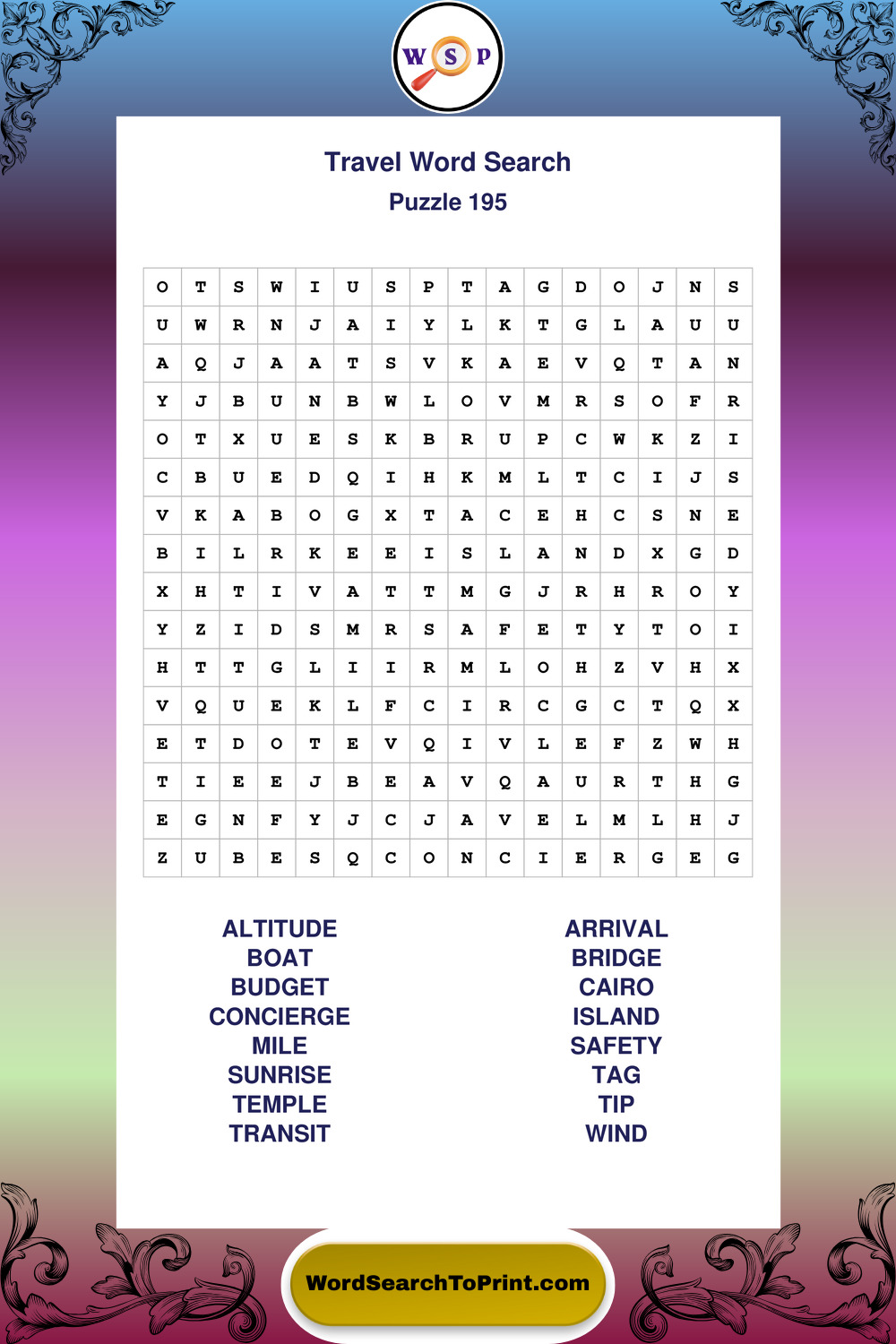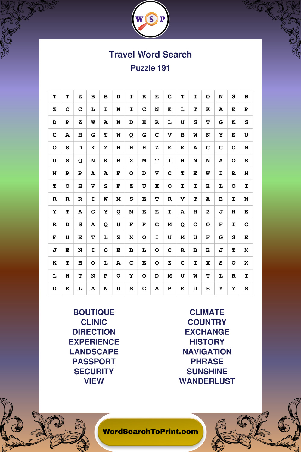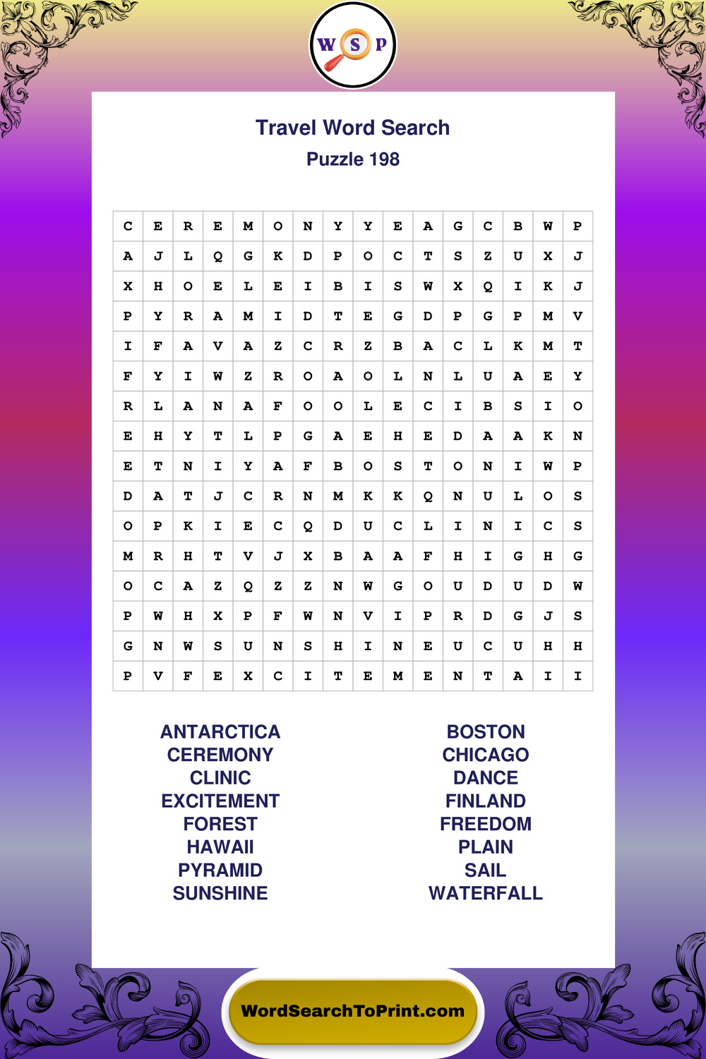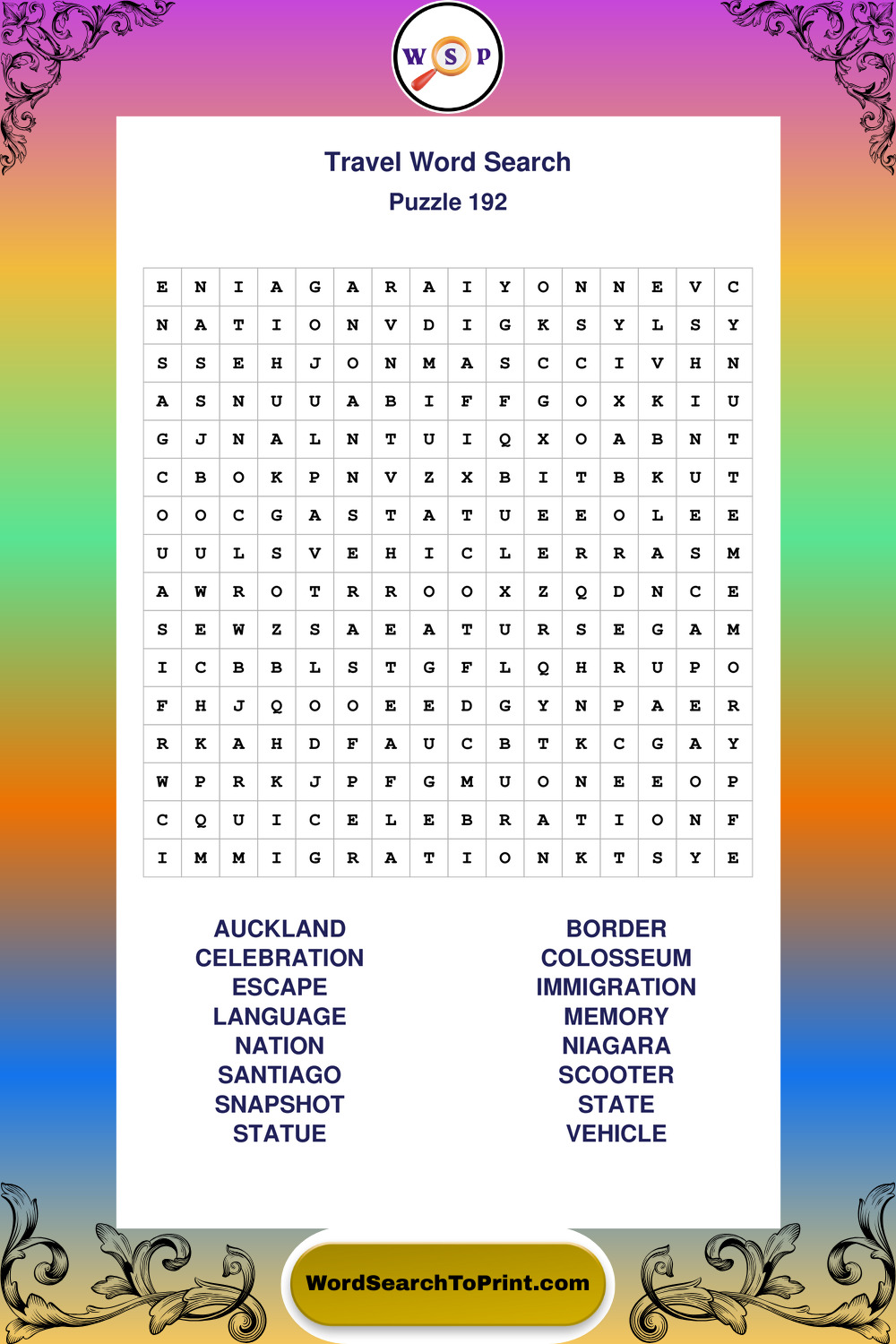 Printable Travel Wordsearch Puzzles