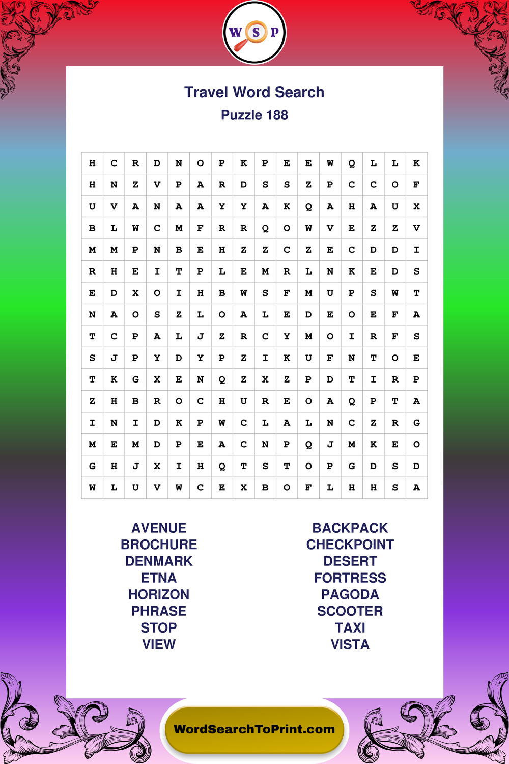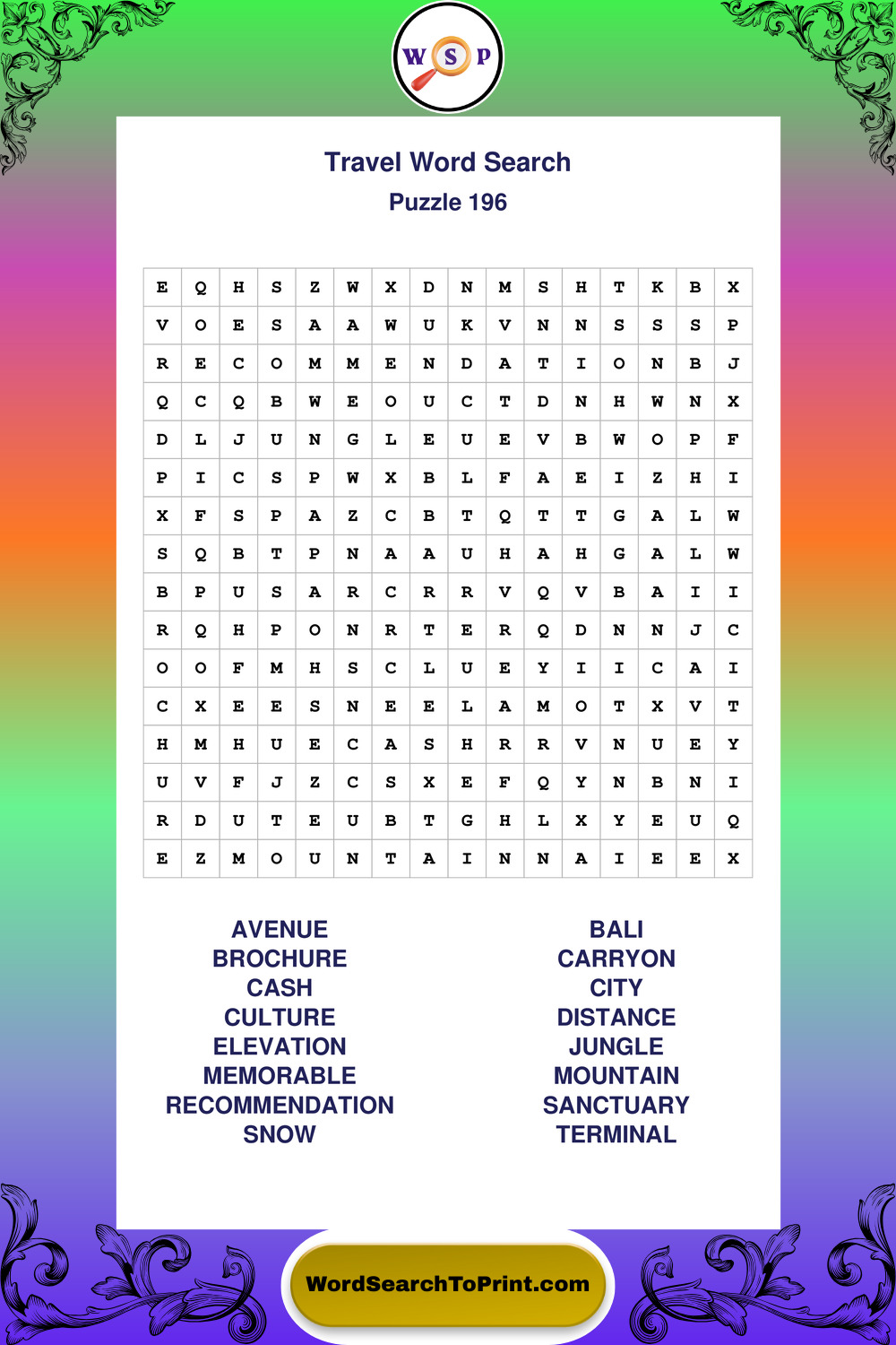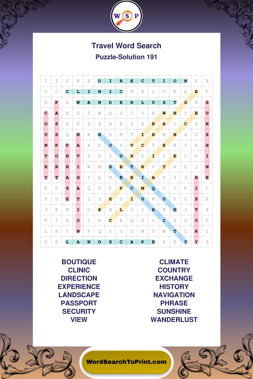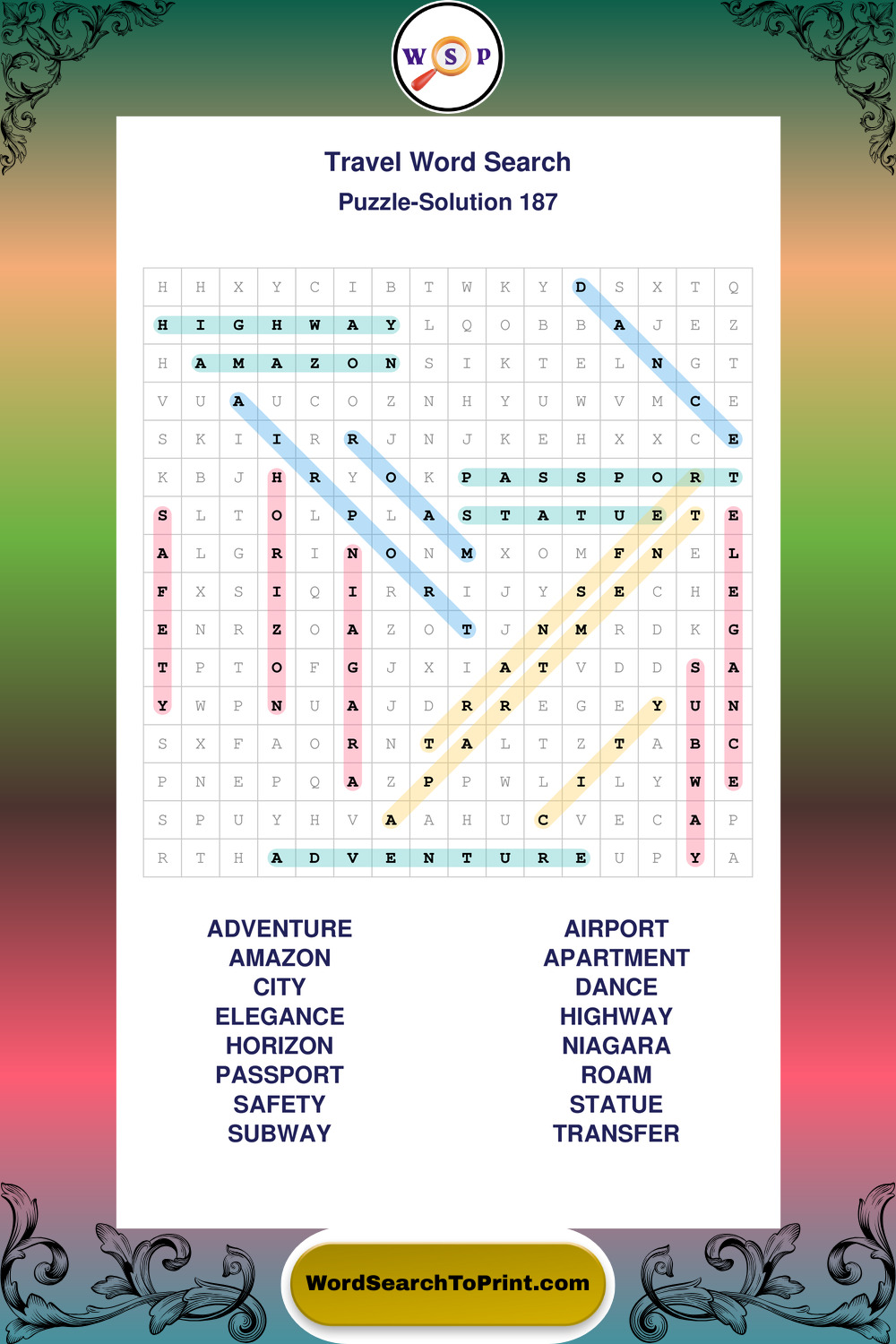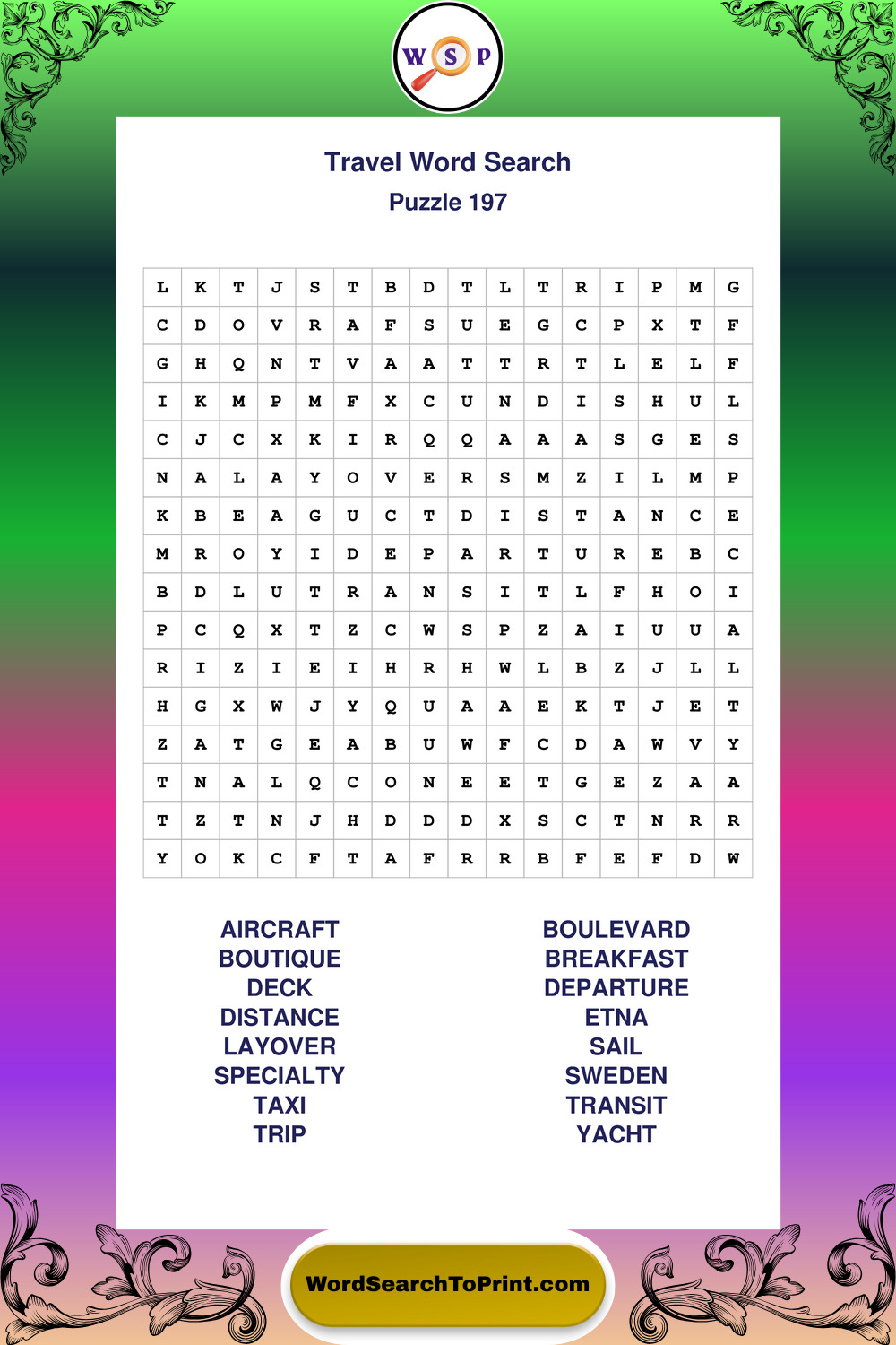 Printable Travel Wordsearch Puzzles