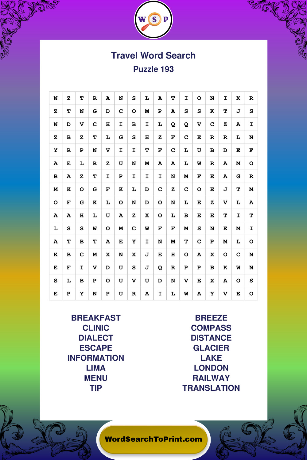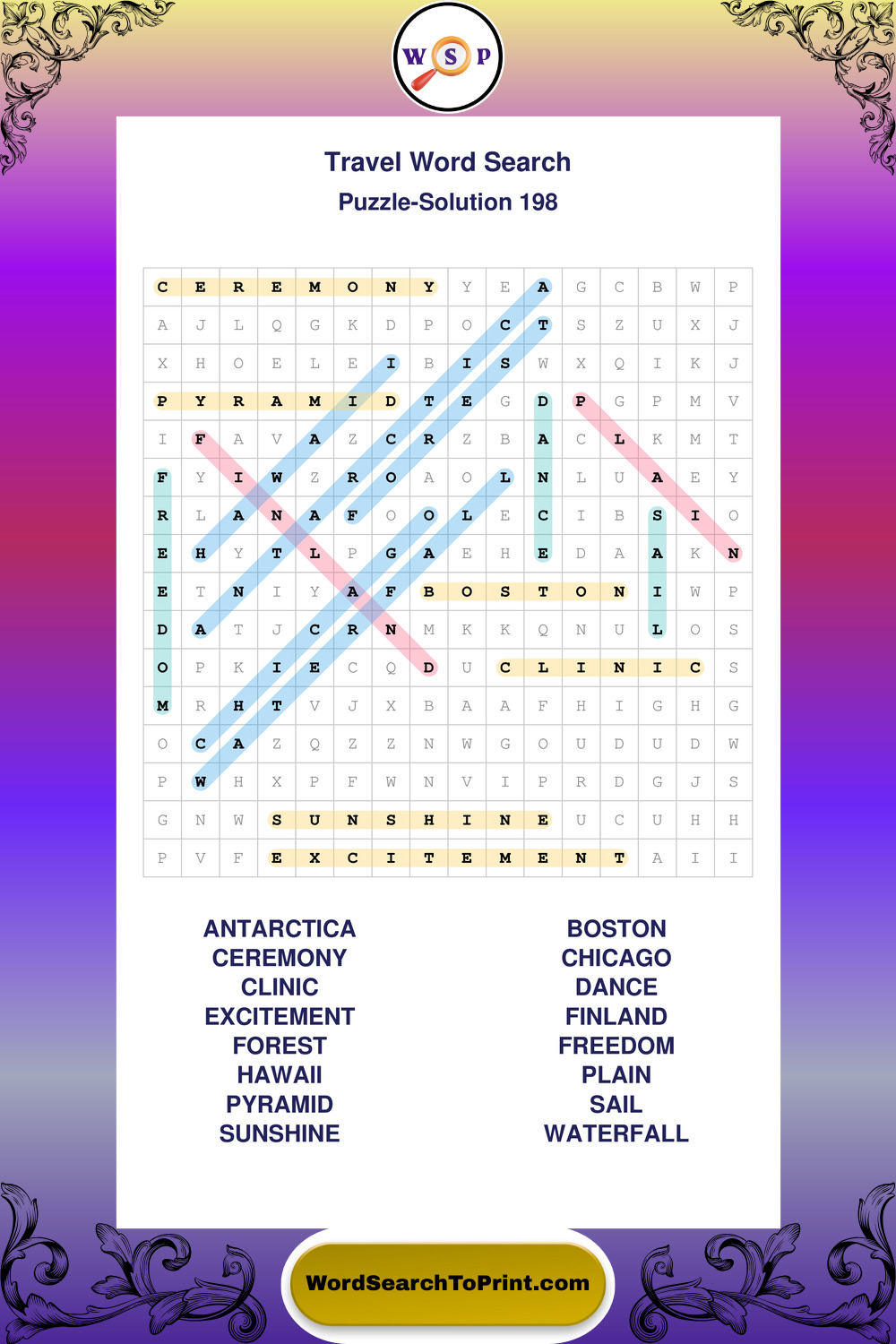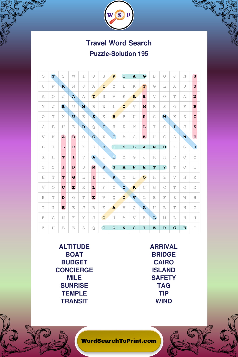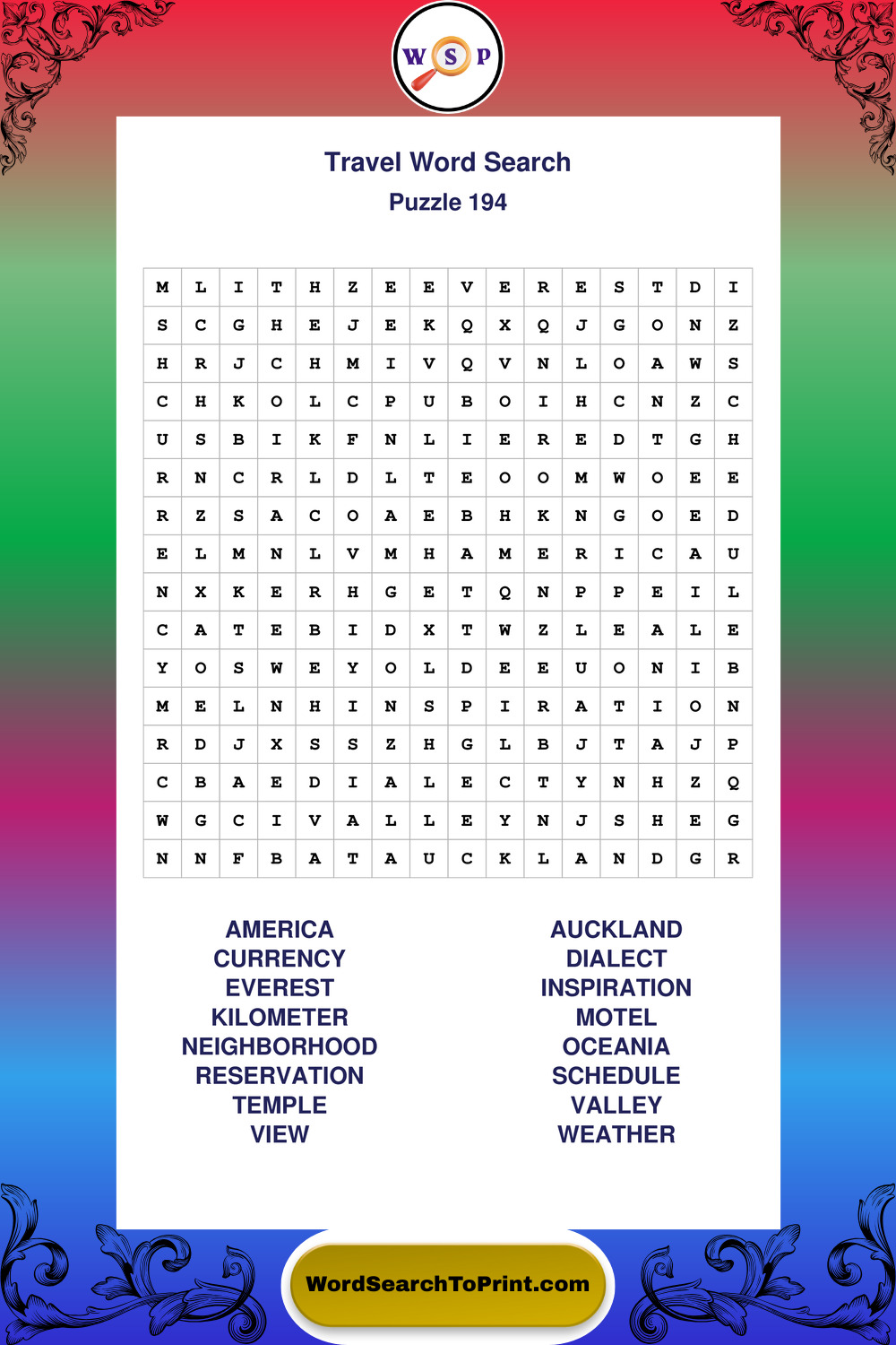 Printable Travel Wordsearch Puzzles