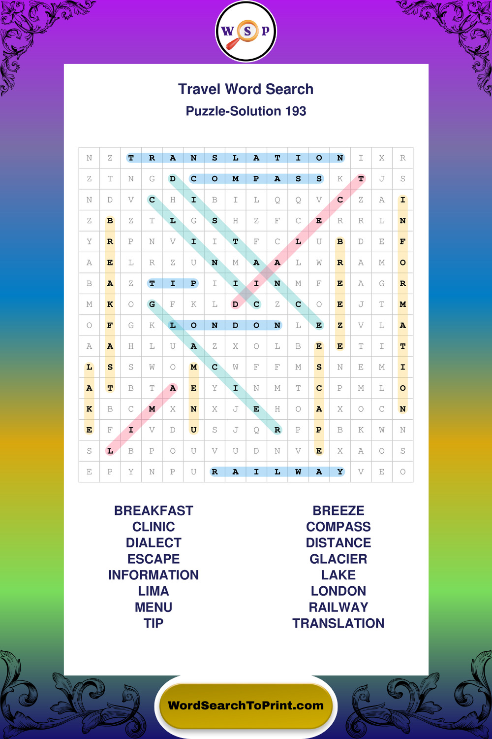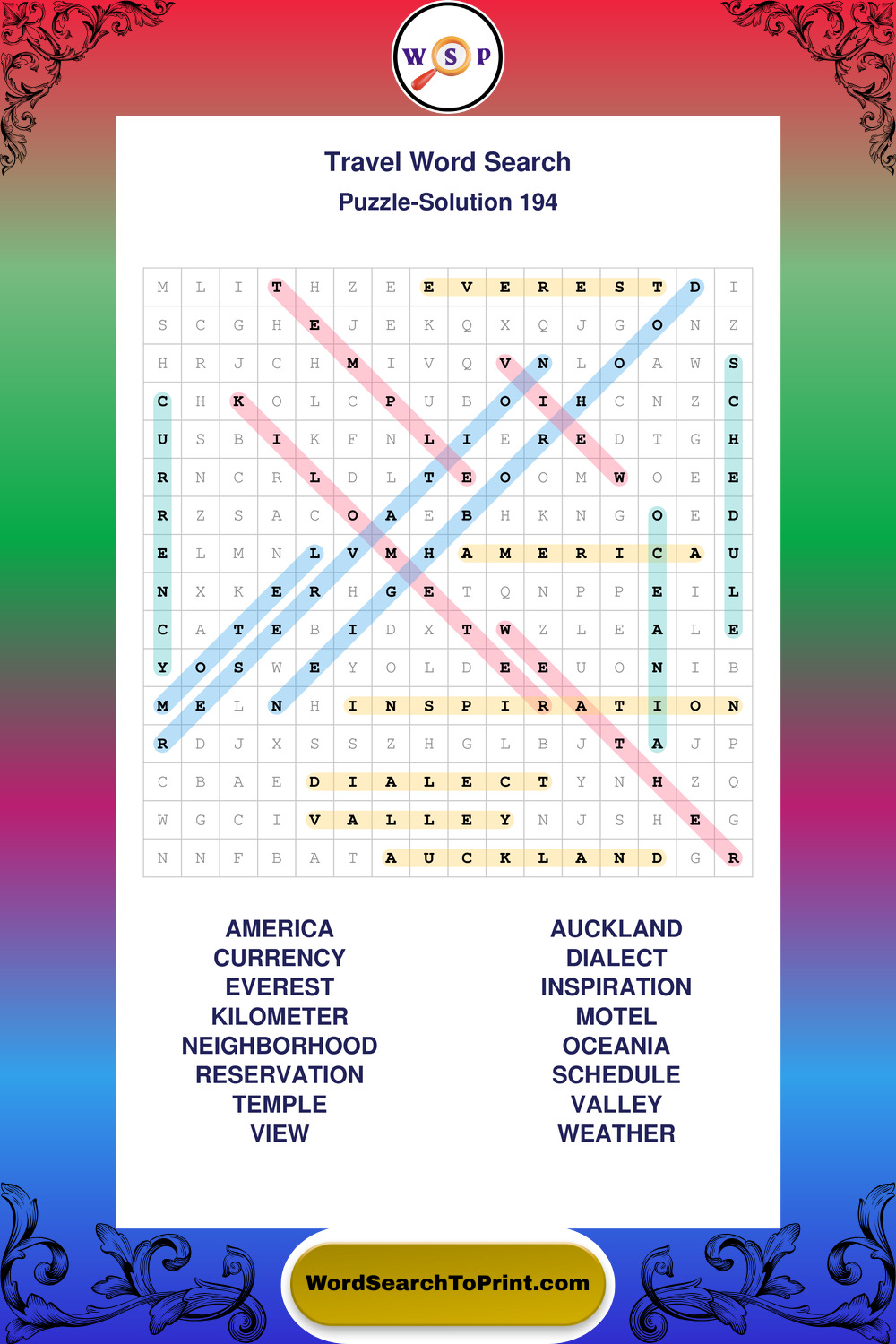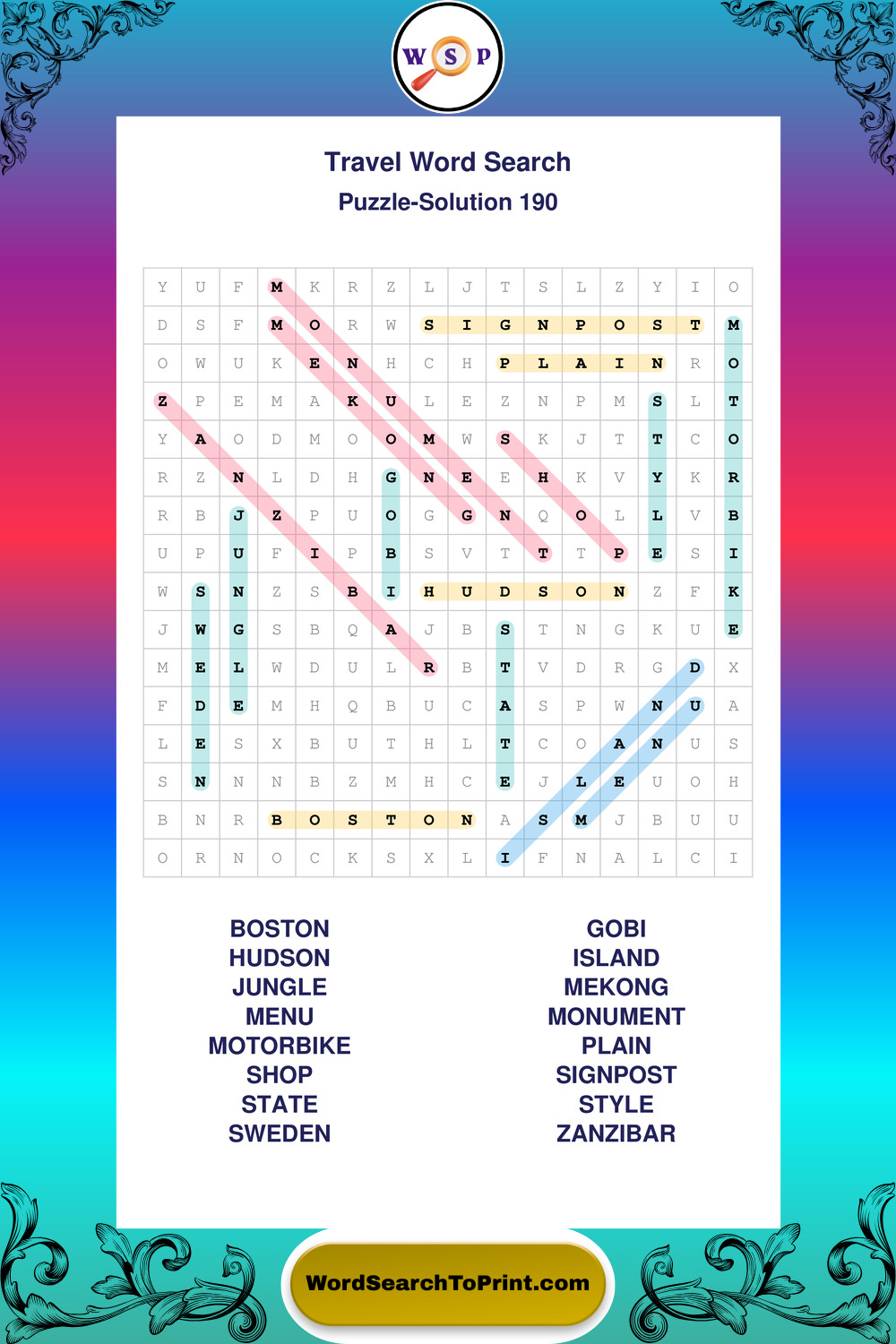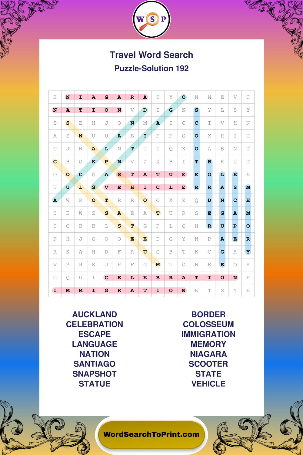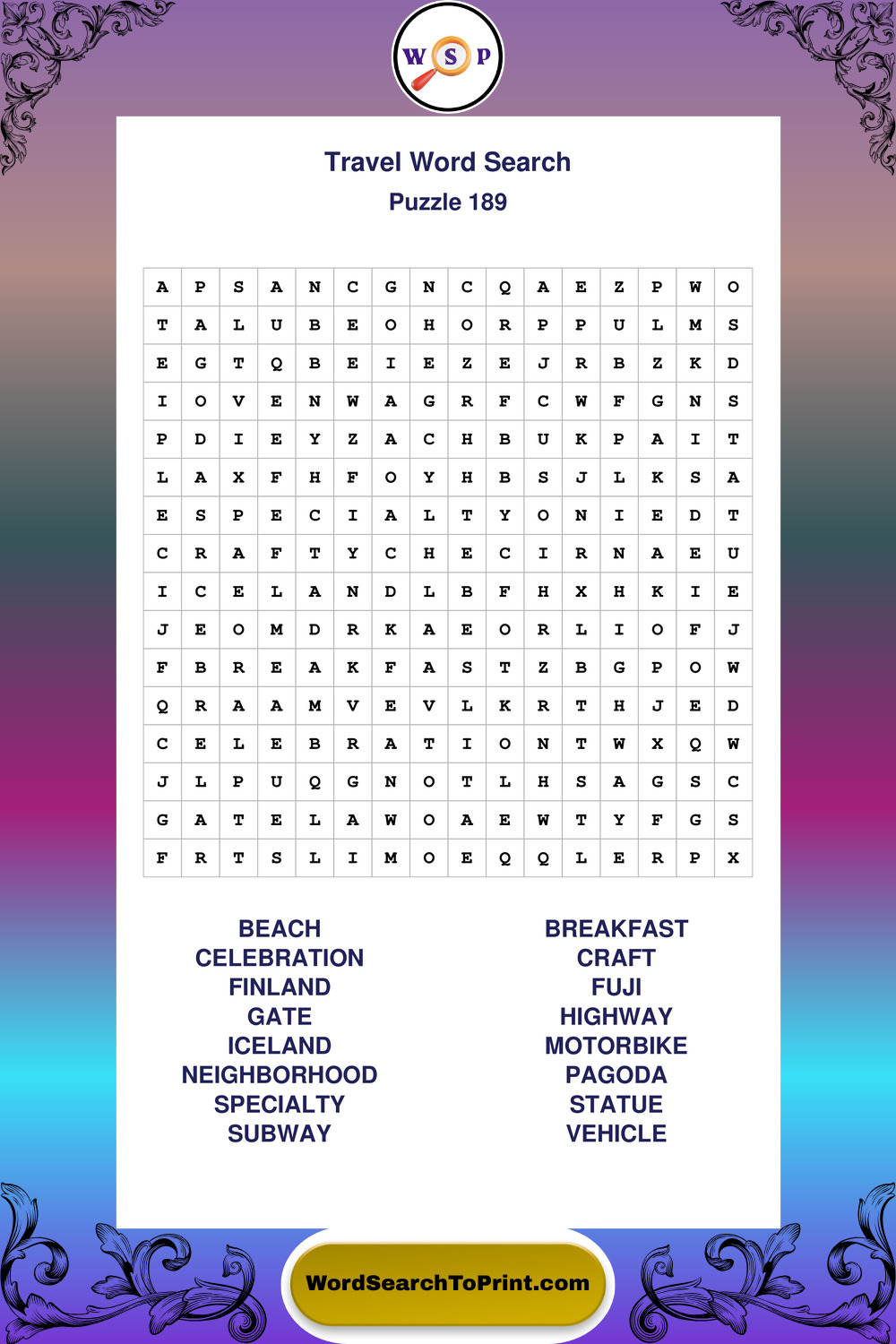 Printable Travel Wordsearch Puzzles