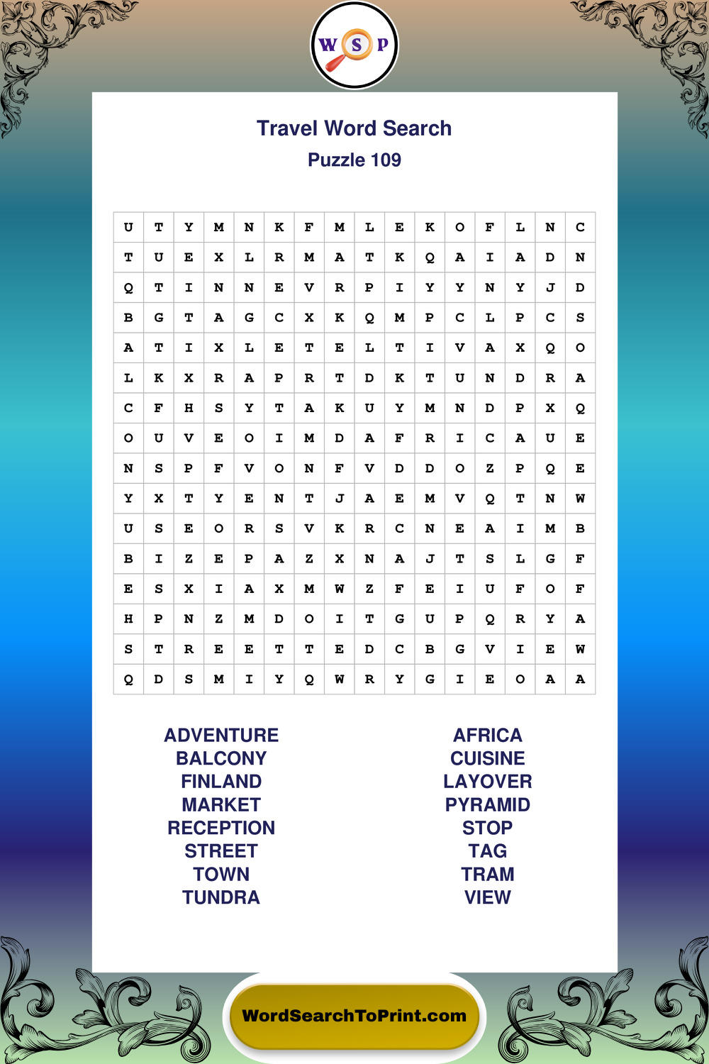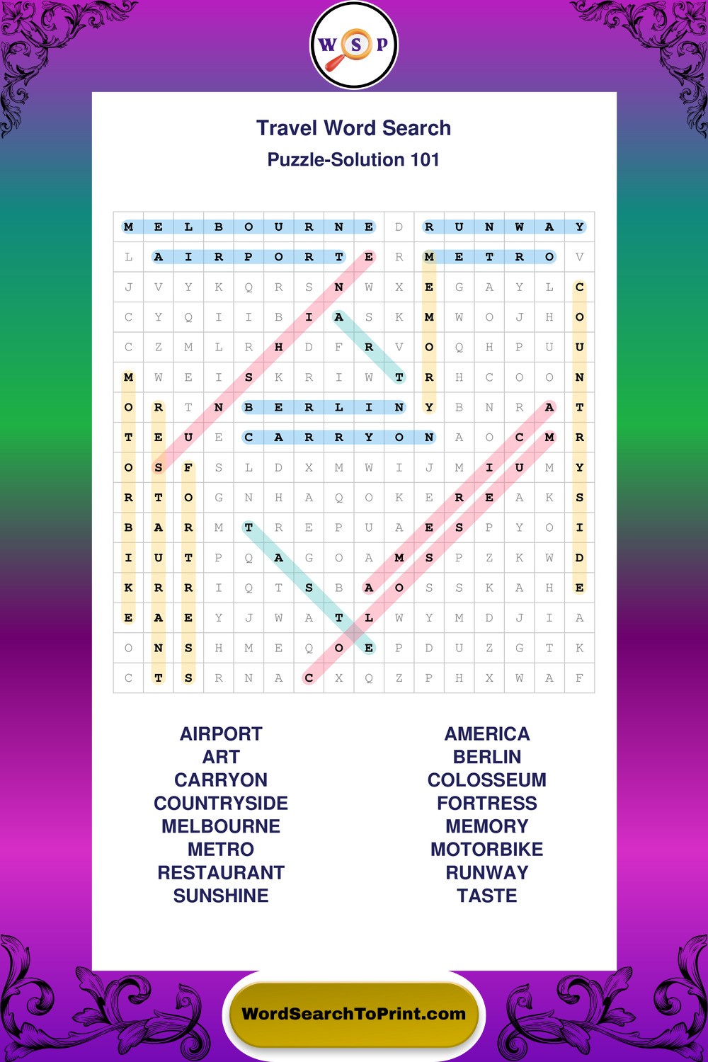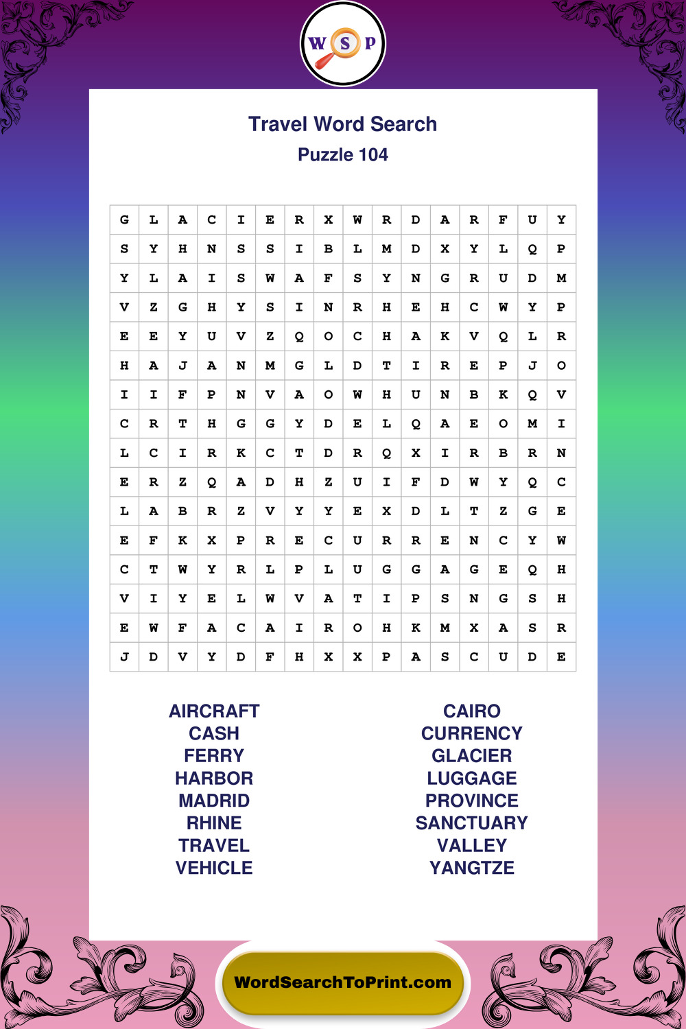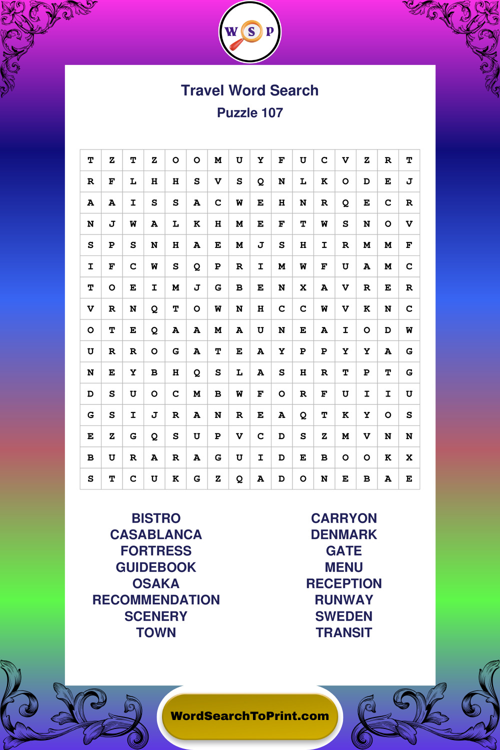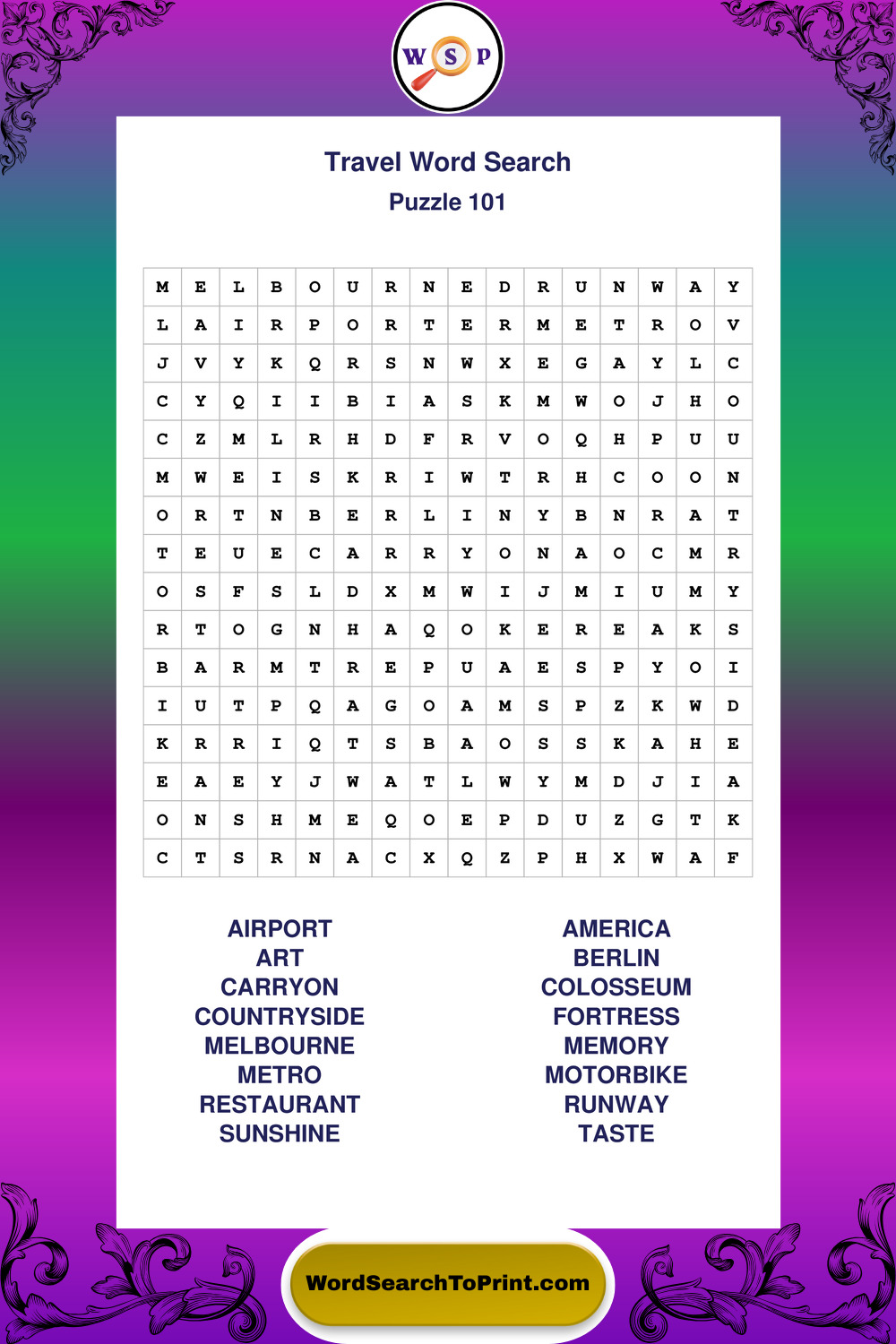 Printable Travel Wordsearch Puzzles