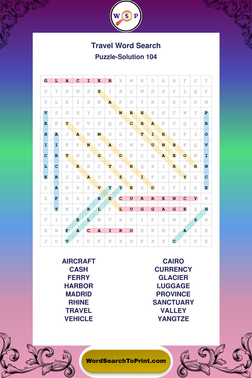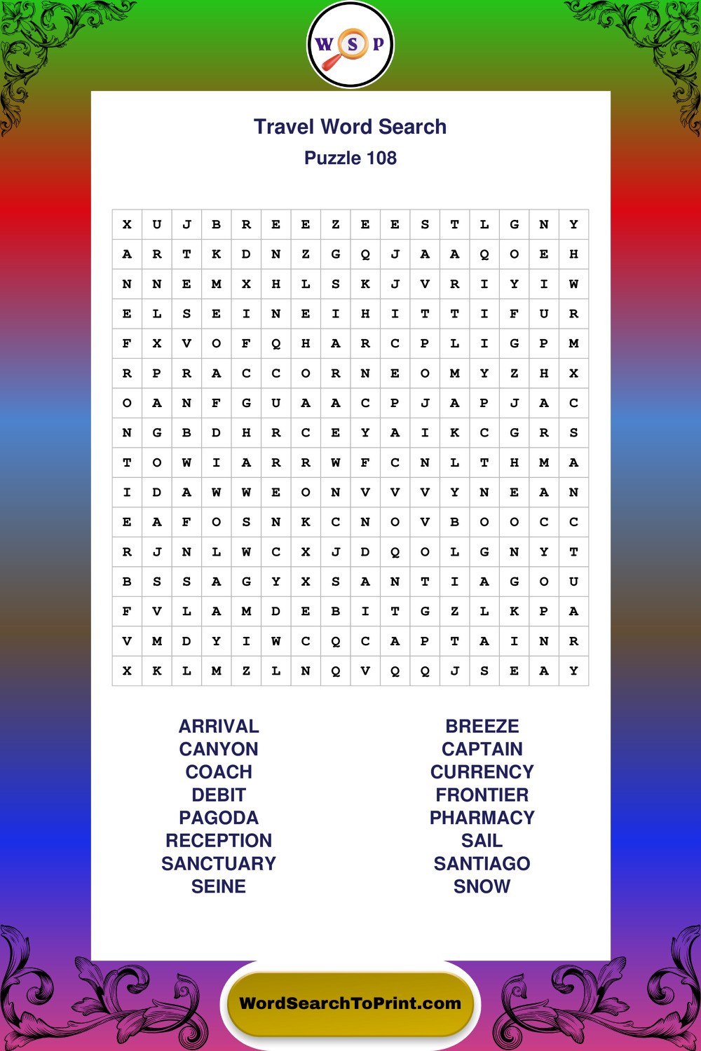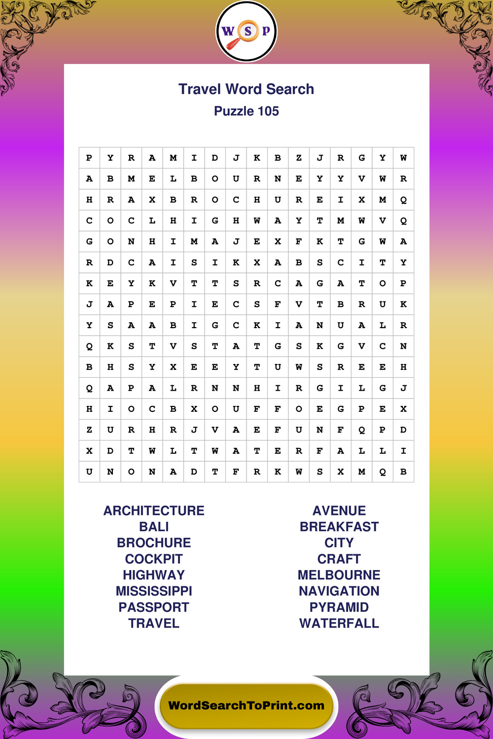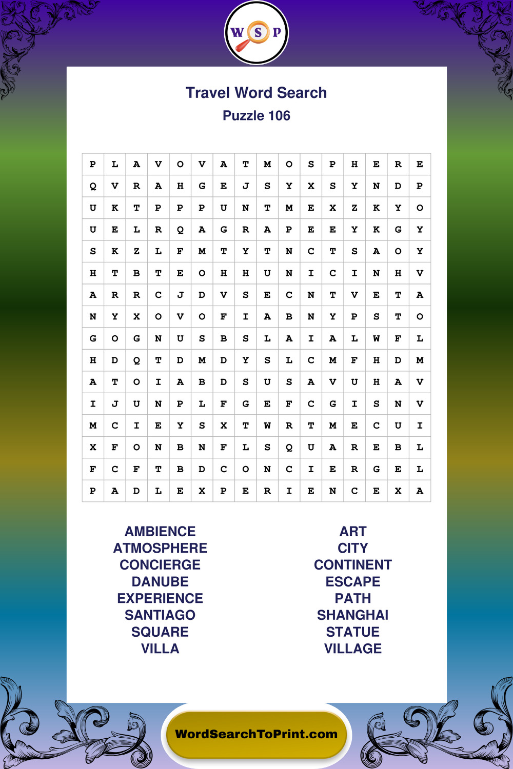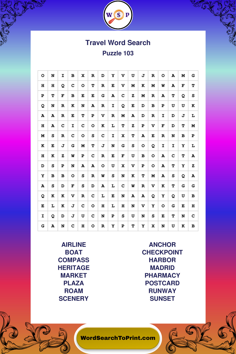 Printable Travel Wordsearch Puzzles