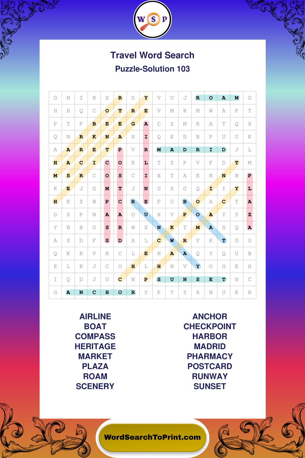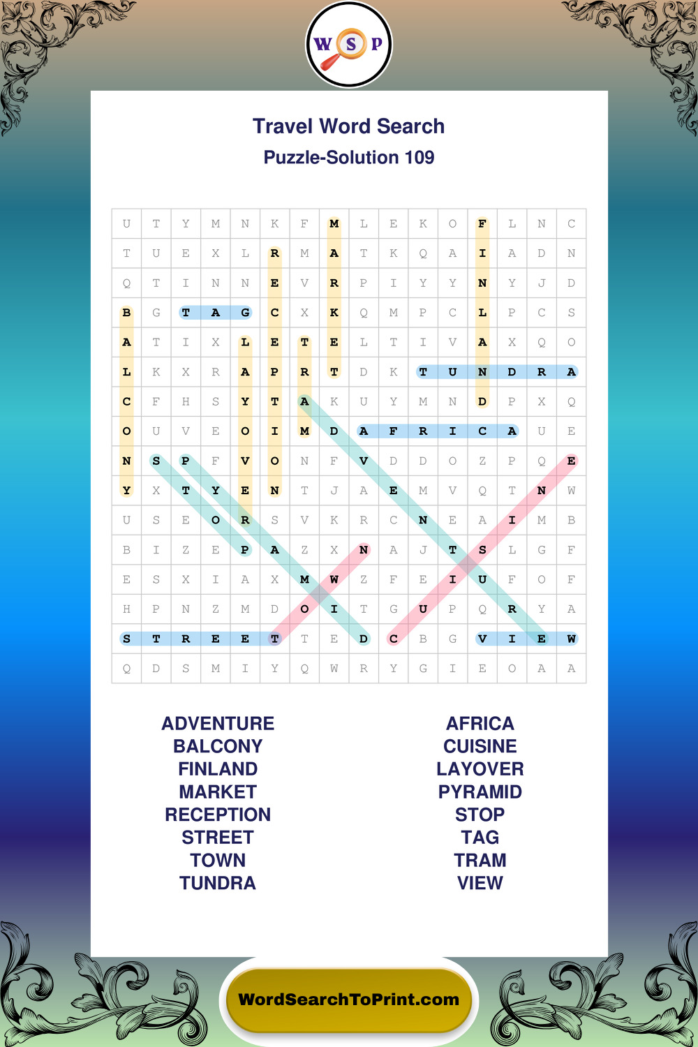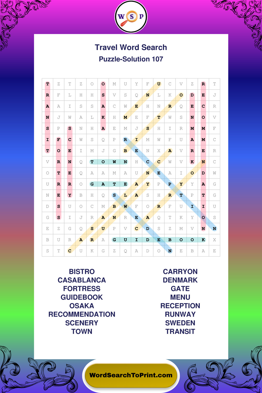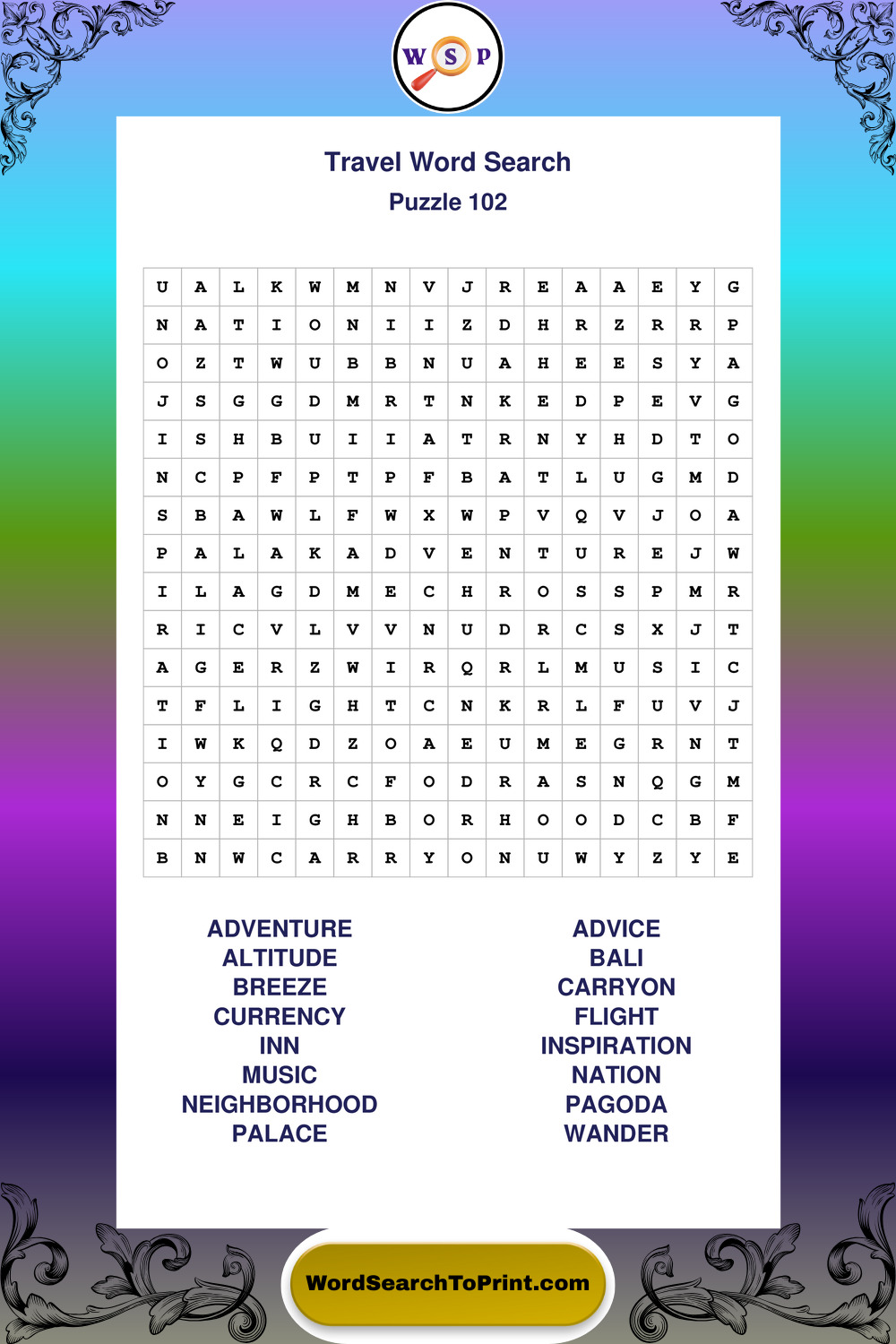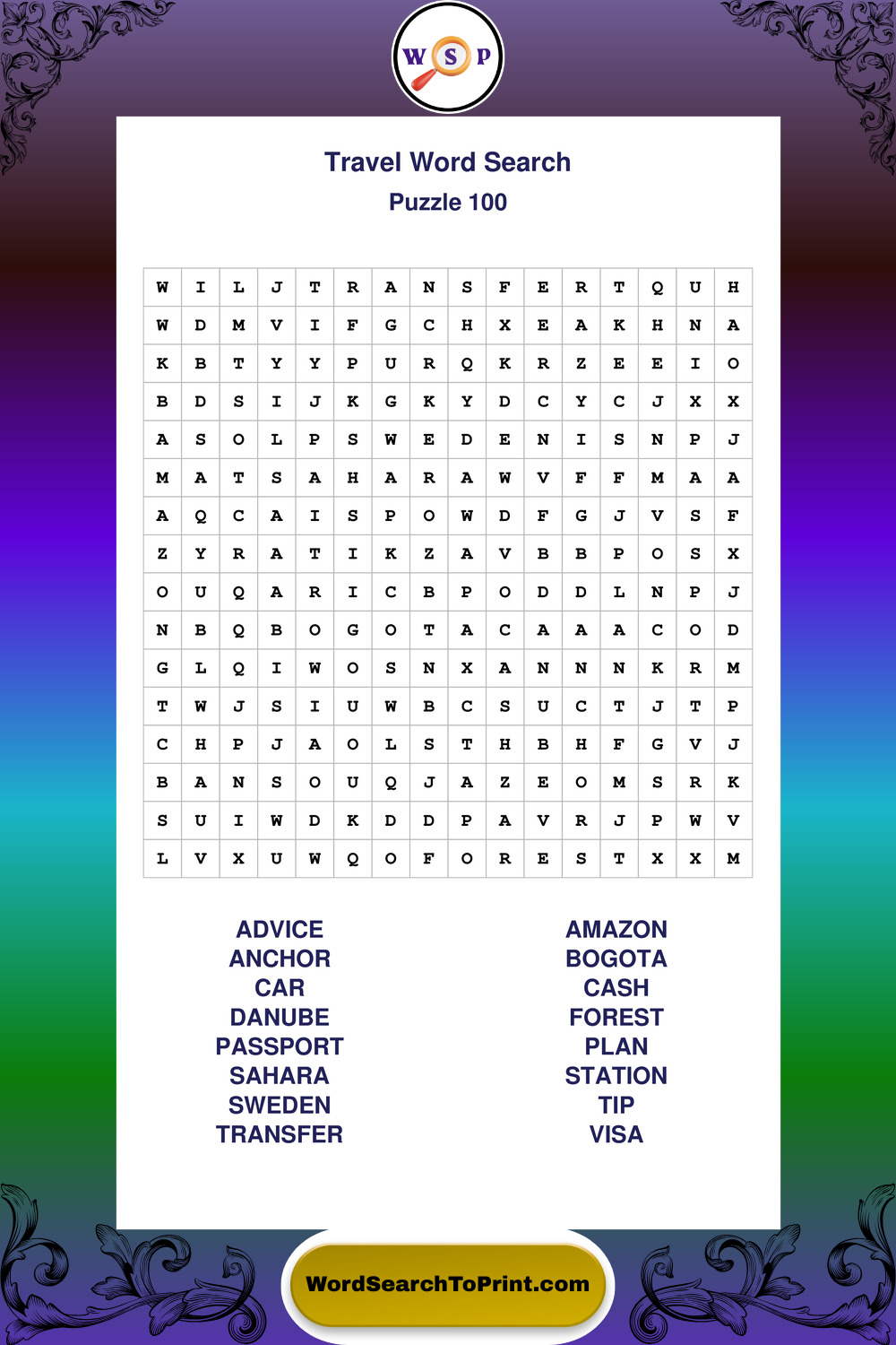 Printable Travel Wordsearch Puzzles