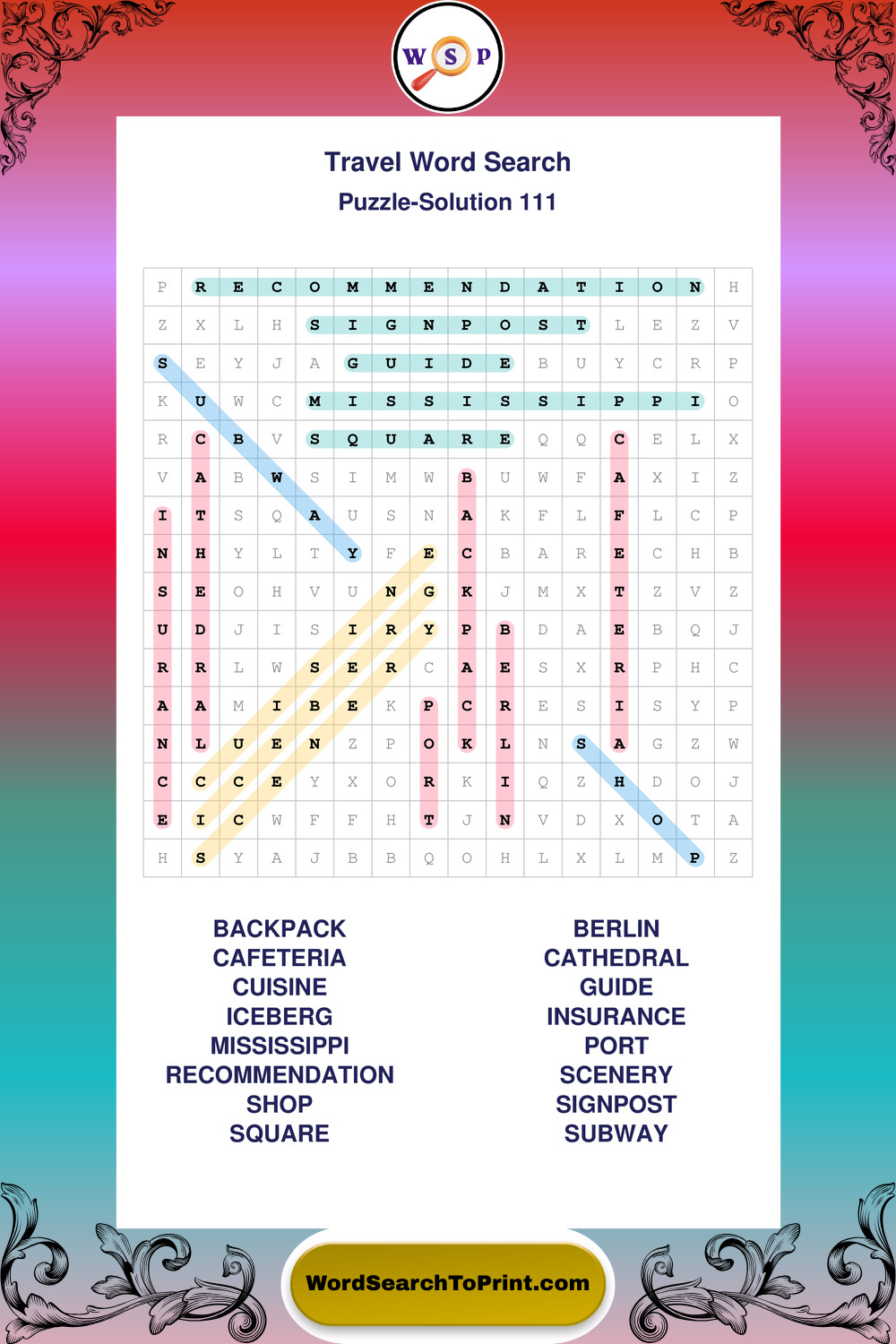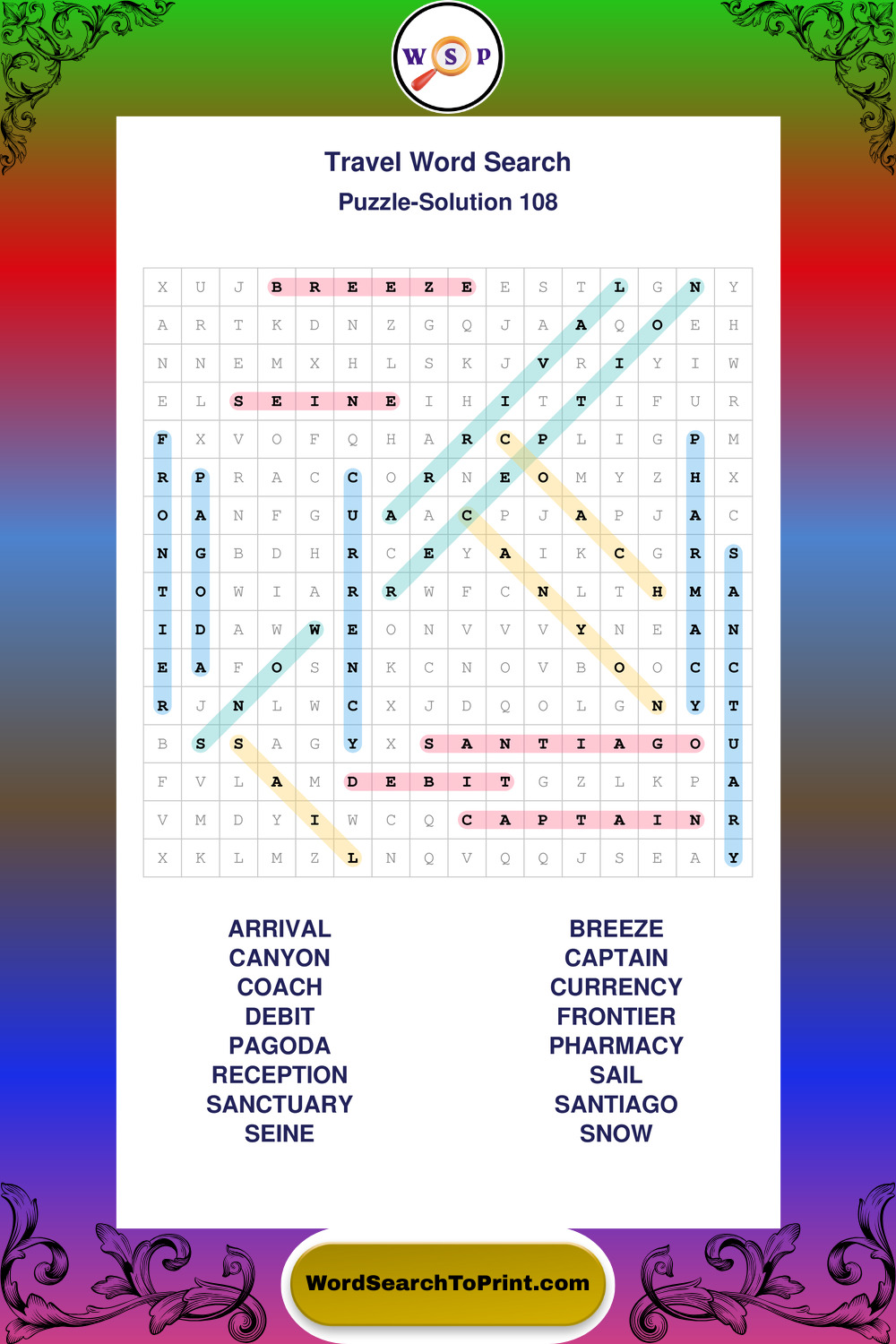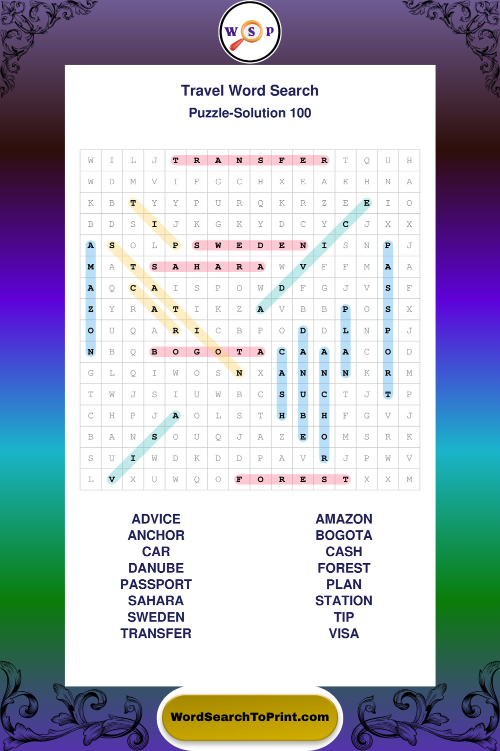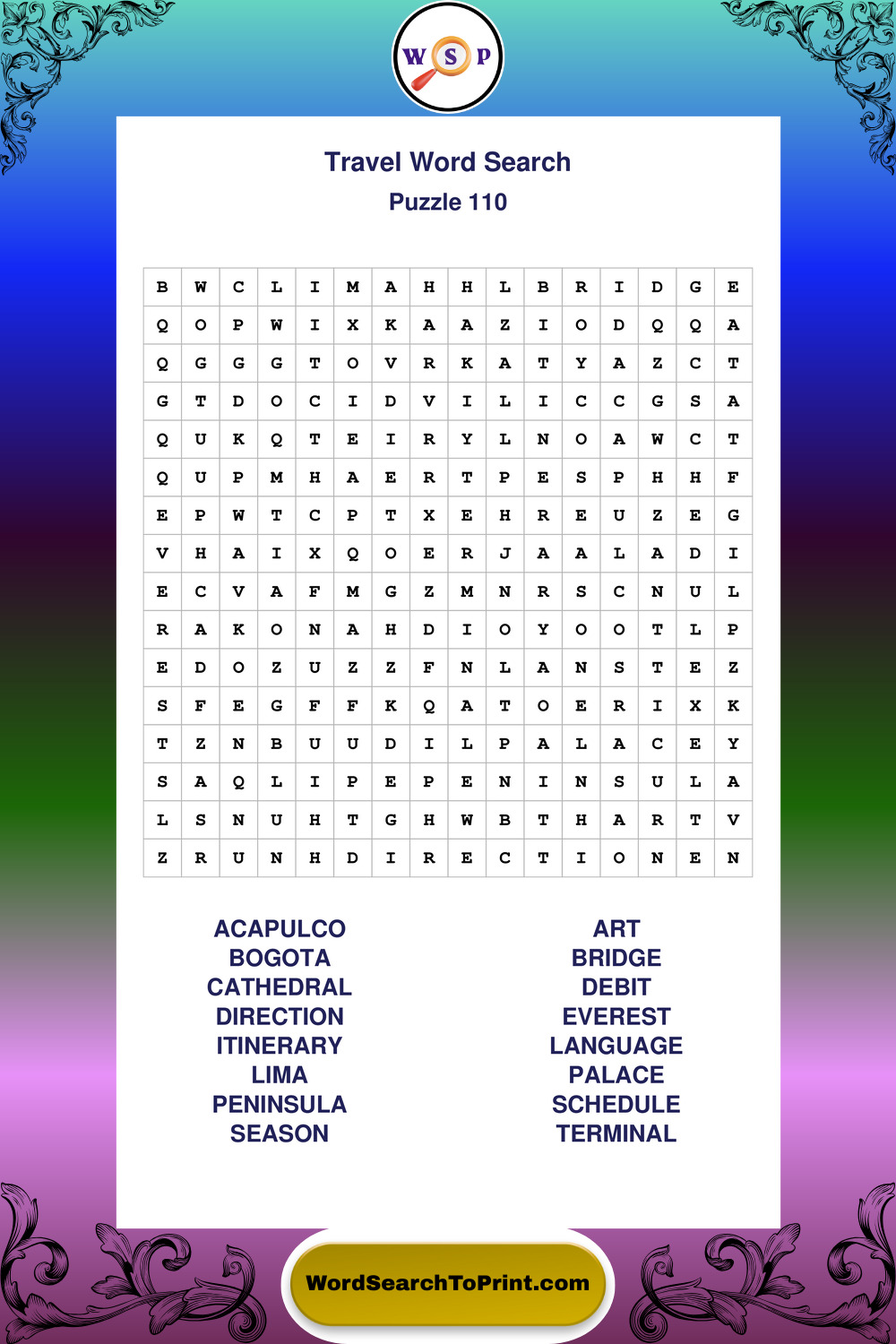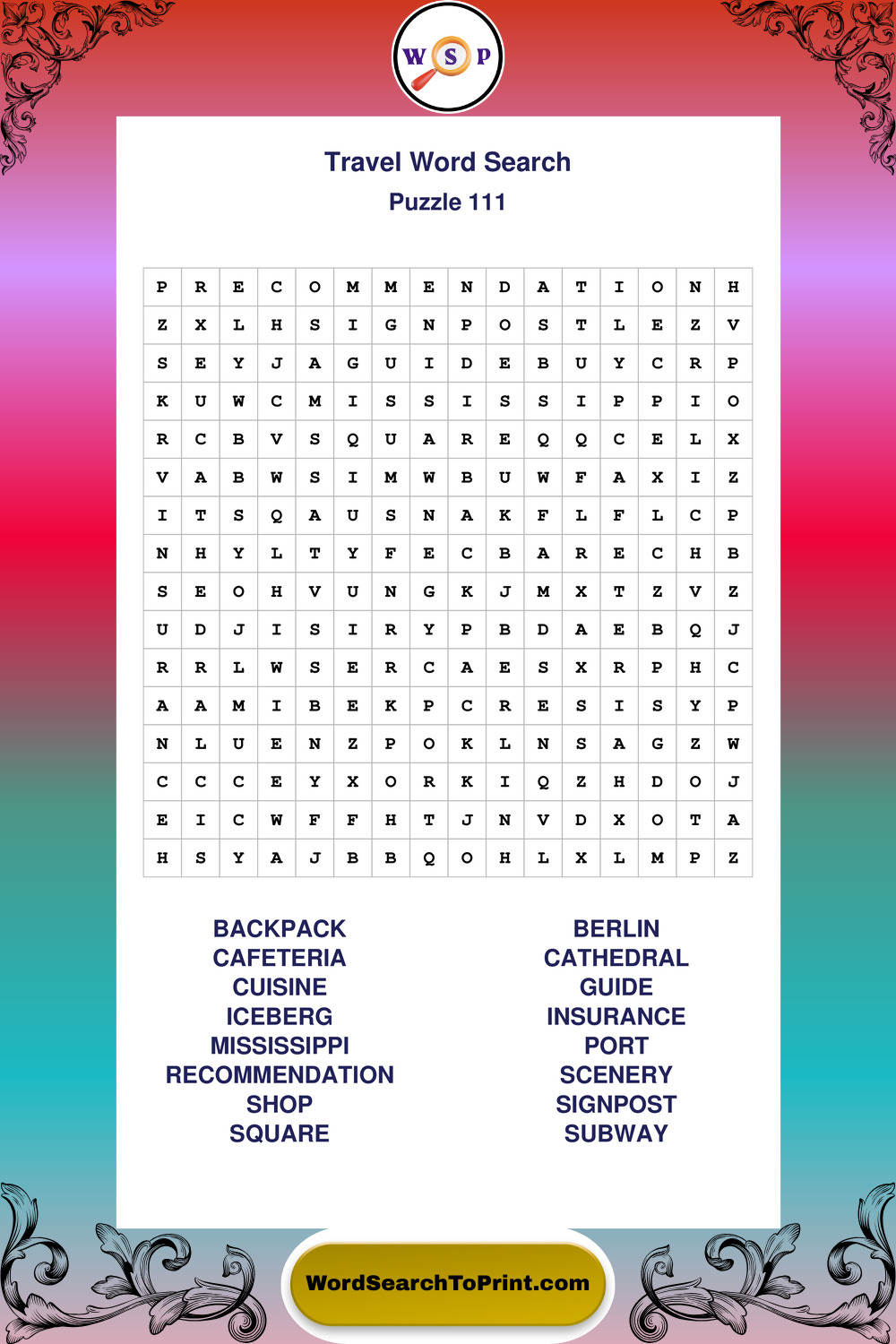 Printable Travel Wordsearch Puzzles