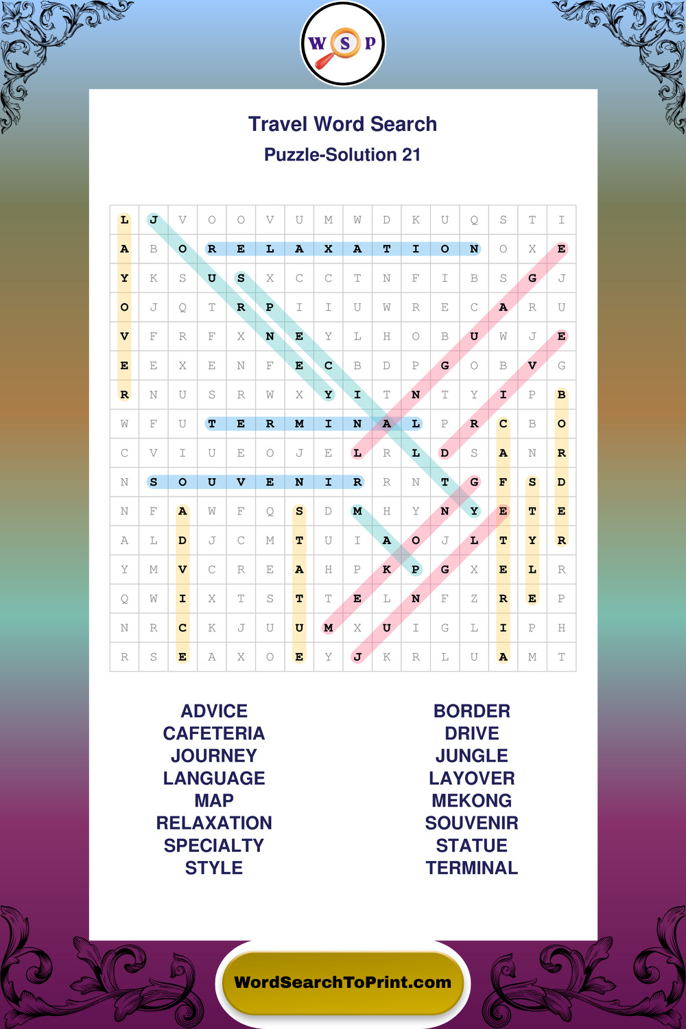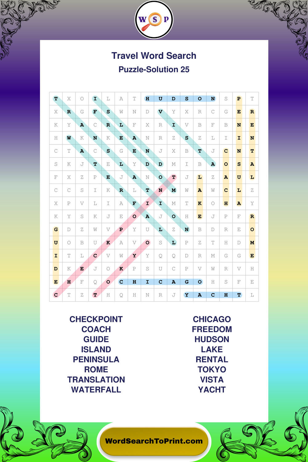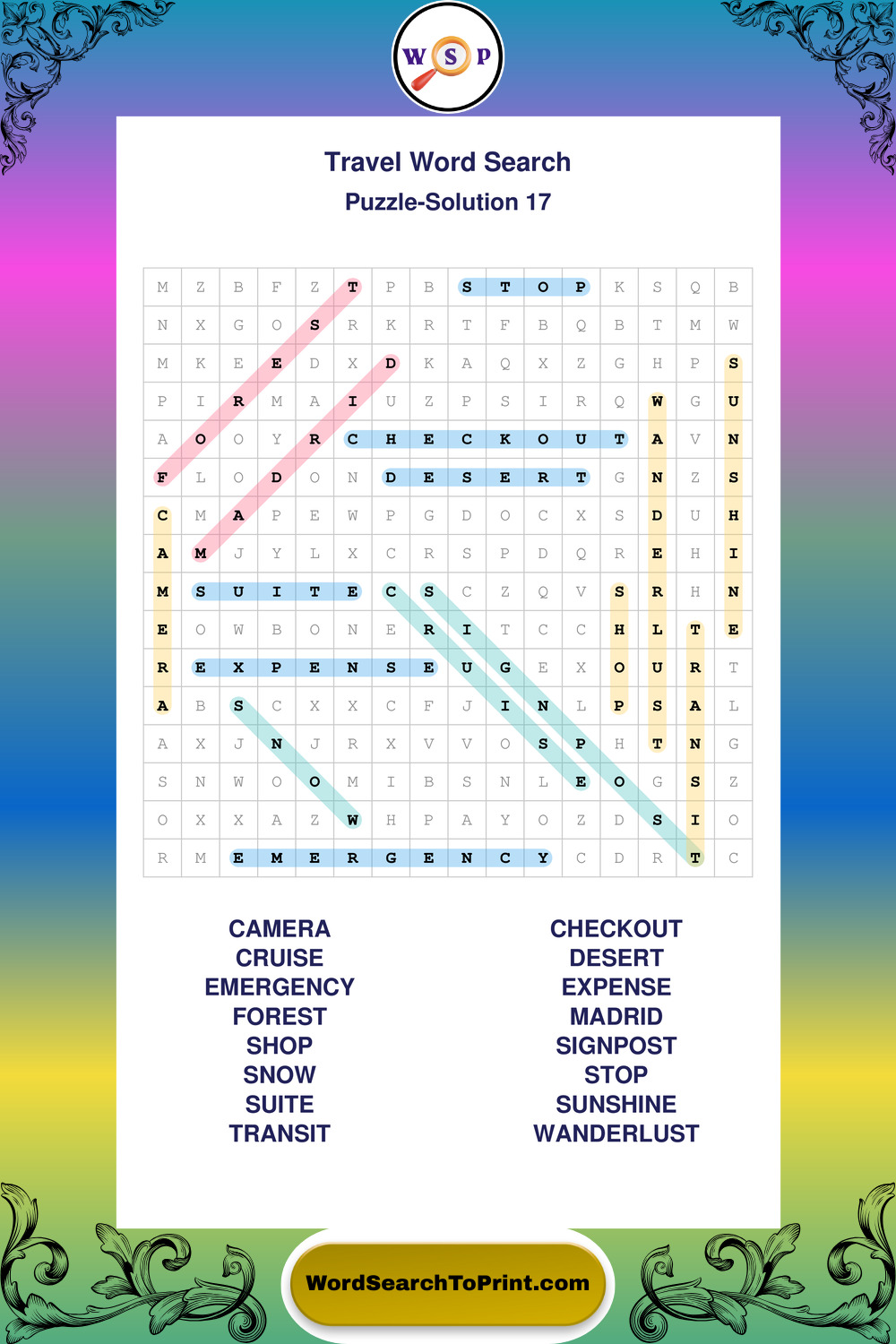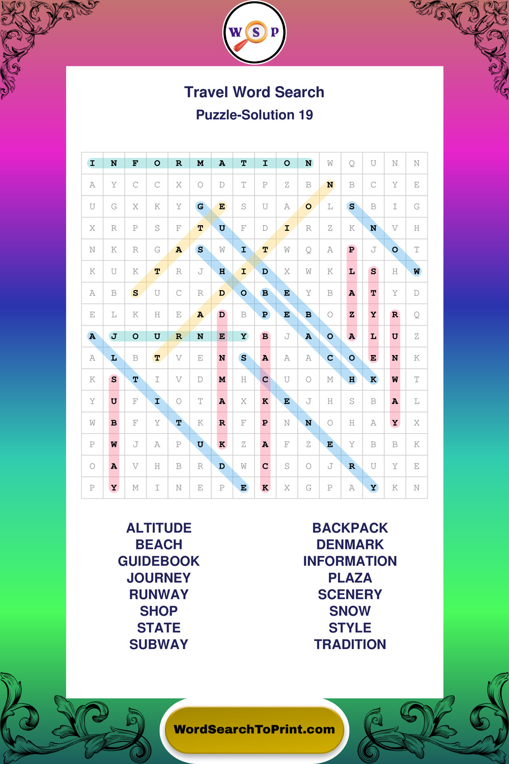 Enjoy these free large print Travel wordsearches designed for easy reading and relaxed puzzle solving. Perfect for teens, adults, and seniors.