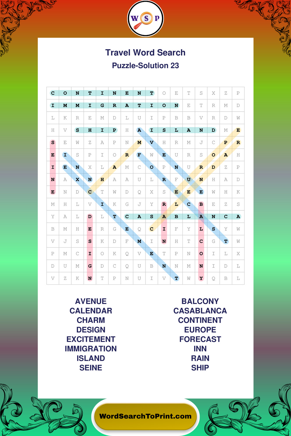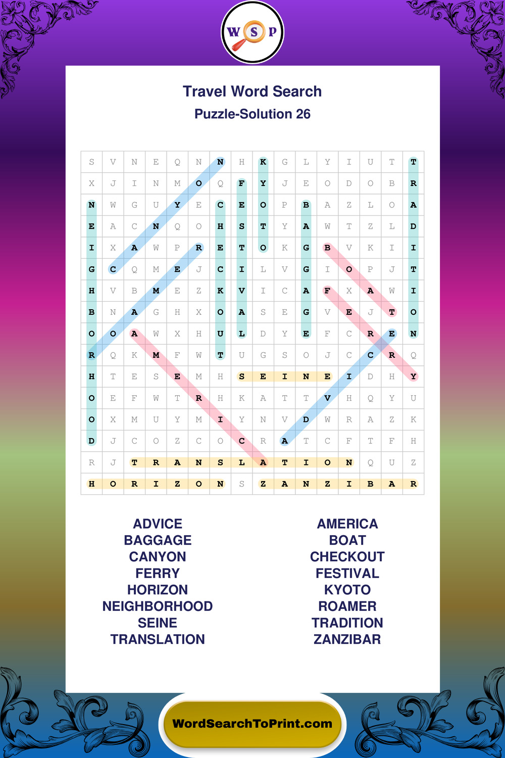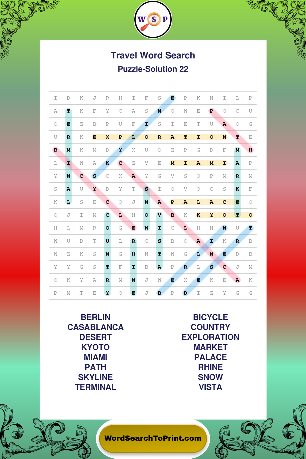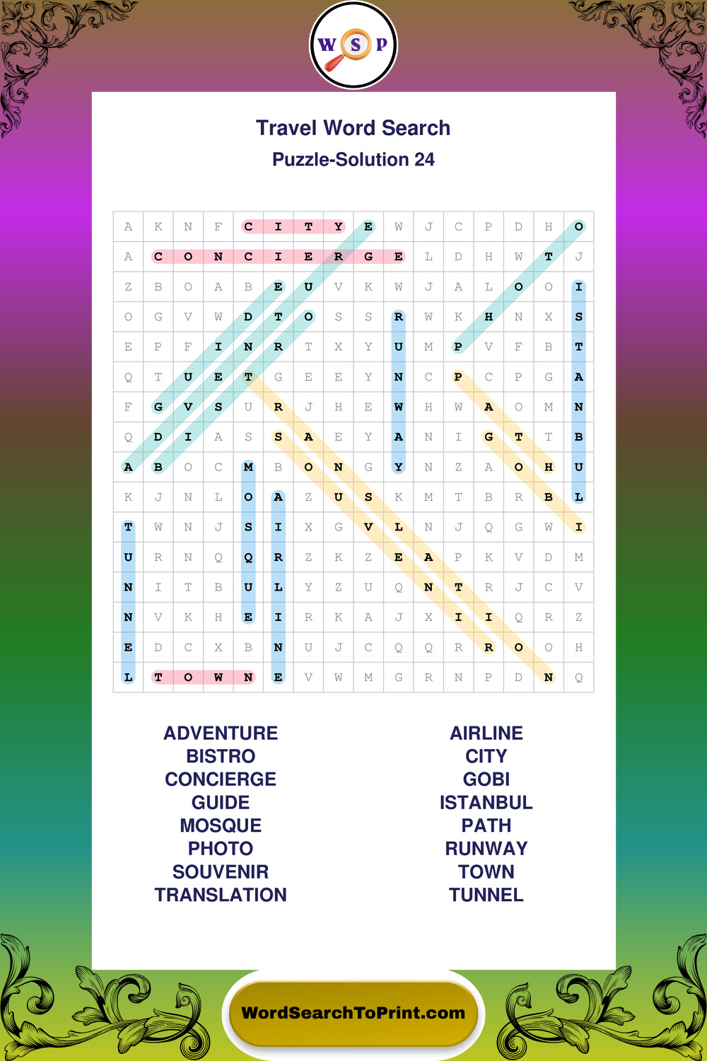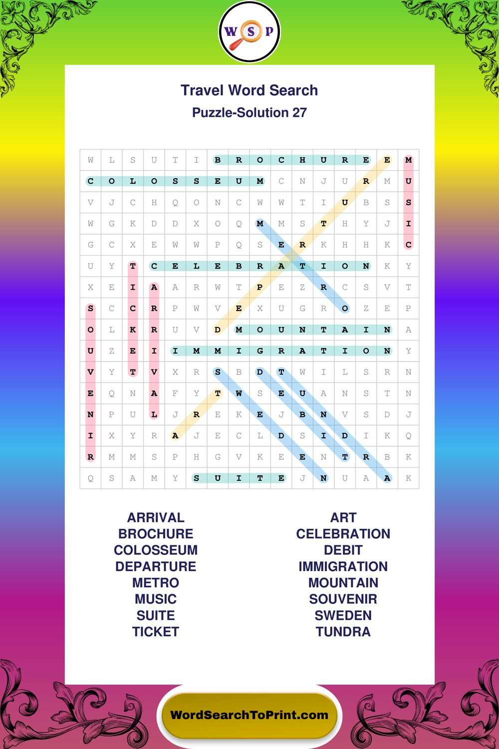 Enjoy these free large print Travel wordsearches designed for easy reading and relaxed puzzle solving. Perfect for teens, adults, and seniors.