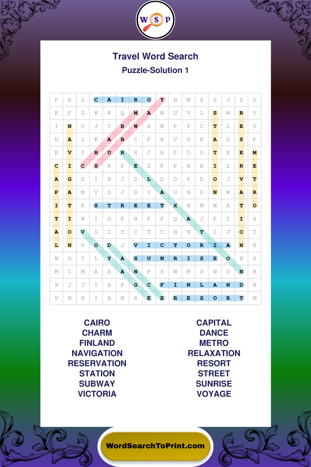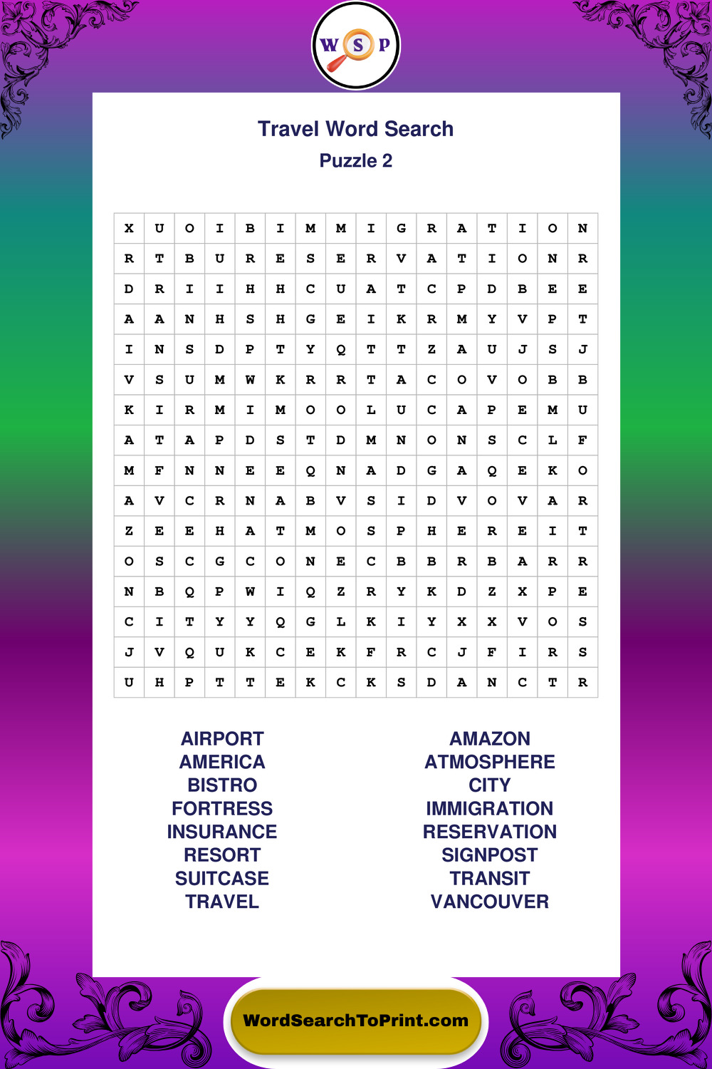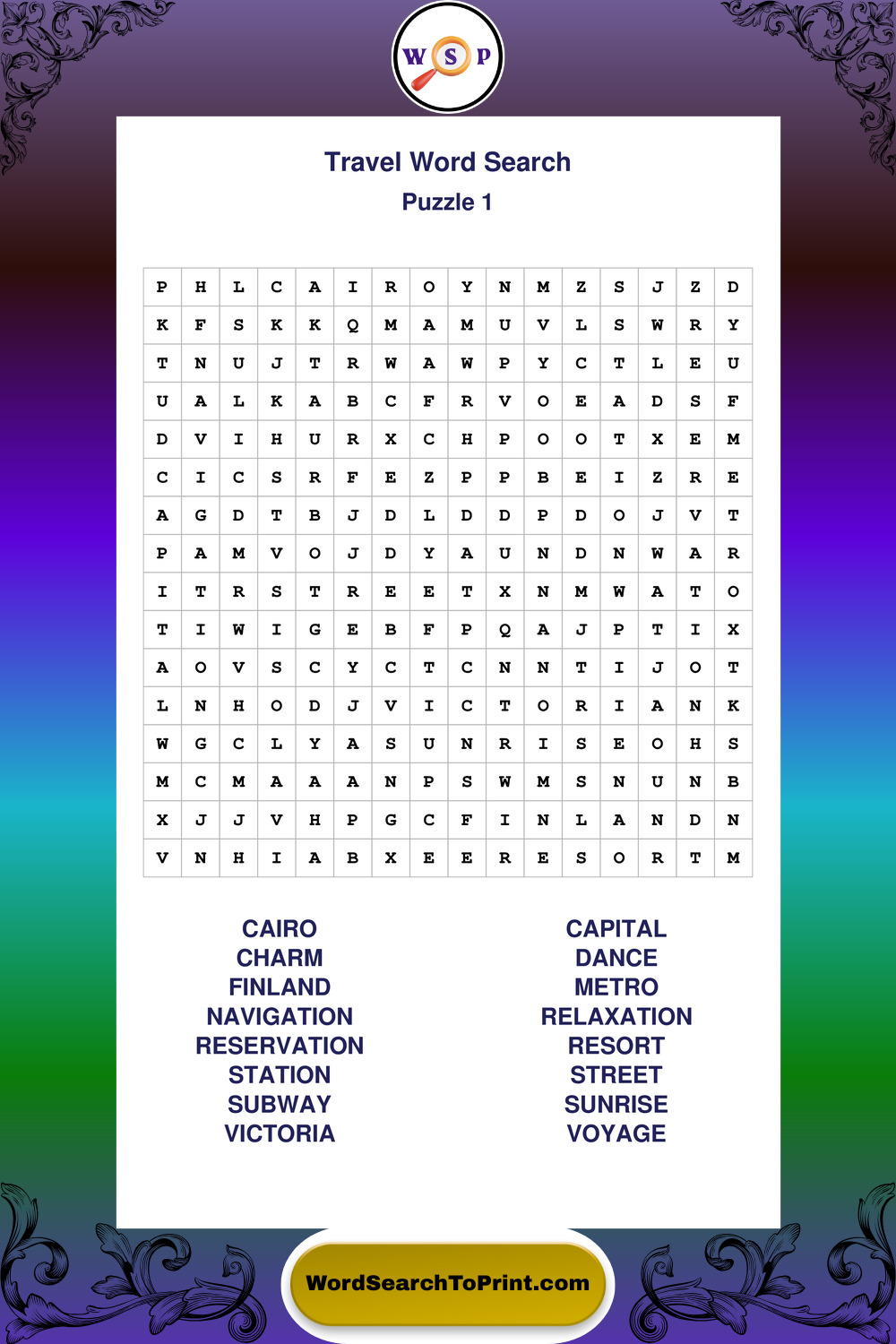 Printable Travel Wordsearch Puzzles