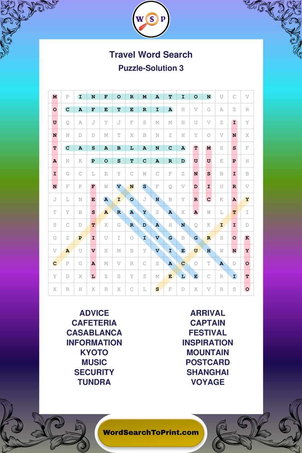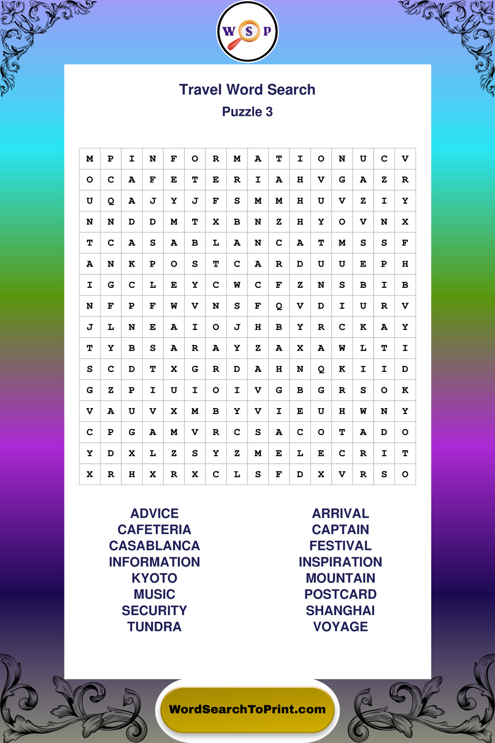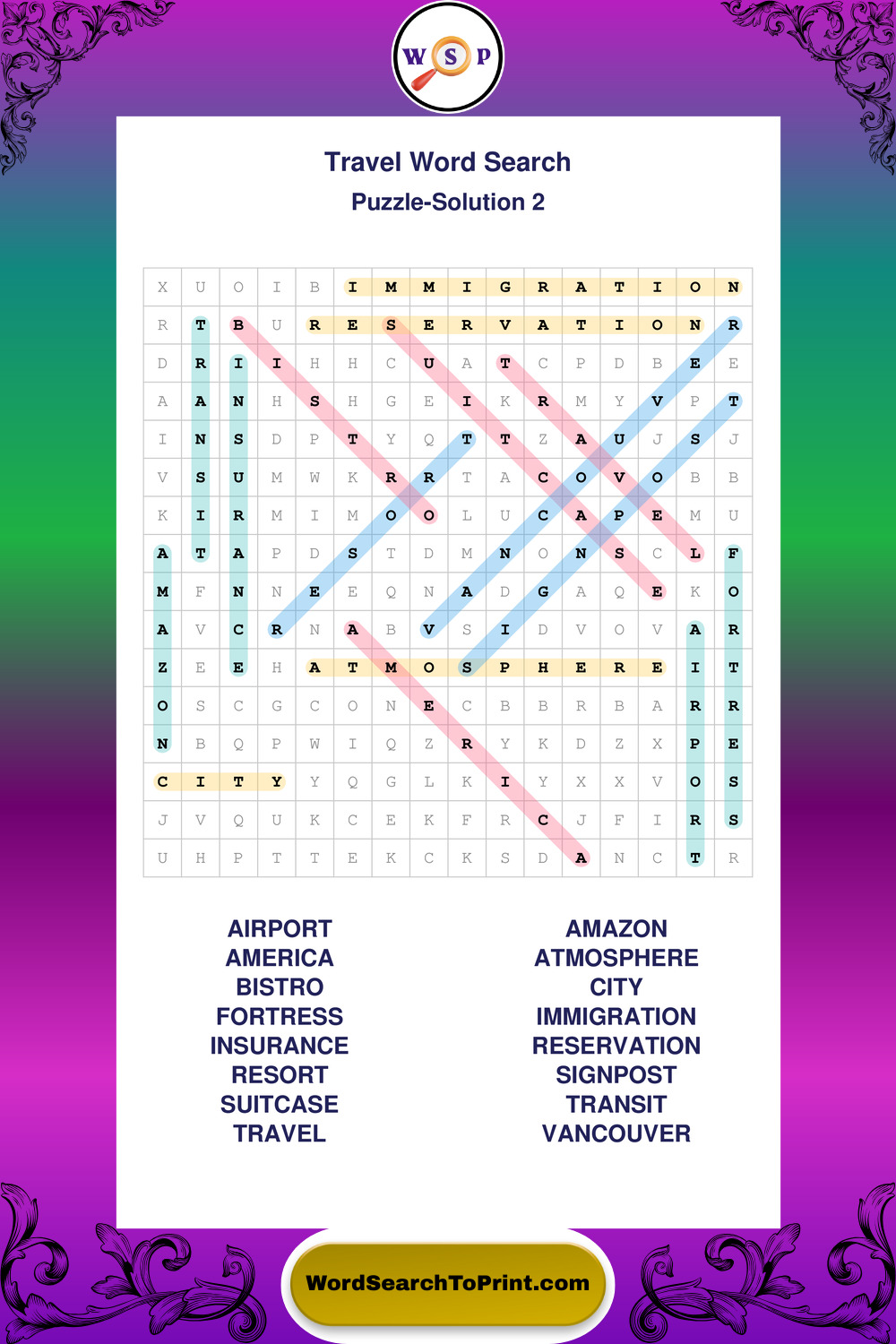 Printable Travel Wordsearch Puzzles