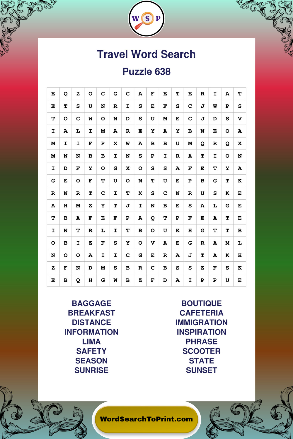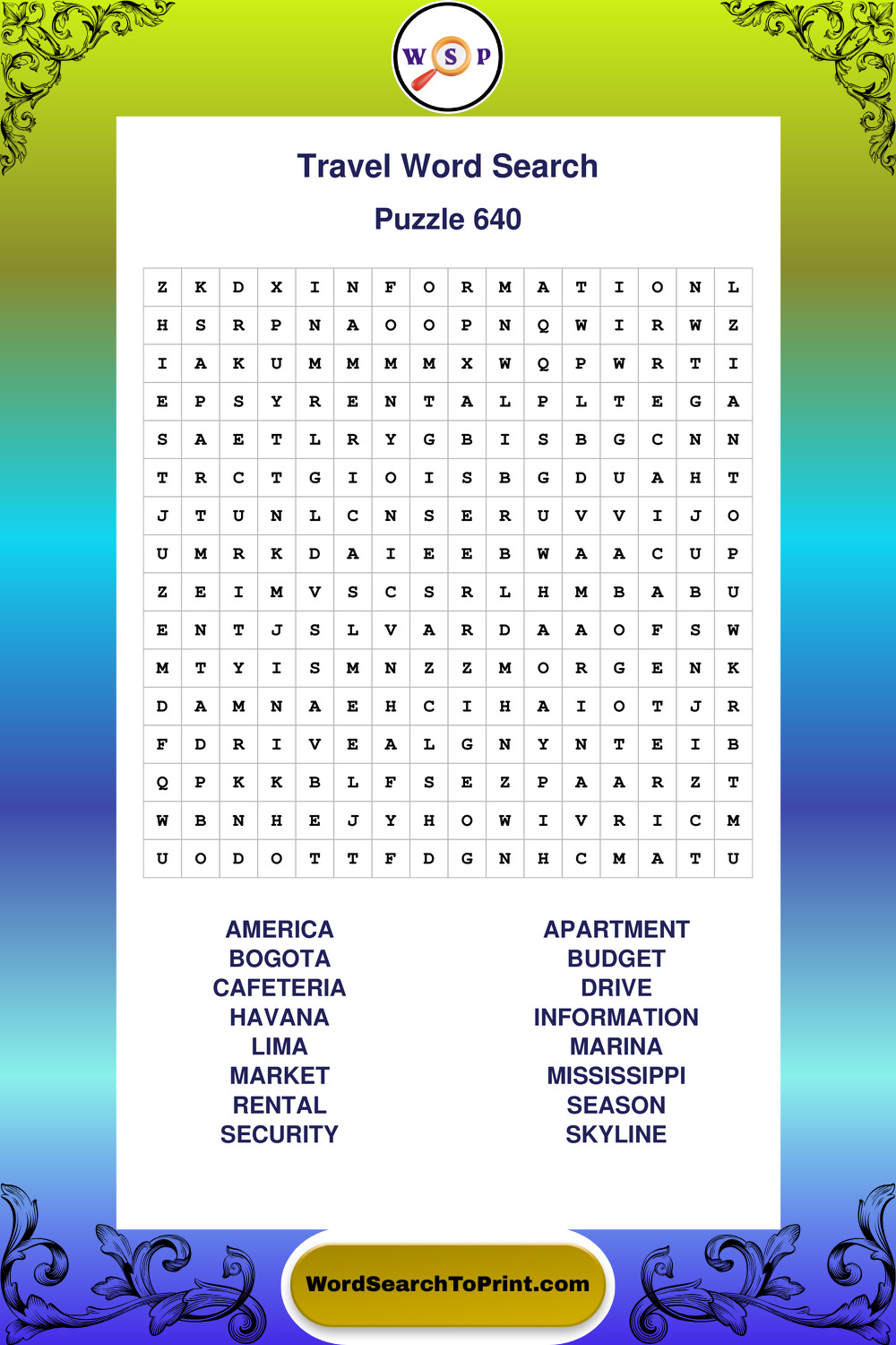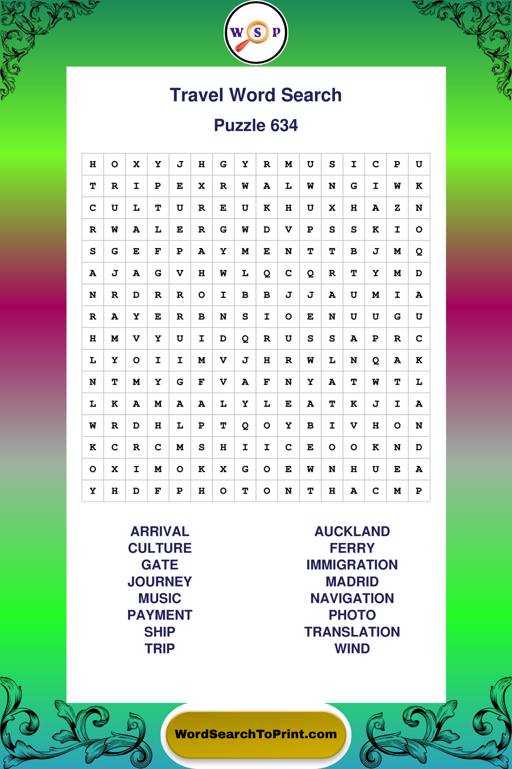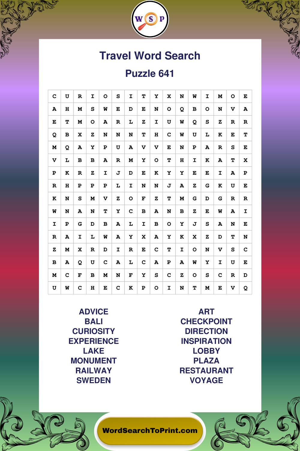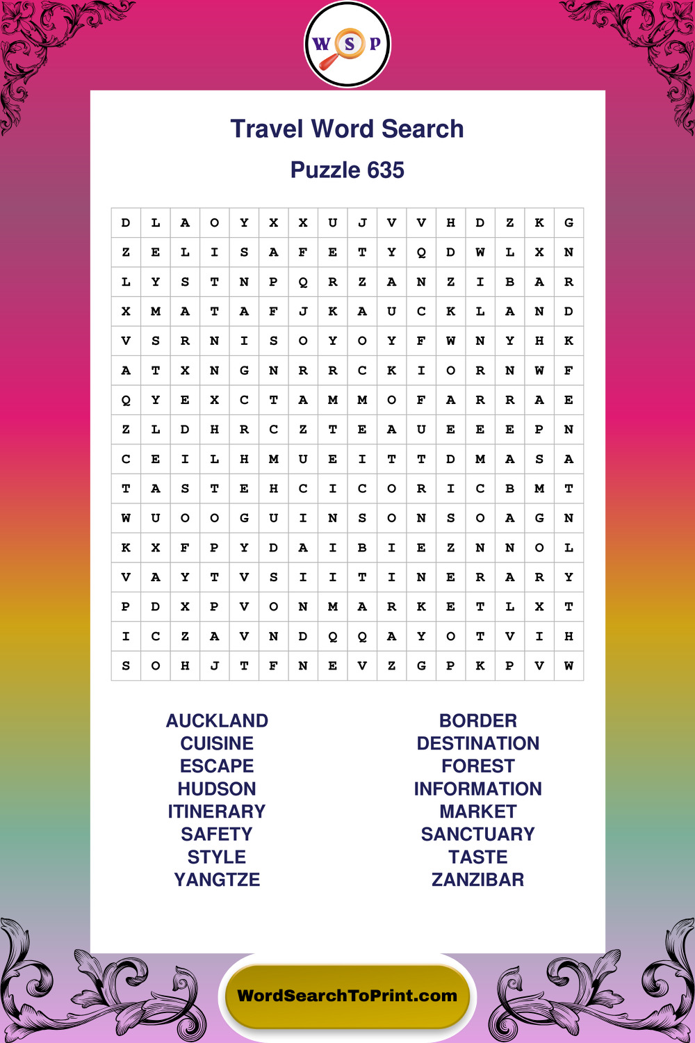 Enjoy these free large print Travel wordsearches designed for easy reading and relaxed puzzle solving. Perfect for teens, adults, and seniors.