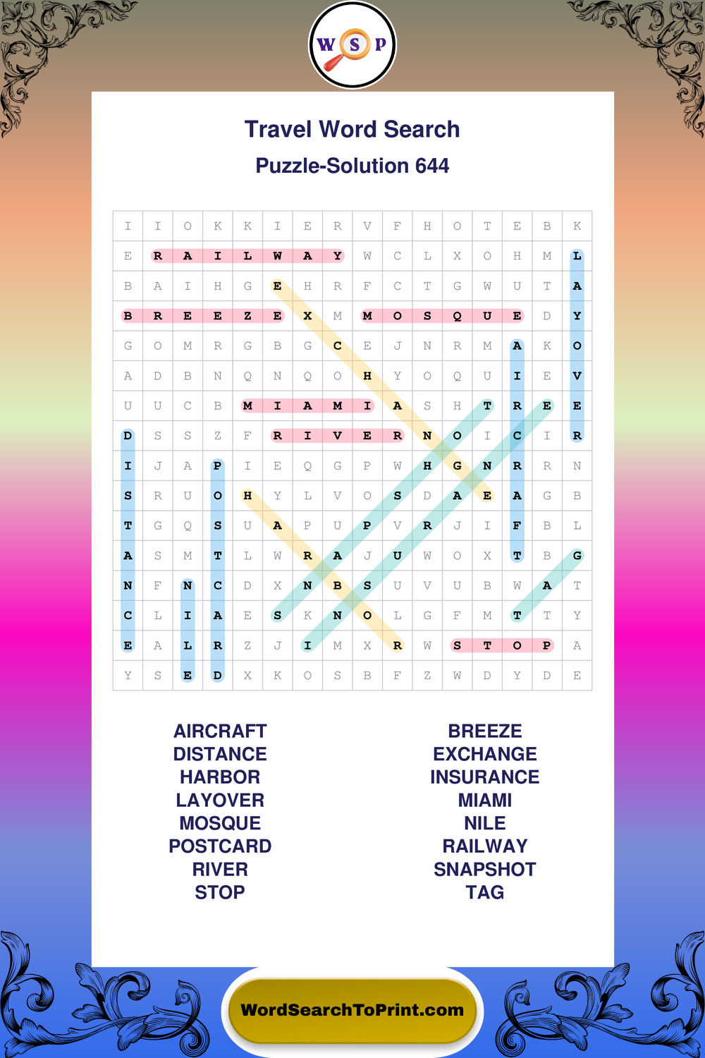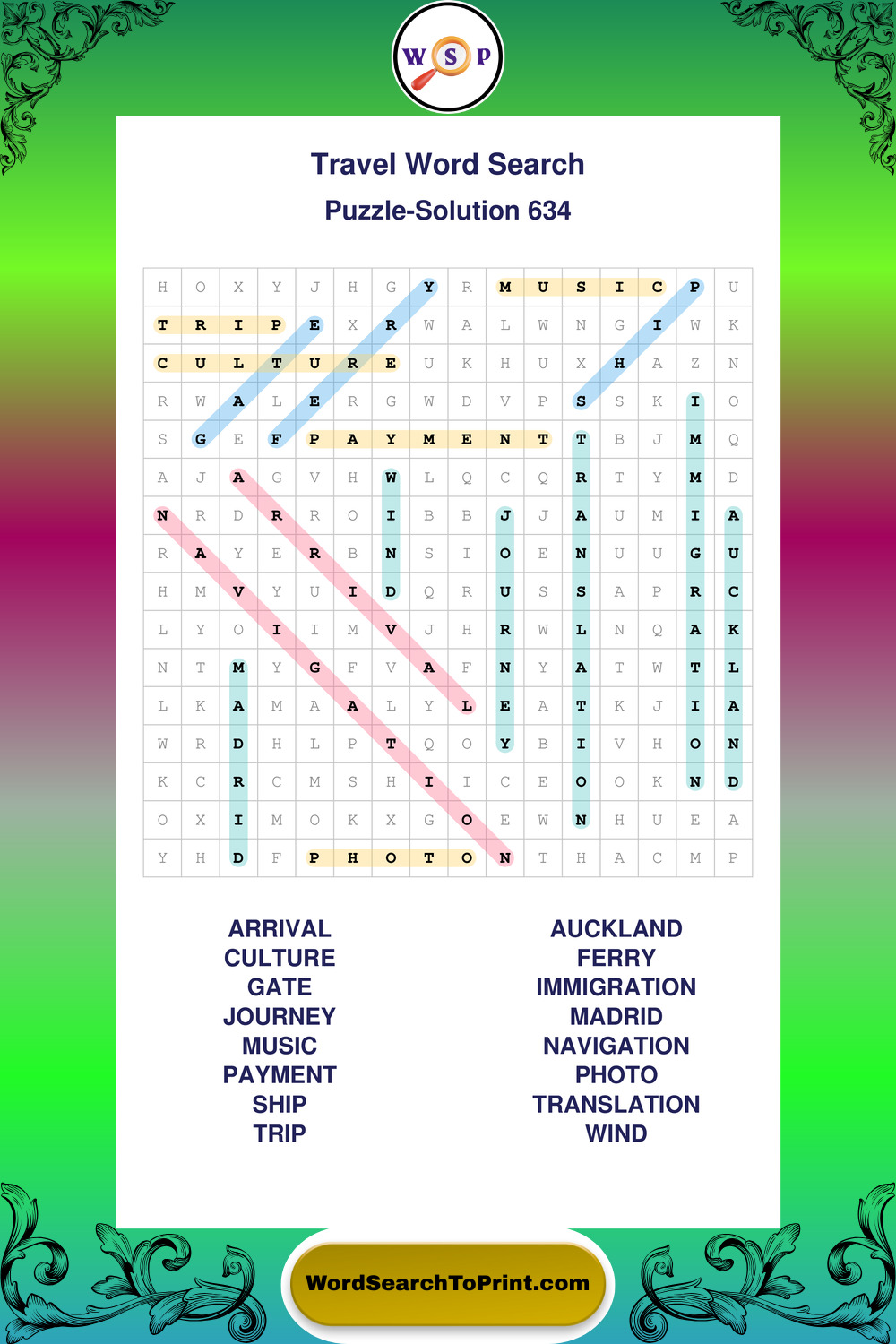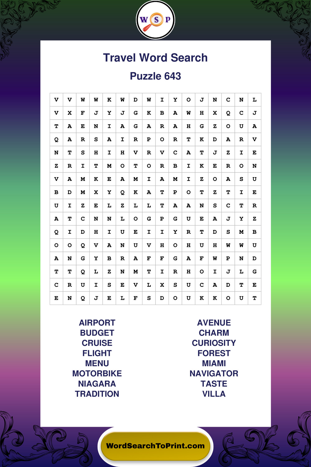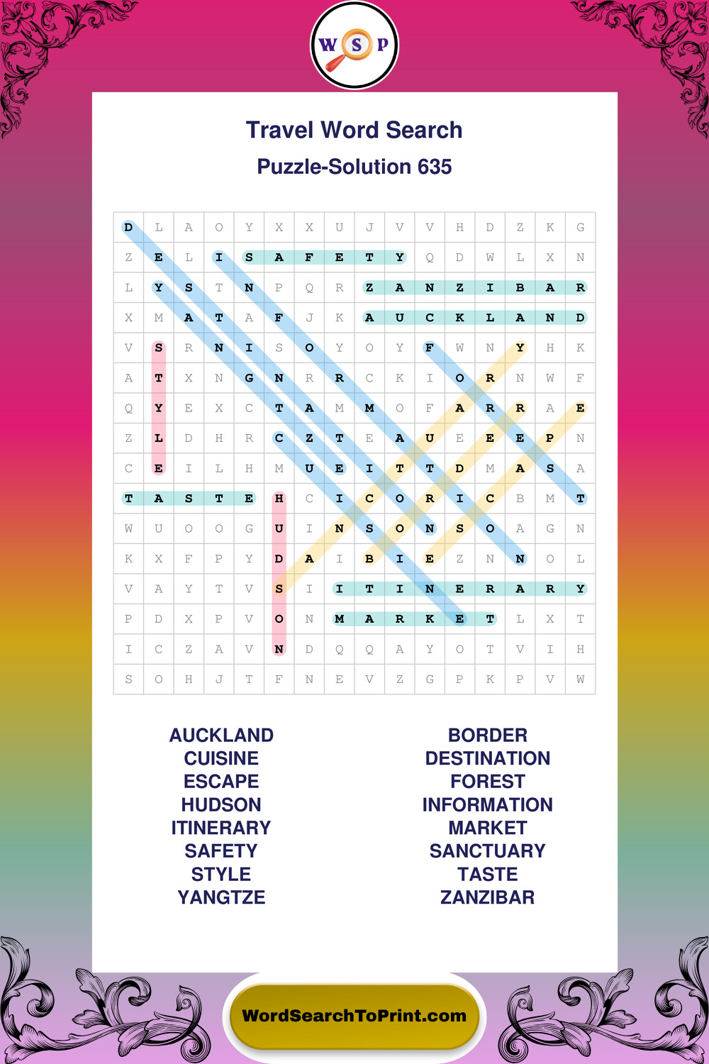 Enjoy these free large print Travel wordsearches designed for easy reading and relaxed puzzle solving. Perfect for teens, adults, and seniors.