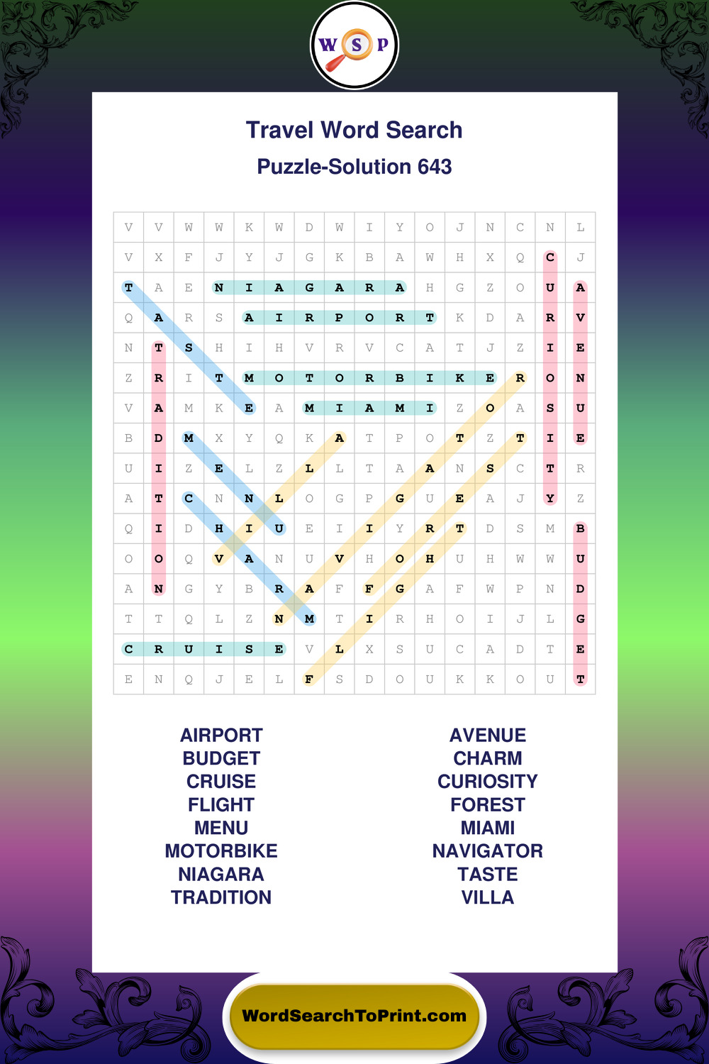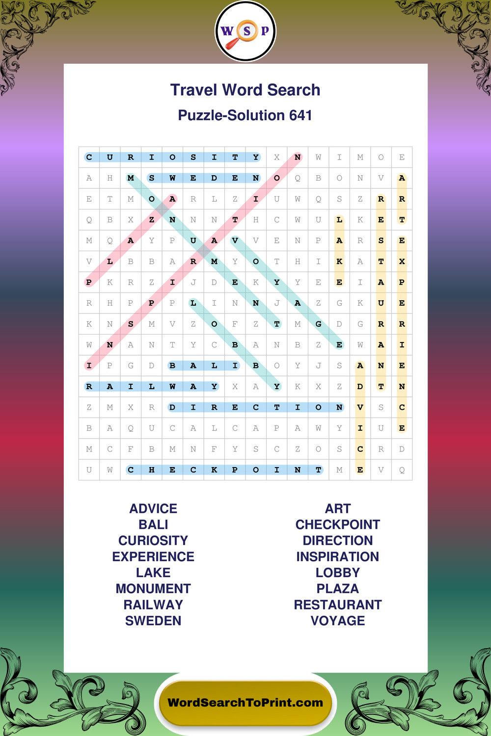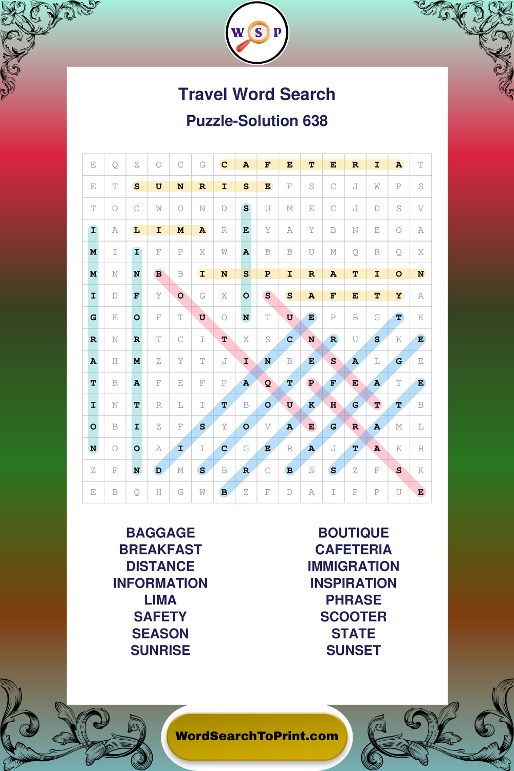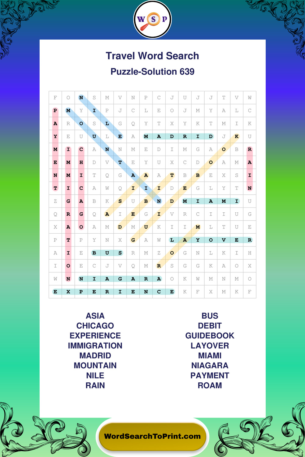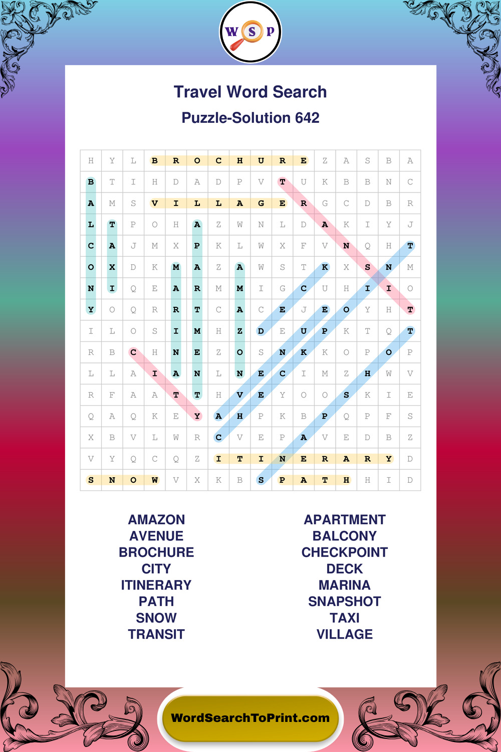 Enjoy these free large print Travel wordsearches designed for easy reading and relaxed puzzle solving. Perfect for teens, adults, and seniors.