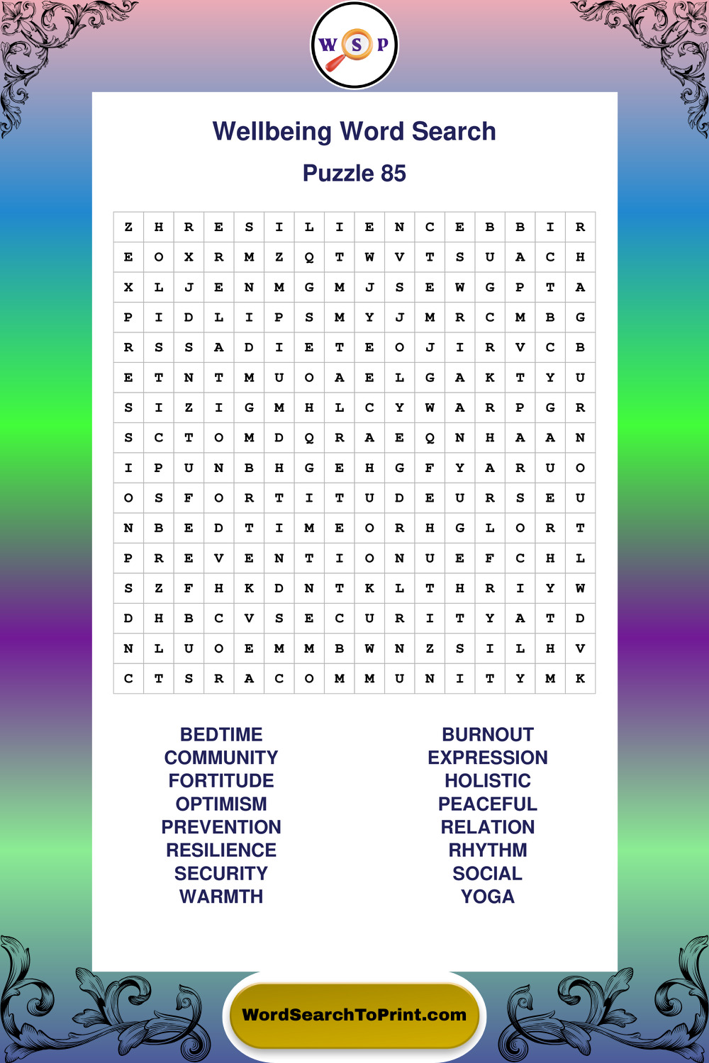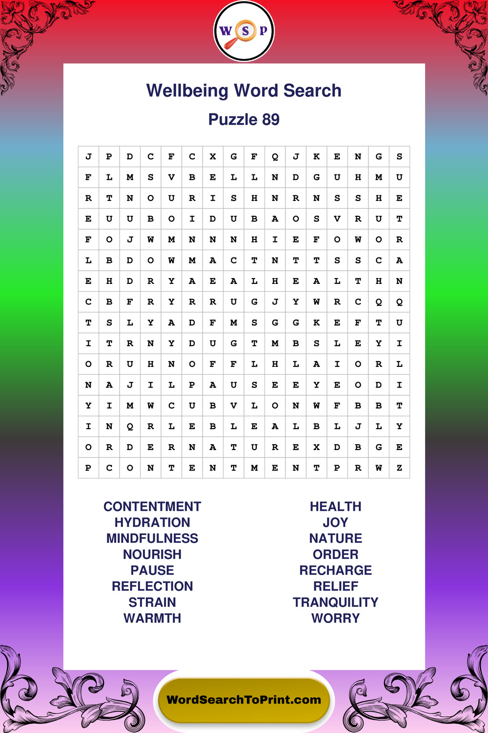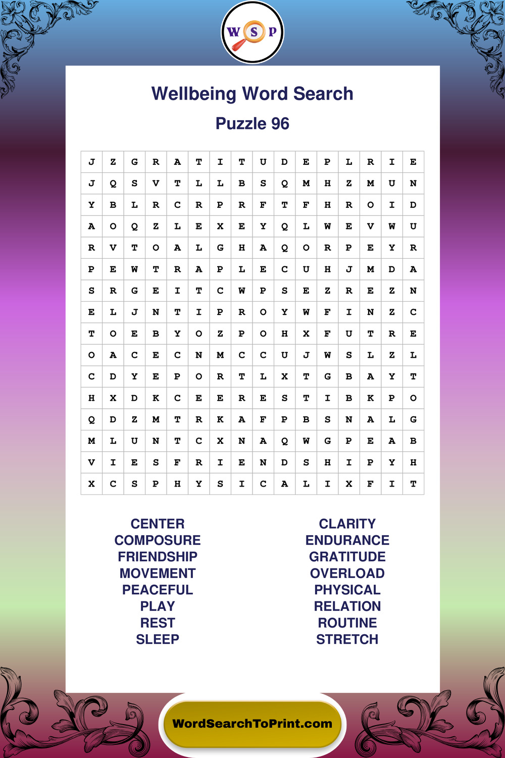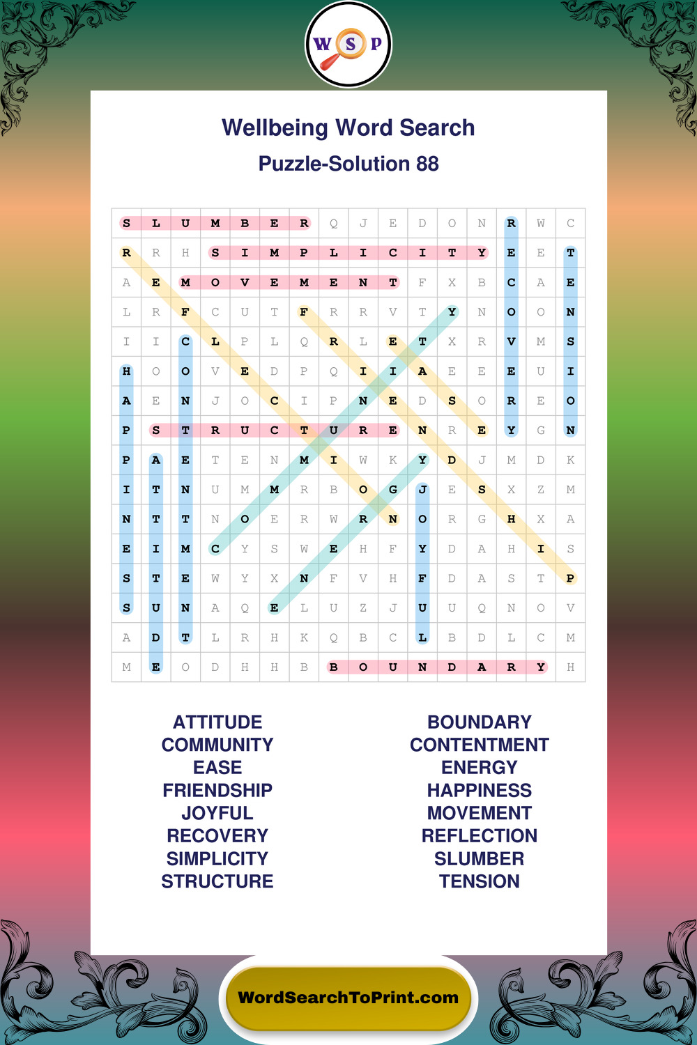 These puzzles highlight positive thinking, emotional awareness, mindfulness, and wellbeing concepts. They offer a structured and engaging way to explore this topic while strengthening concentration and vocabulary recognition. You may also enjoy our Peace word search puzzles and Emotion word search puzzles.