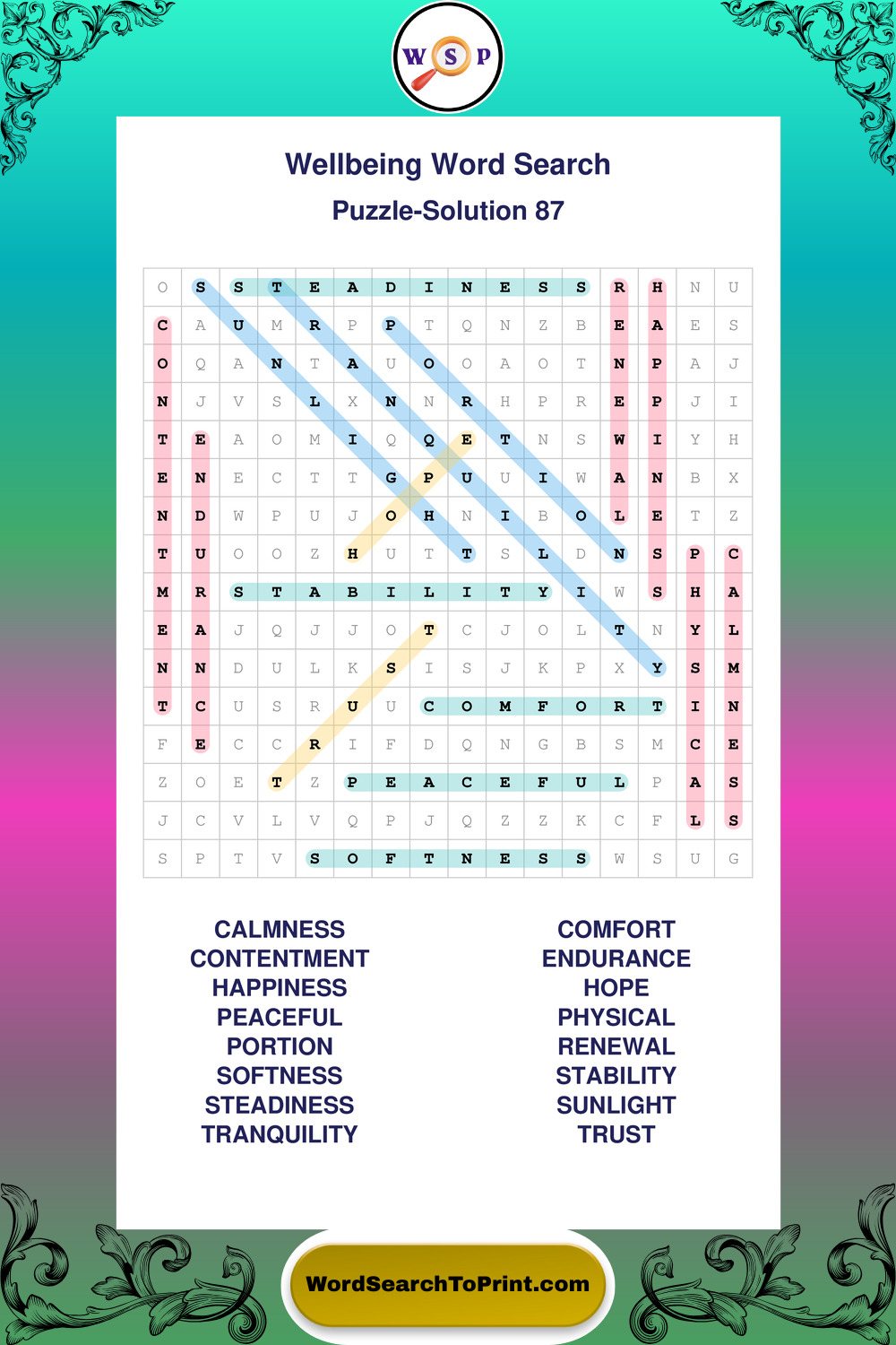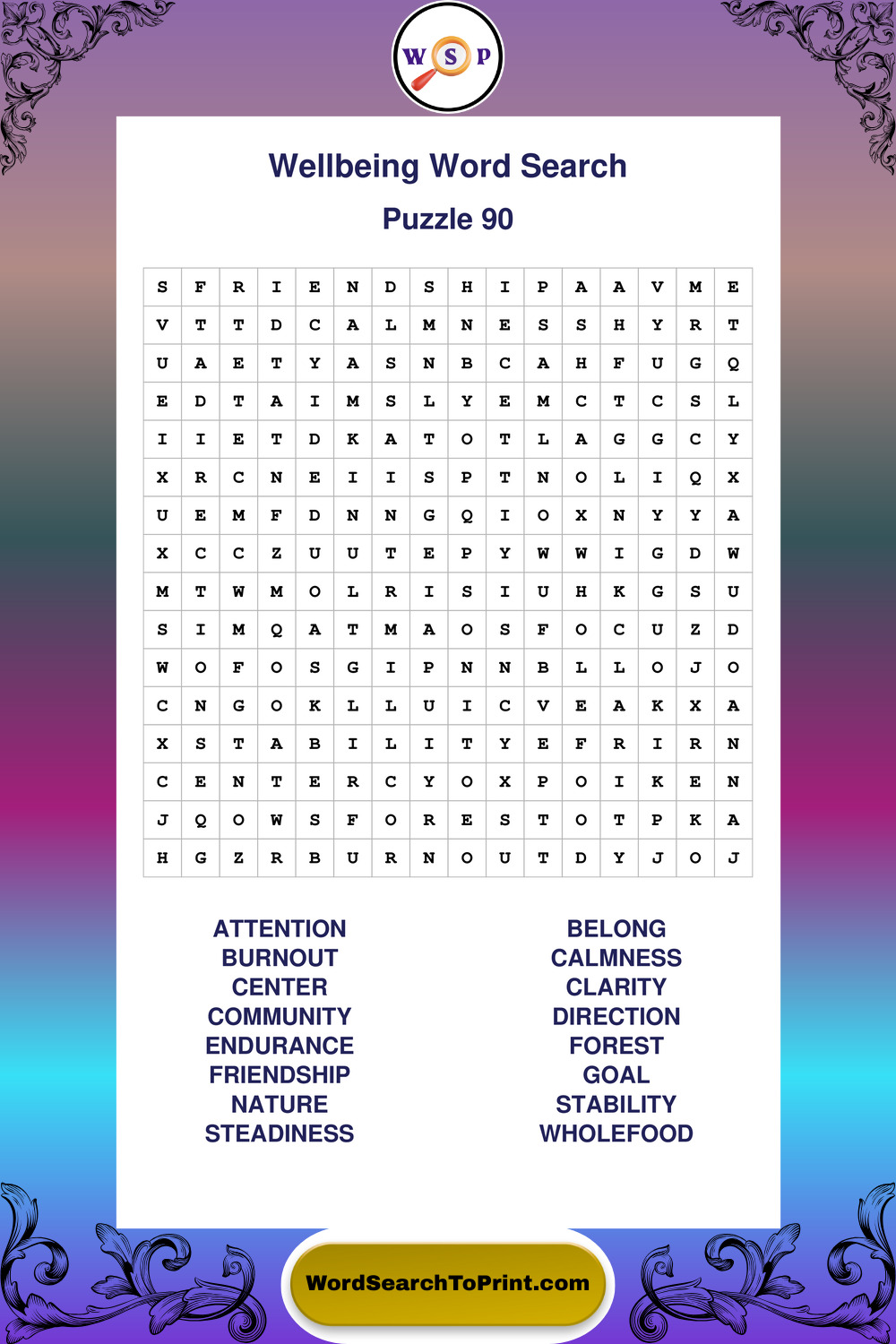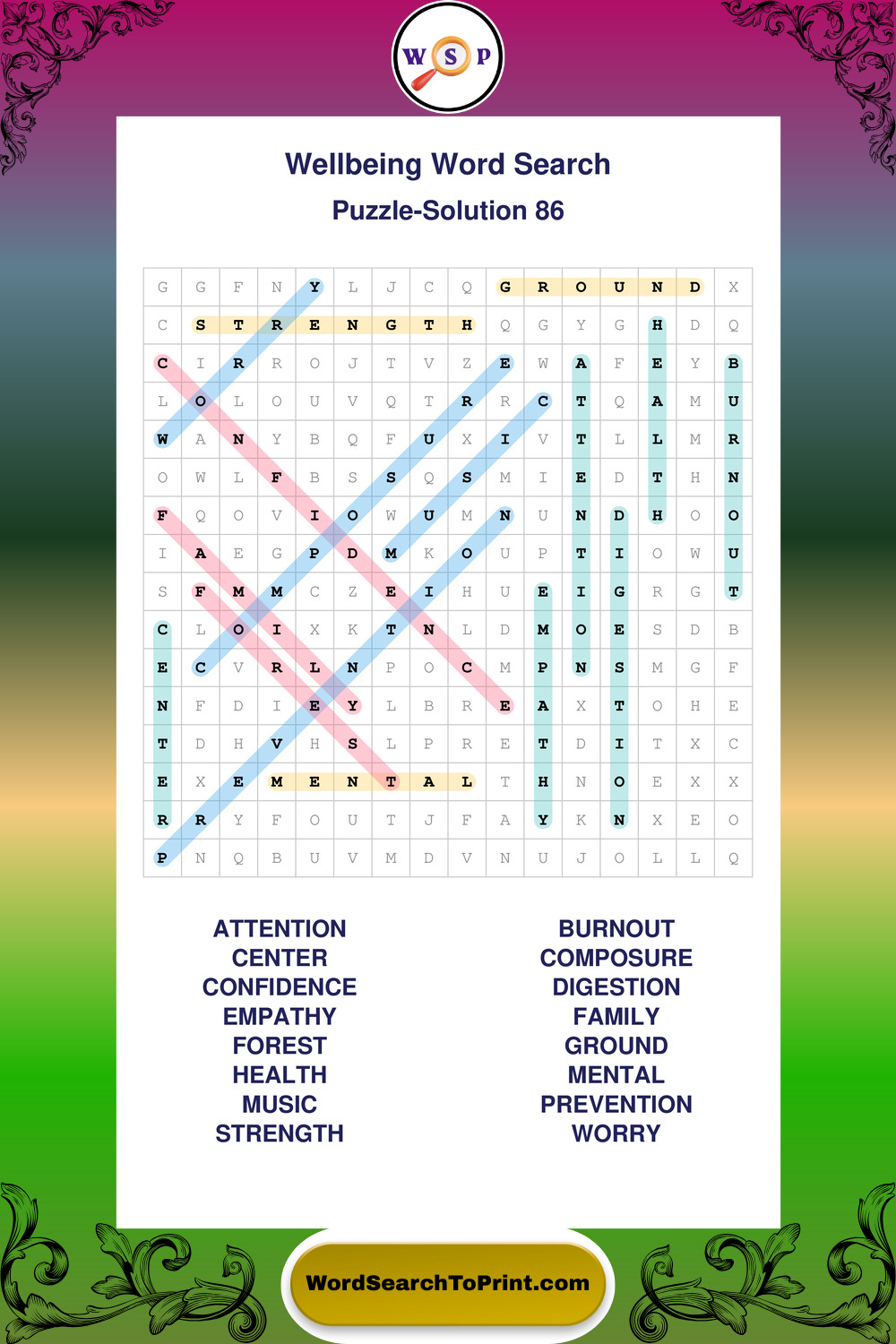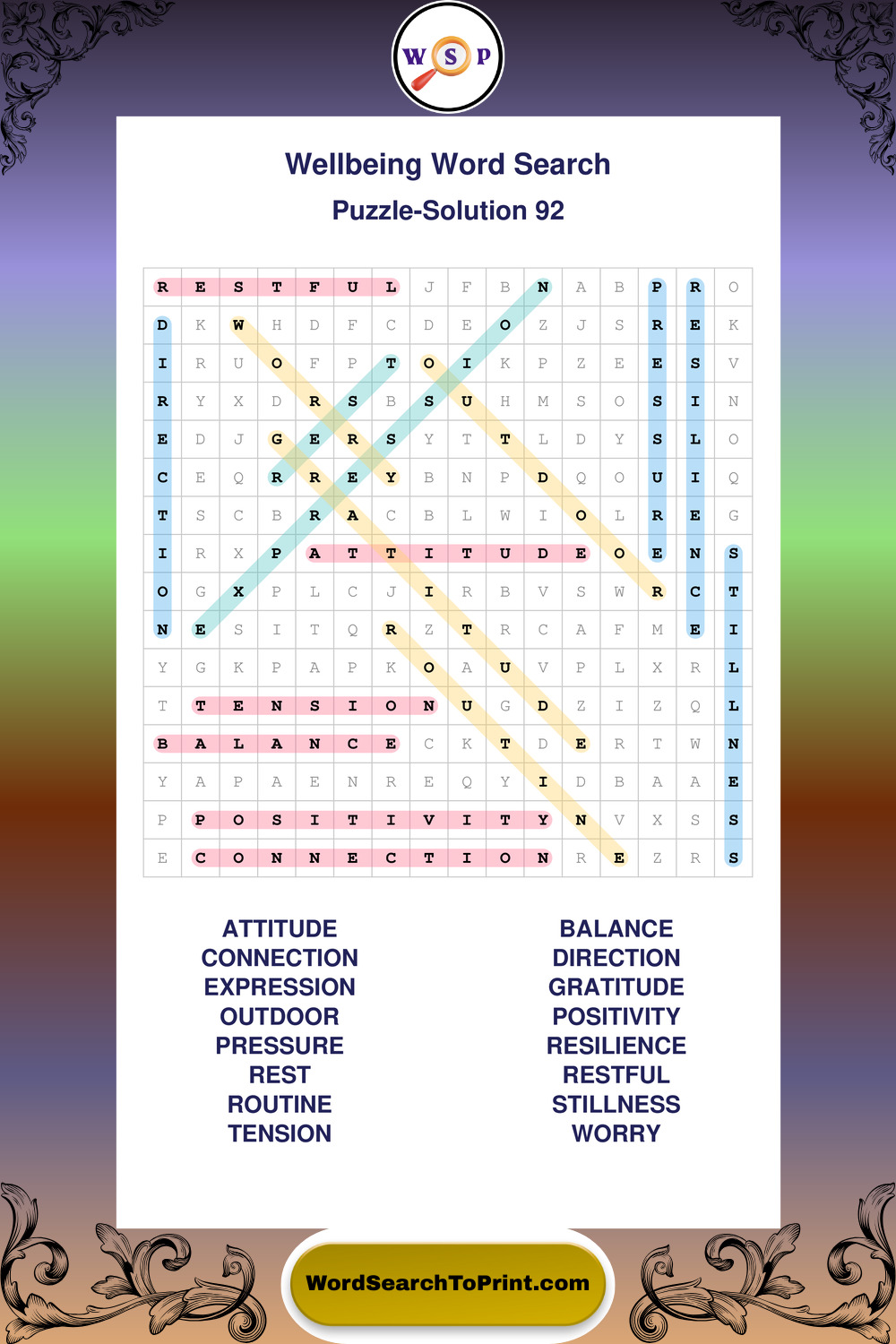 These puzzles highlight positive thinking, emotional awareness, mindfulness, and wellbeing concepts. They offer a structured and engaging way to explore this topic while strengthening concentration and vocabulary recognition. You may also enjoy our Peace word search puzzles and Emotion word search puzzles.