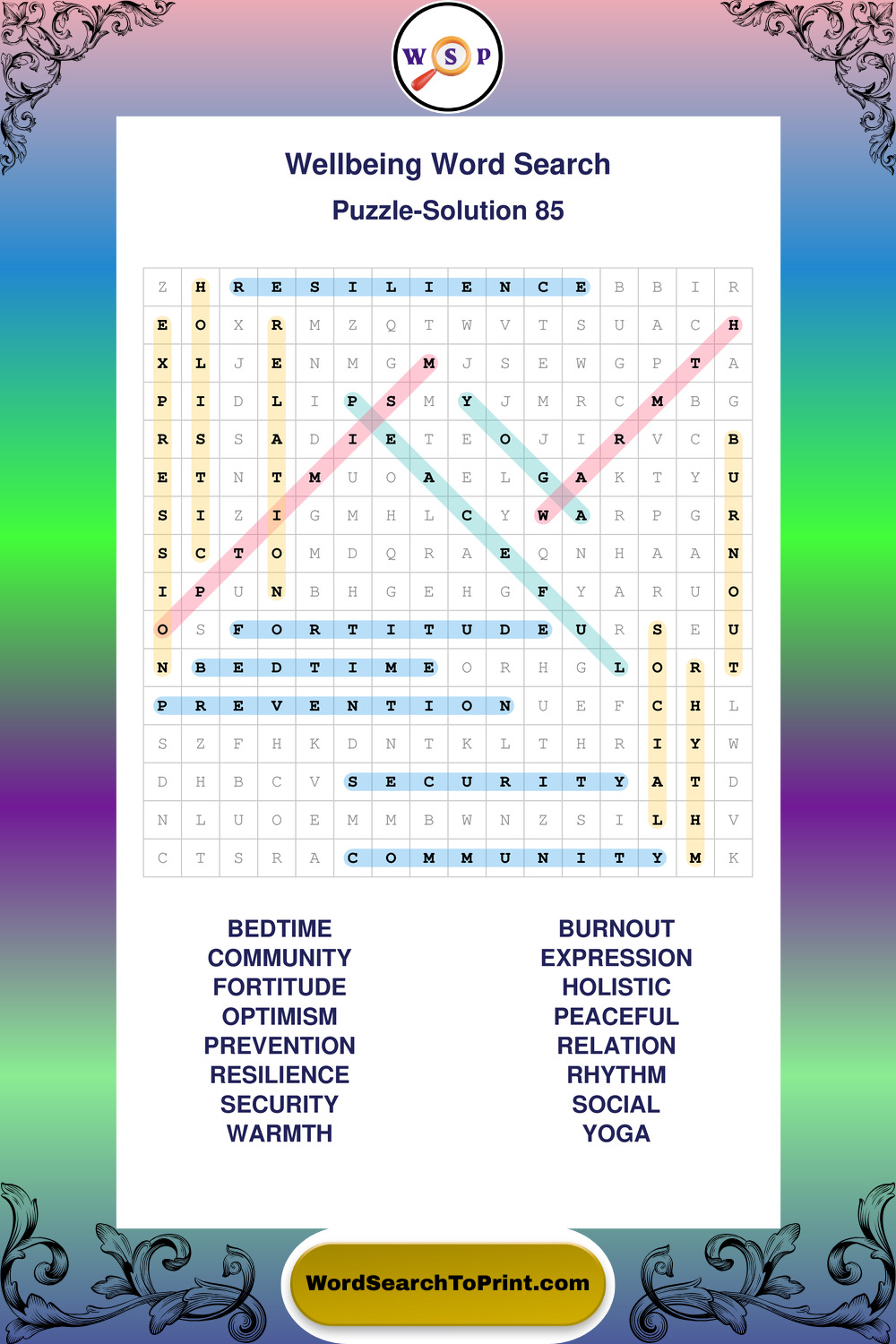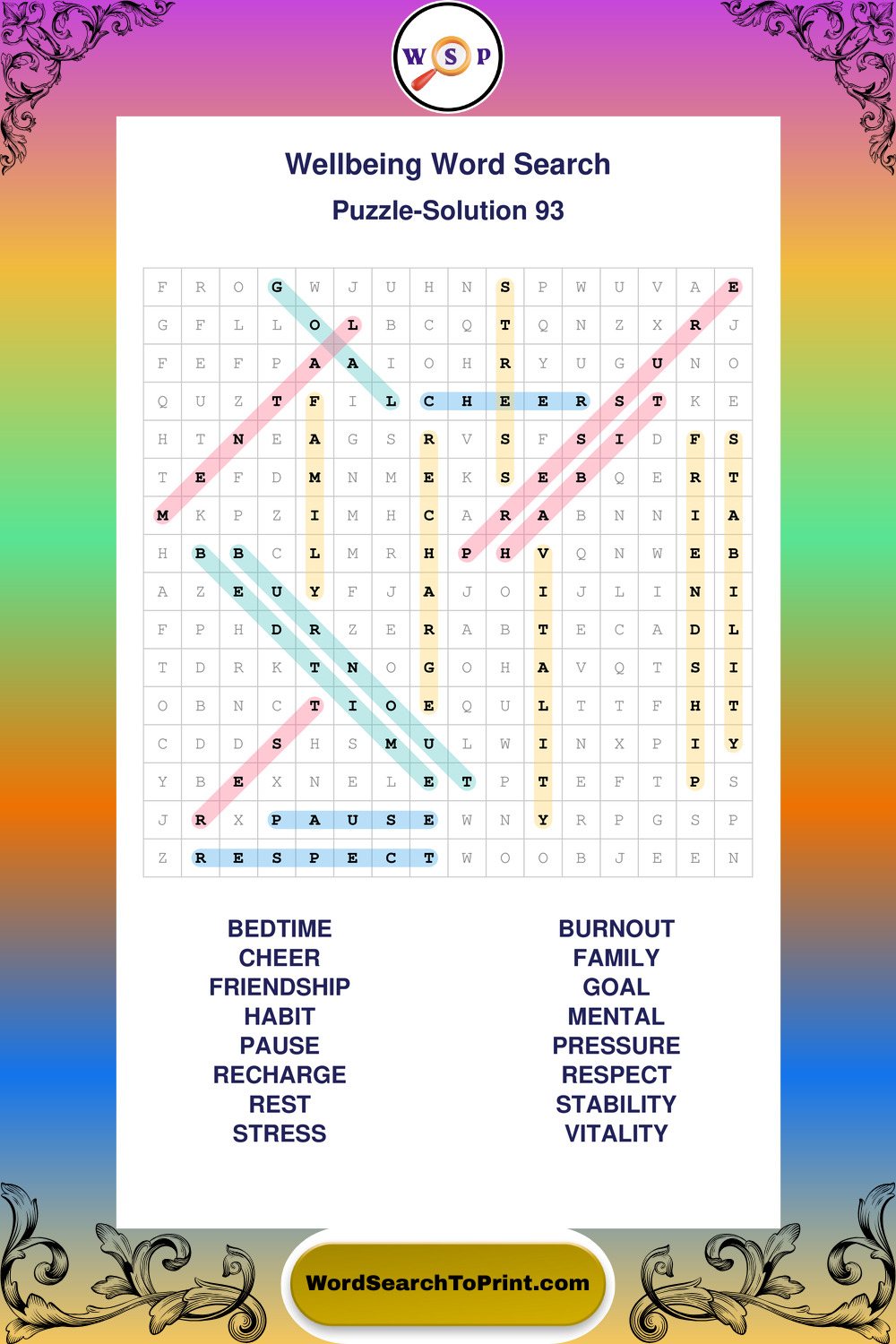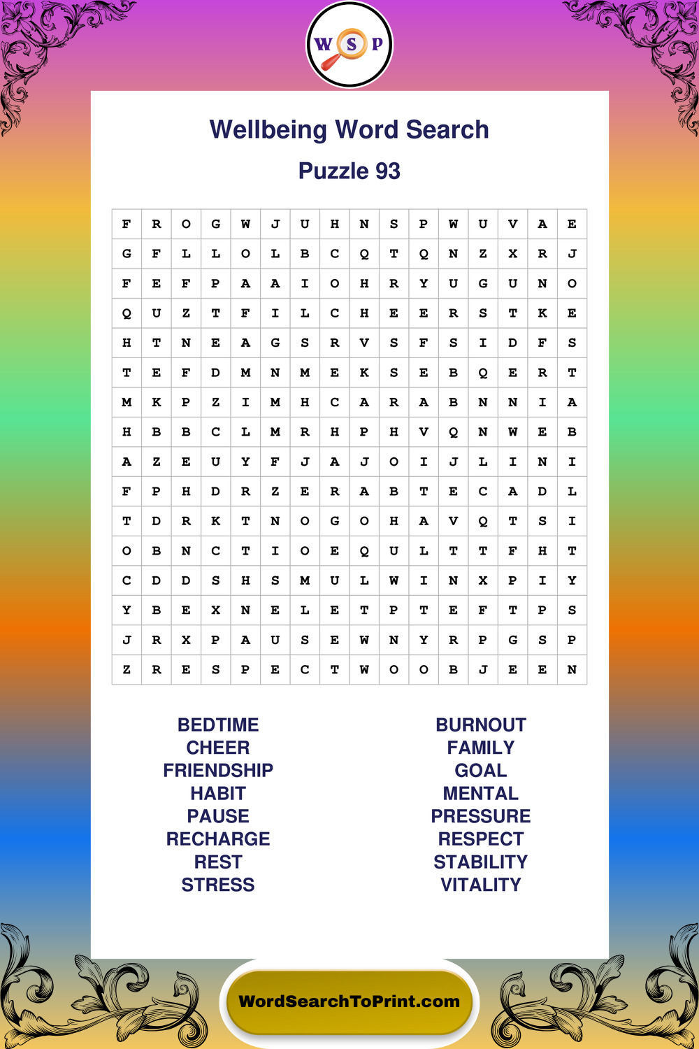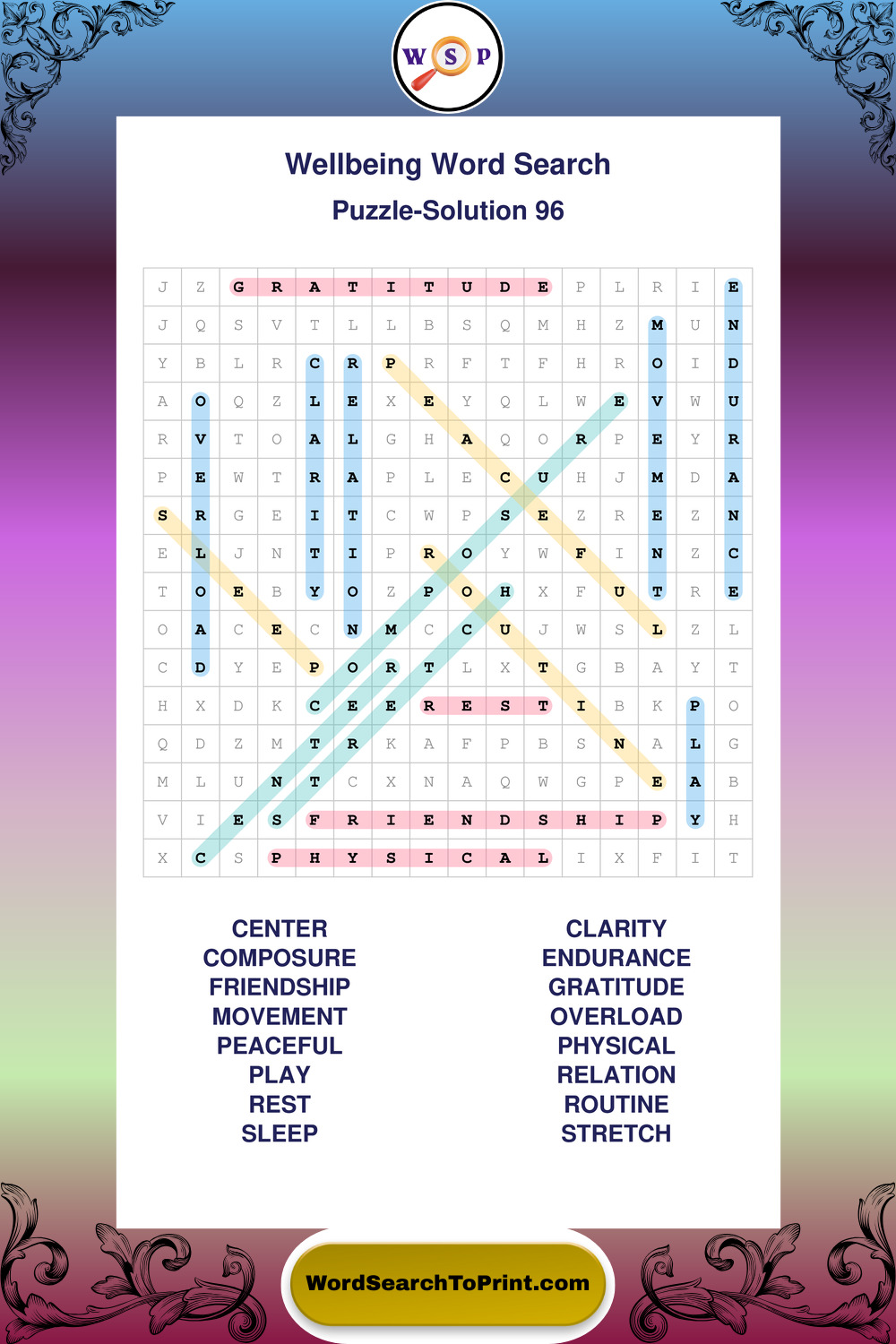 These puzzles highlight positive thinking, emotional awareness, mindfulness, and wellbeing concepts. They offer a structured and engaging way to explore this topic while strengthening concentration and vocabulary recognition. You may also enjoy our Peace word search puzzles and Emotion word search puzzles.