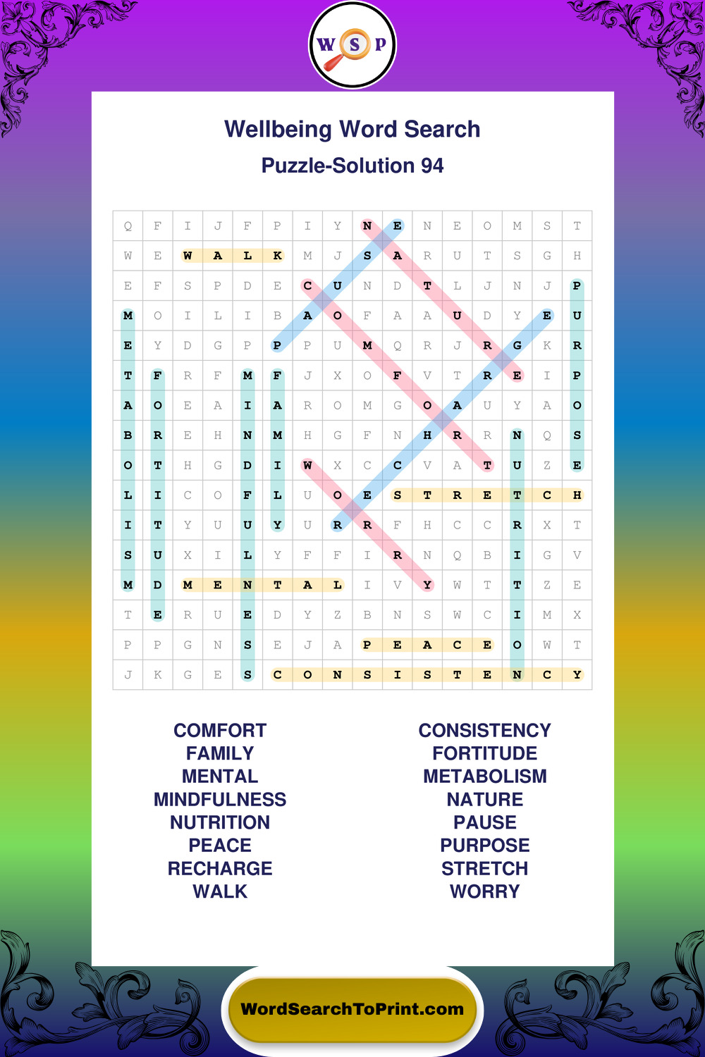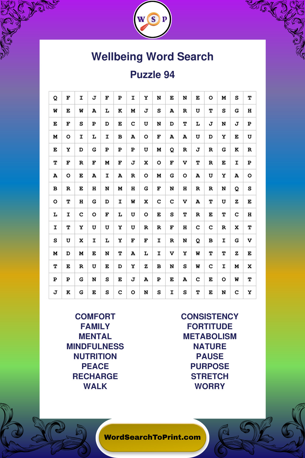 Printable Wellbeing Wordsearch Puzzles