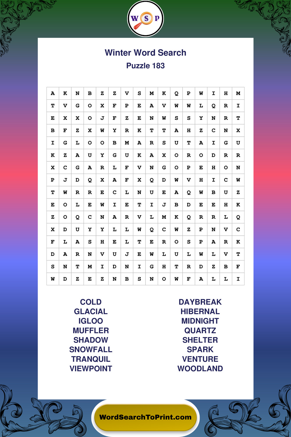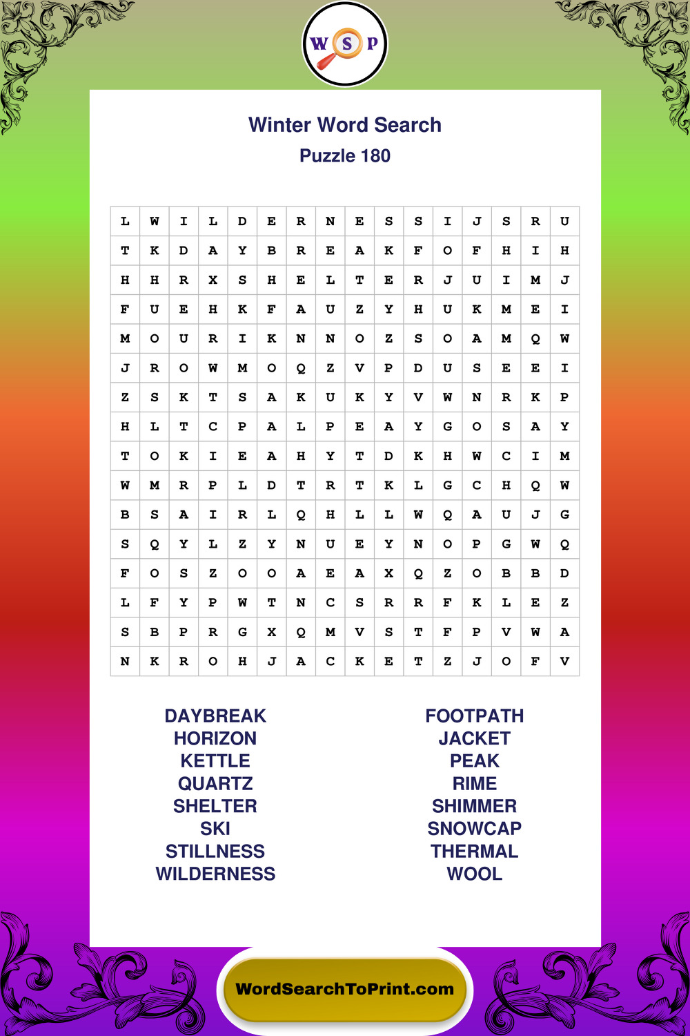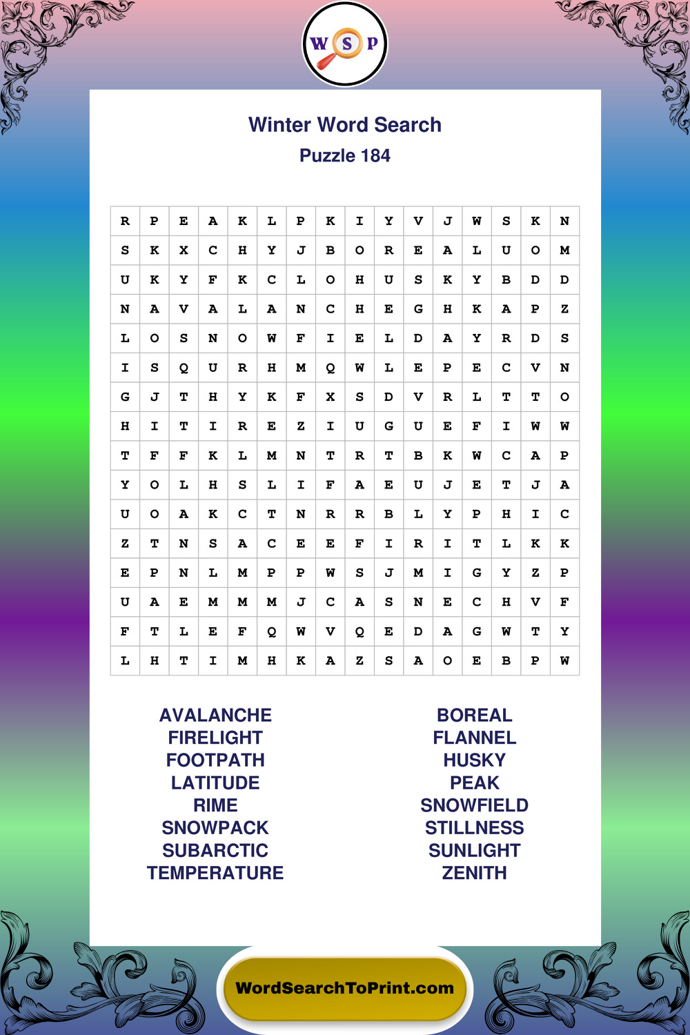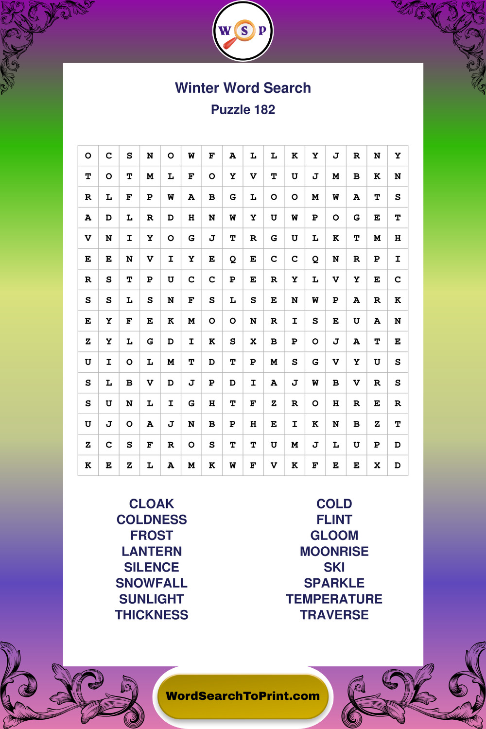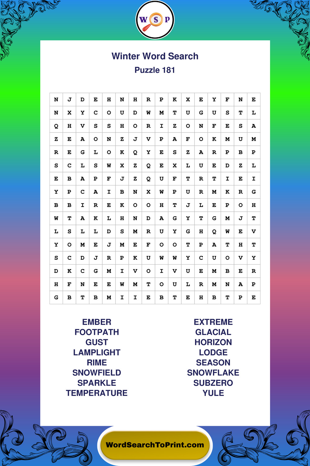 Printable Winter Wordsearch Puzzles