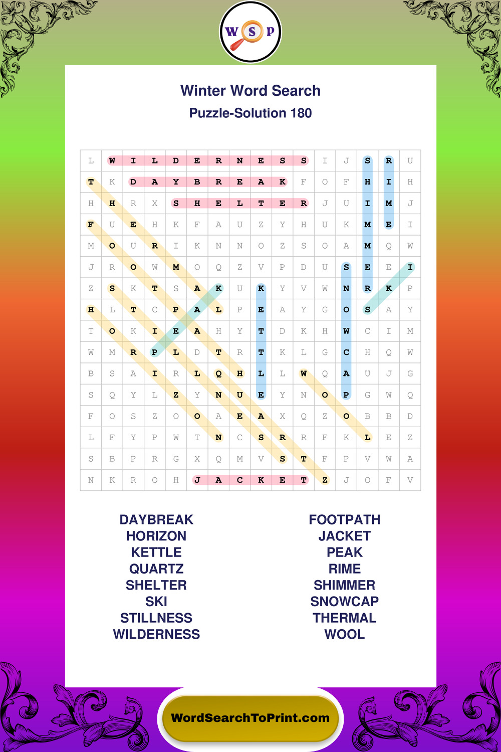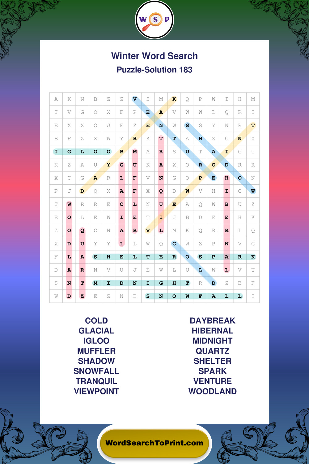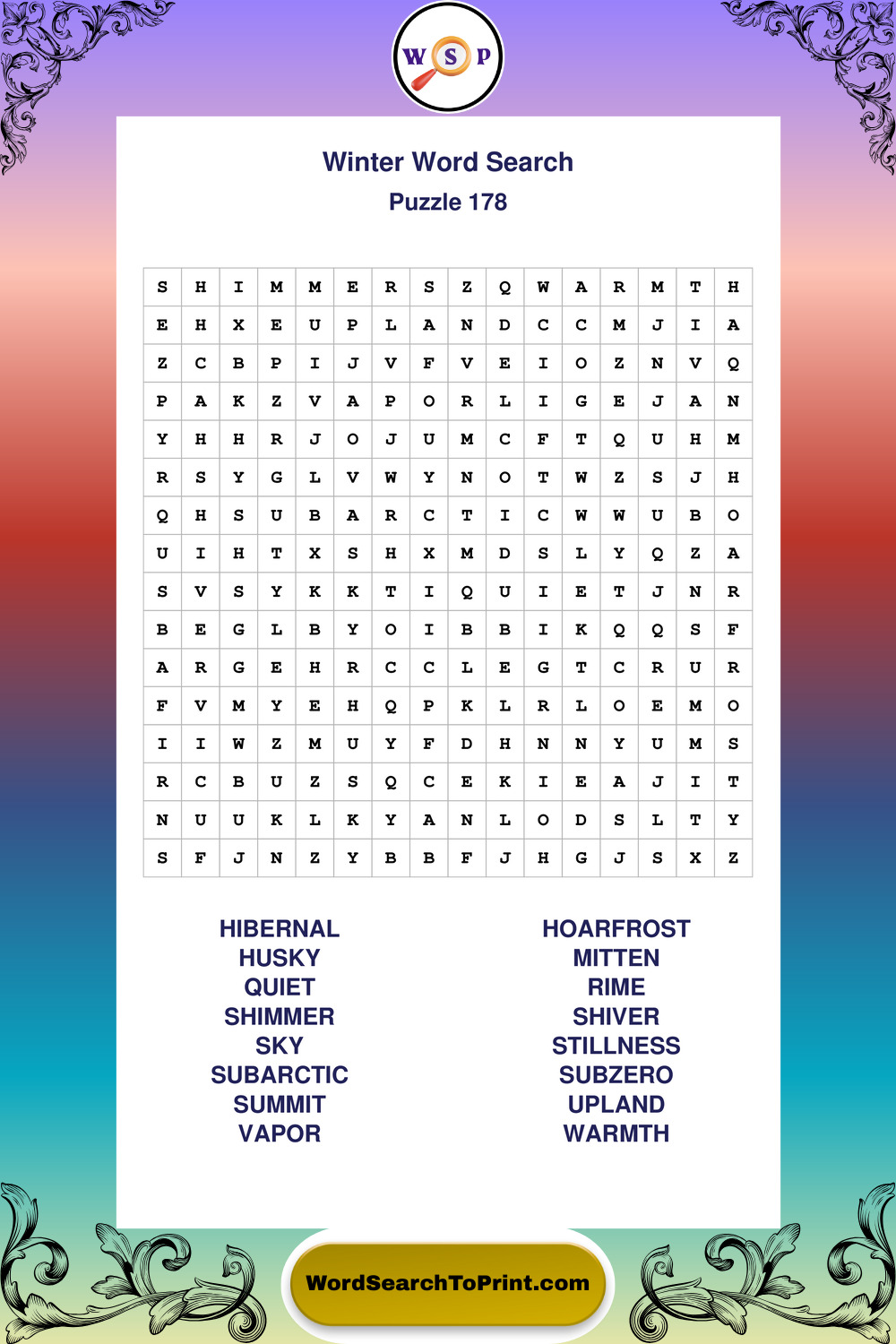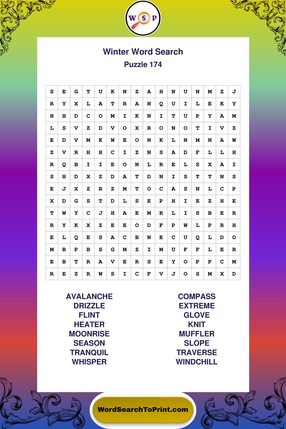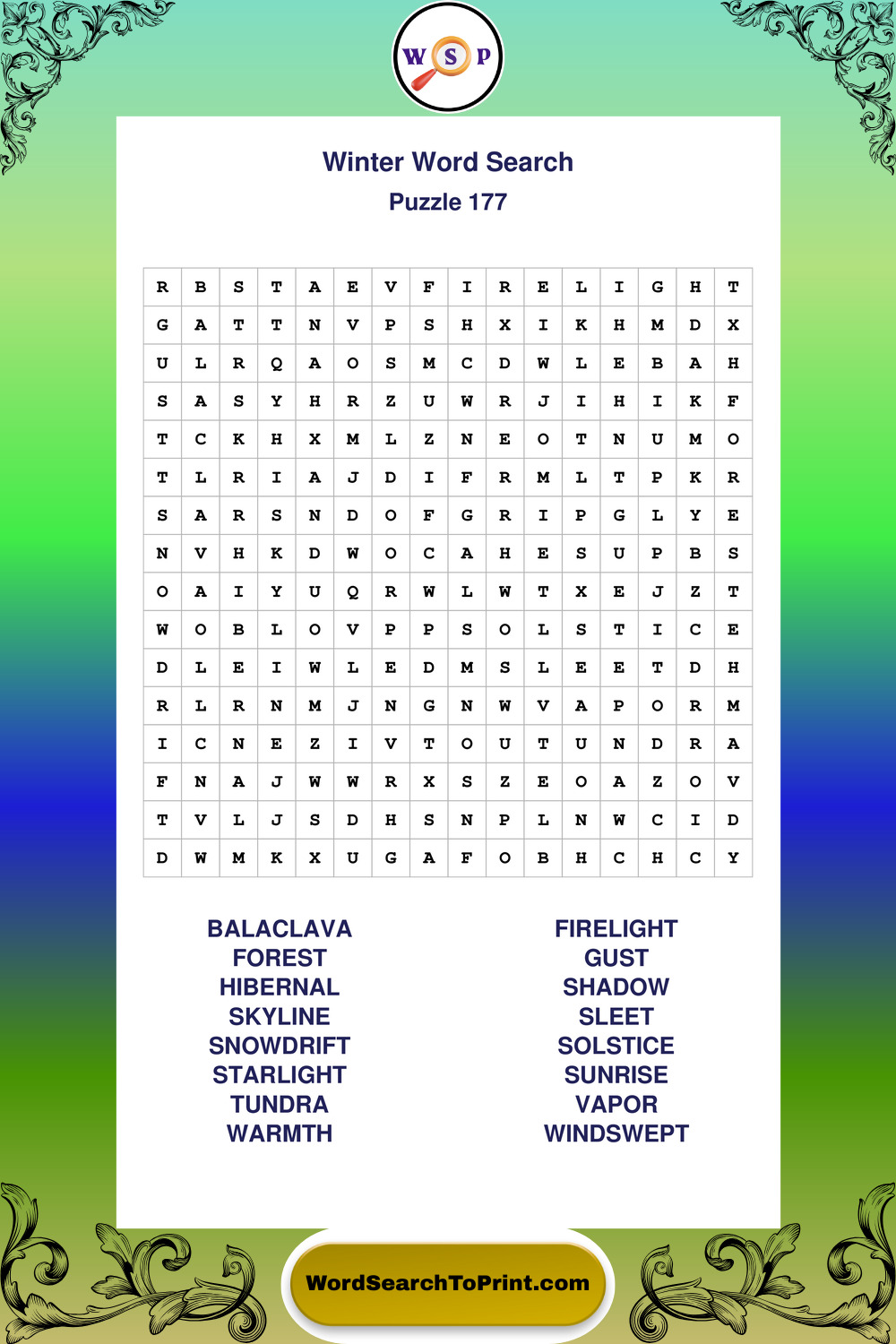Printable Winter Wordsearch Puzzles