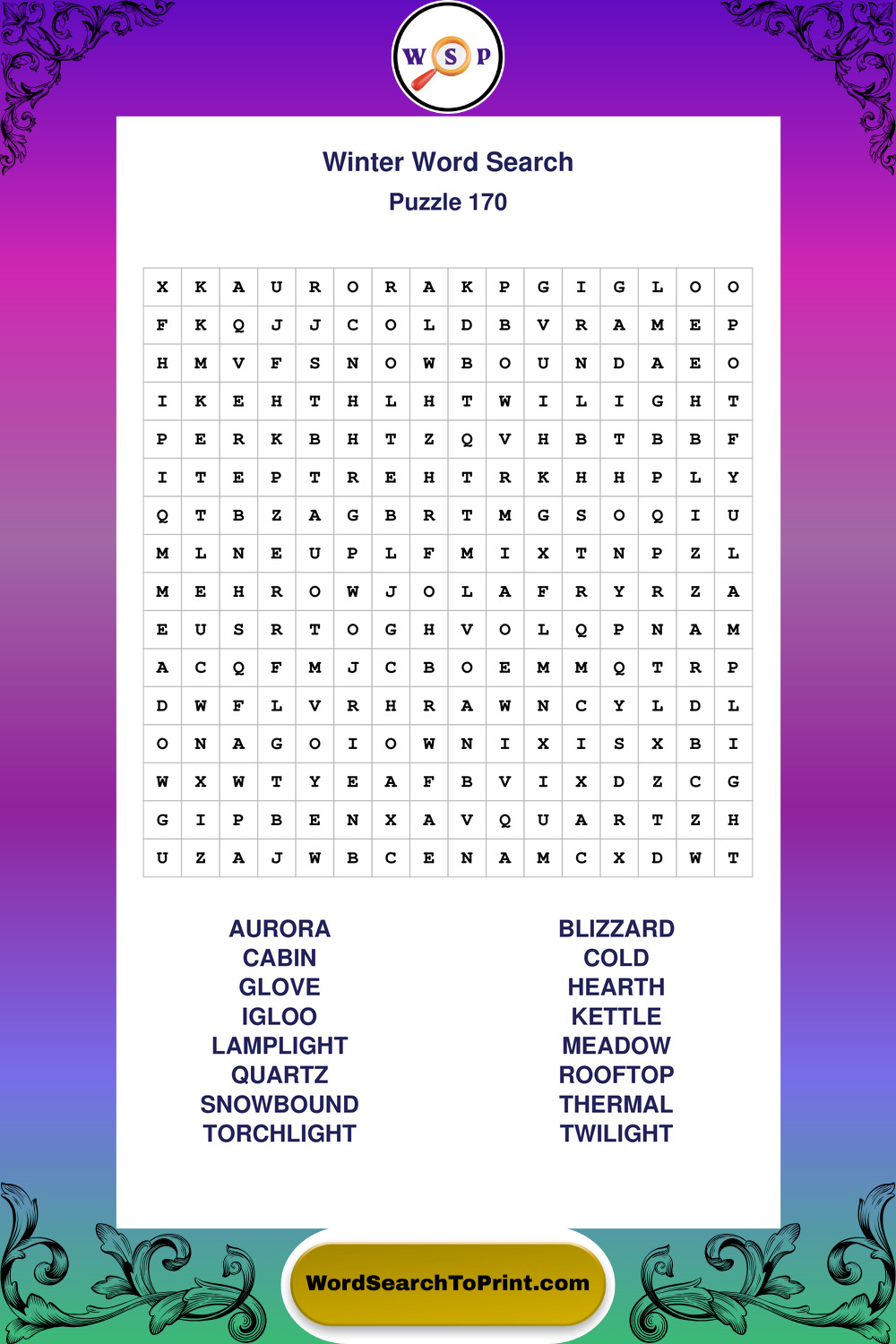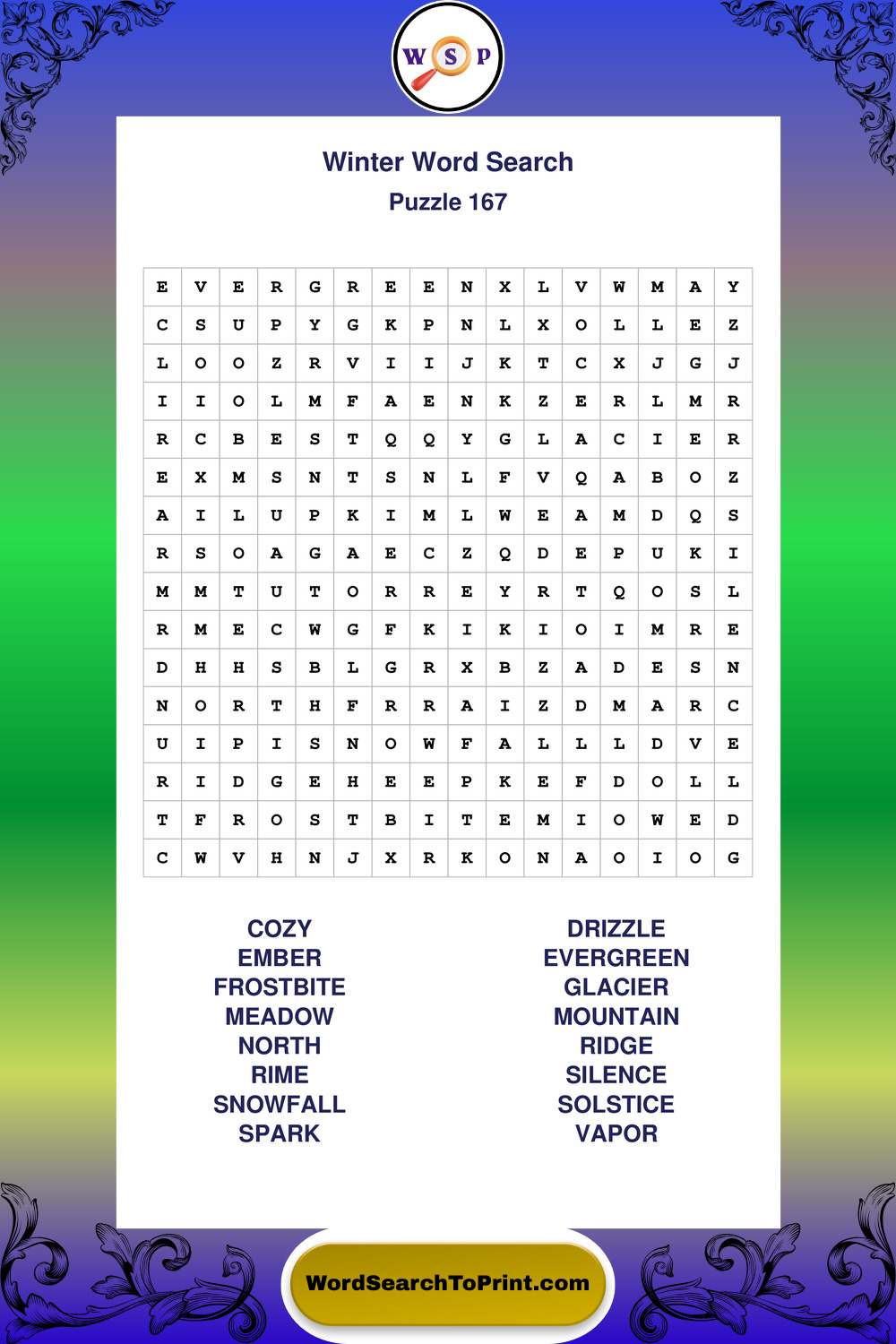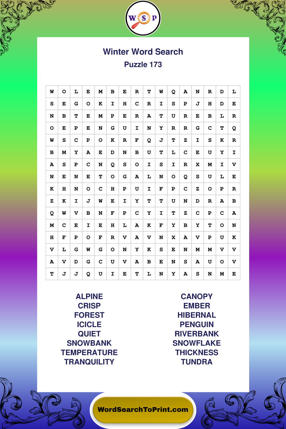 Printable Winter Wordsearch Puzzles