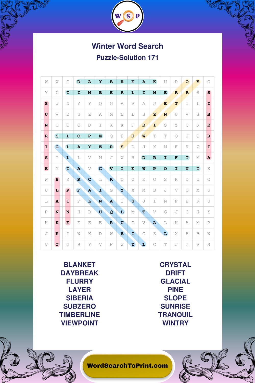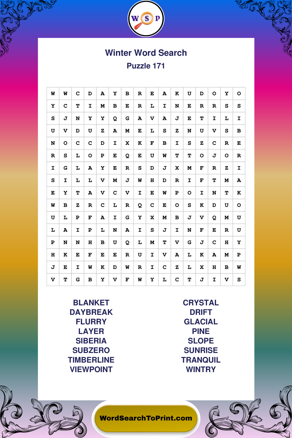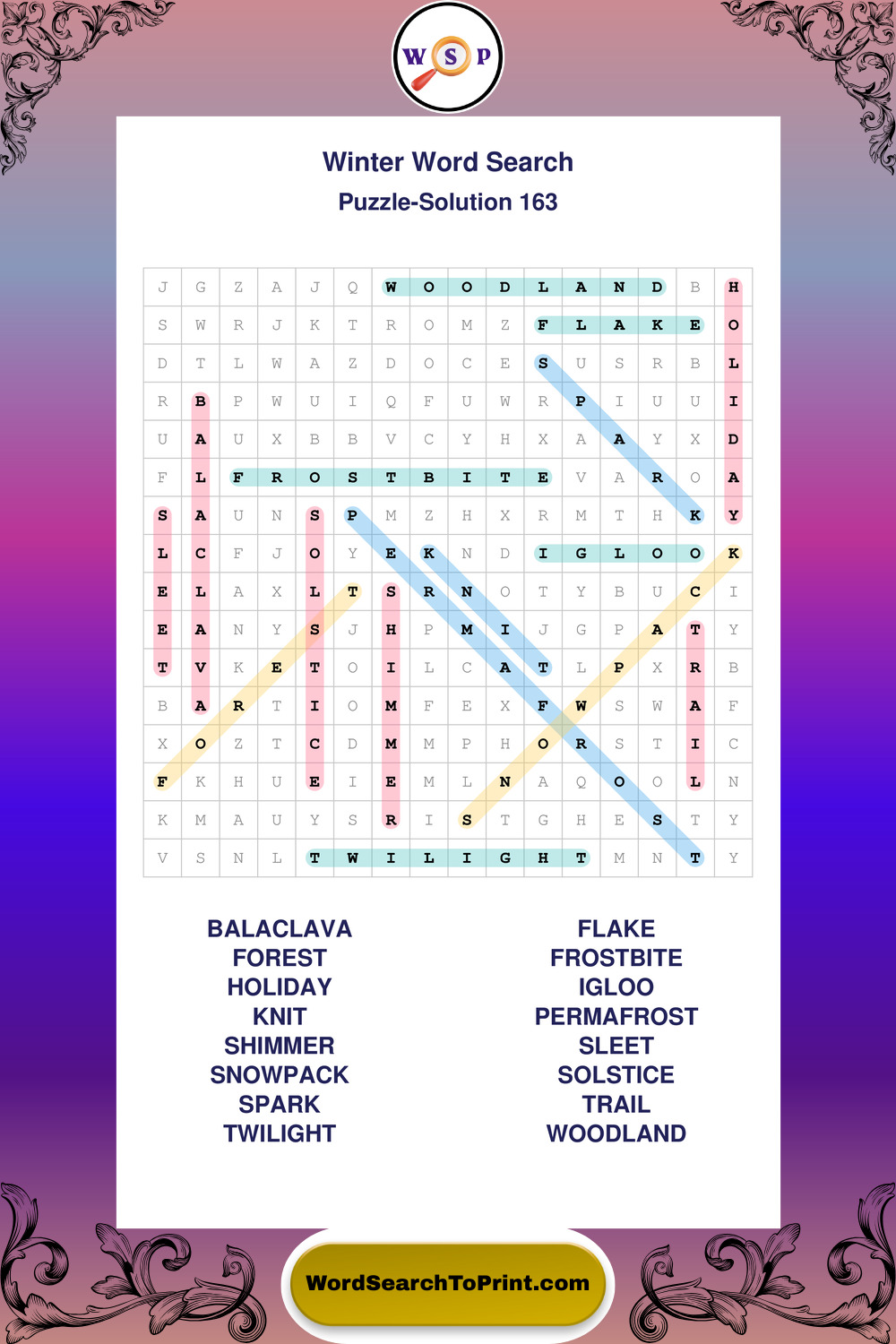 Printable Winter Wordsearch Puzzles