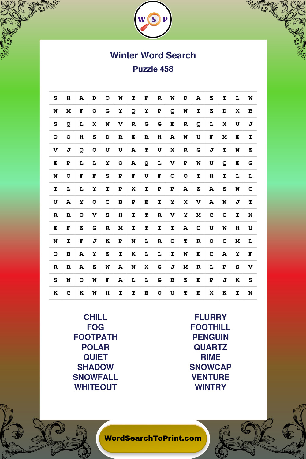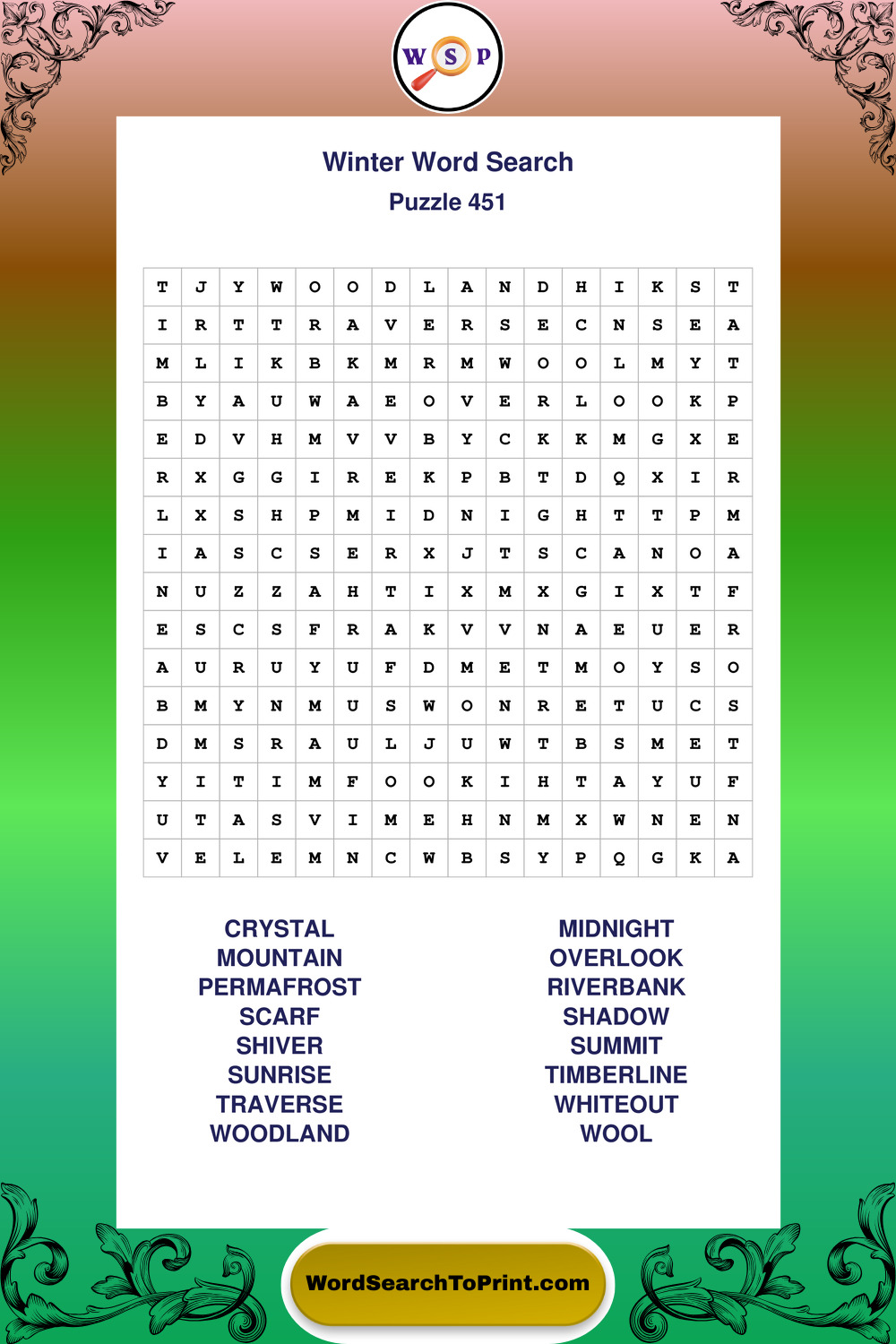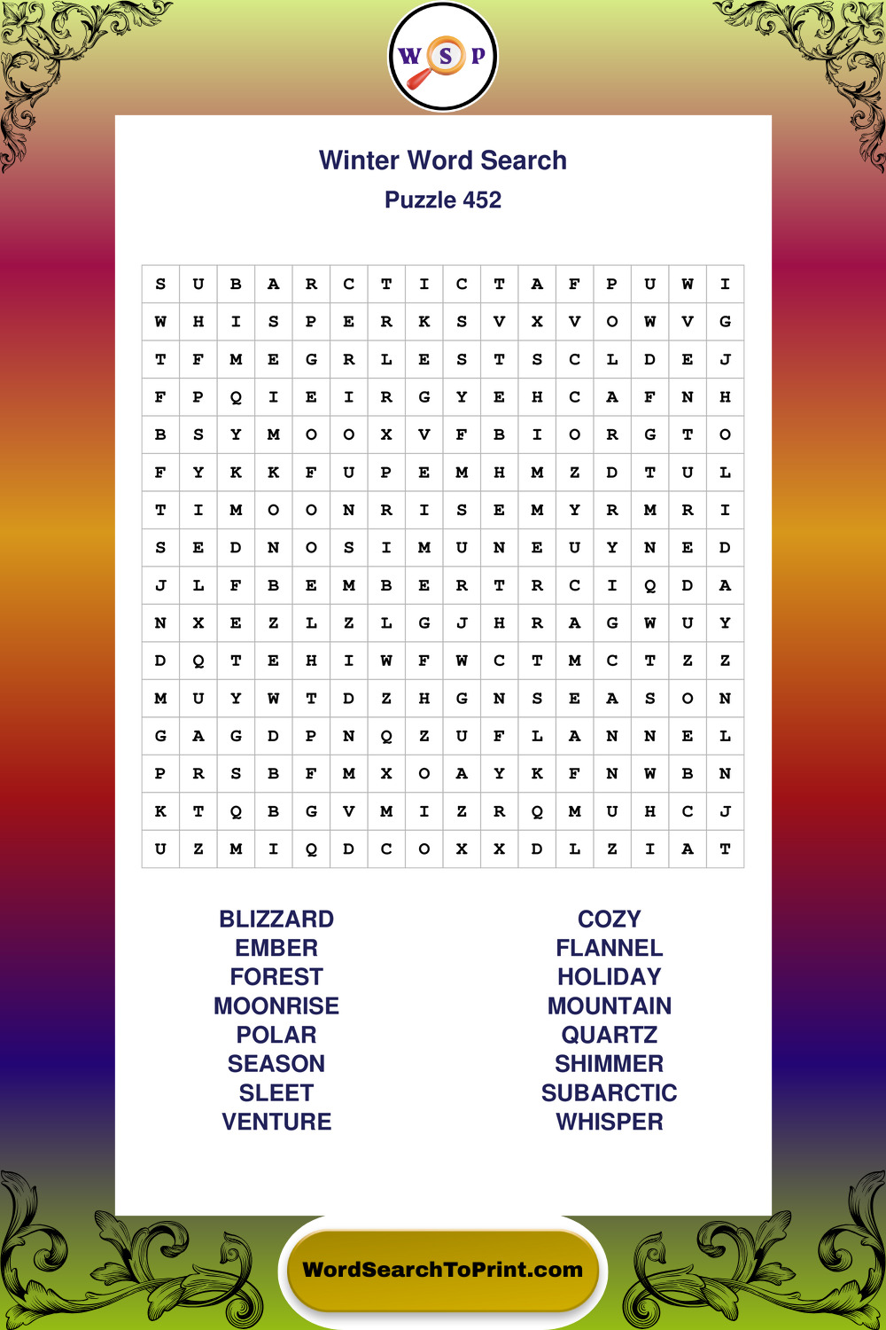 Printable Winter Wordsearch Puzzles