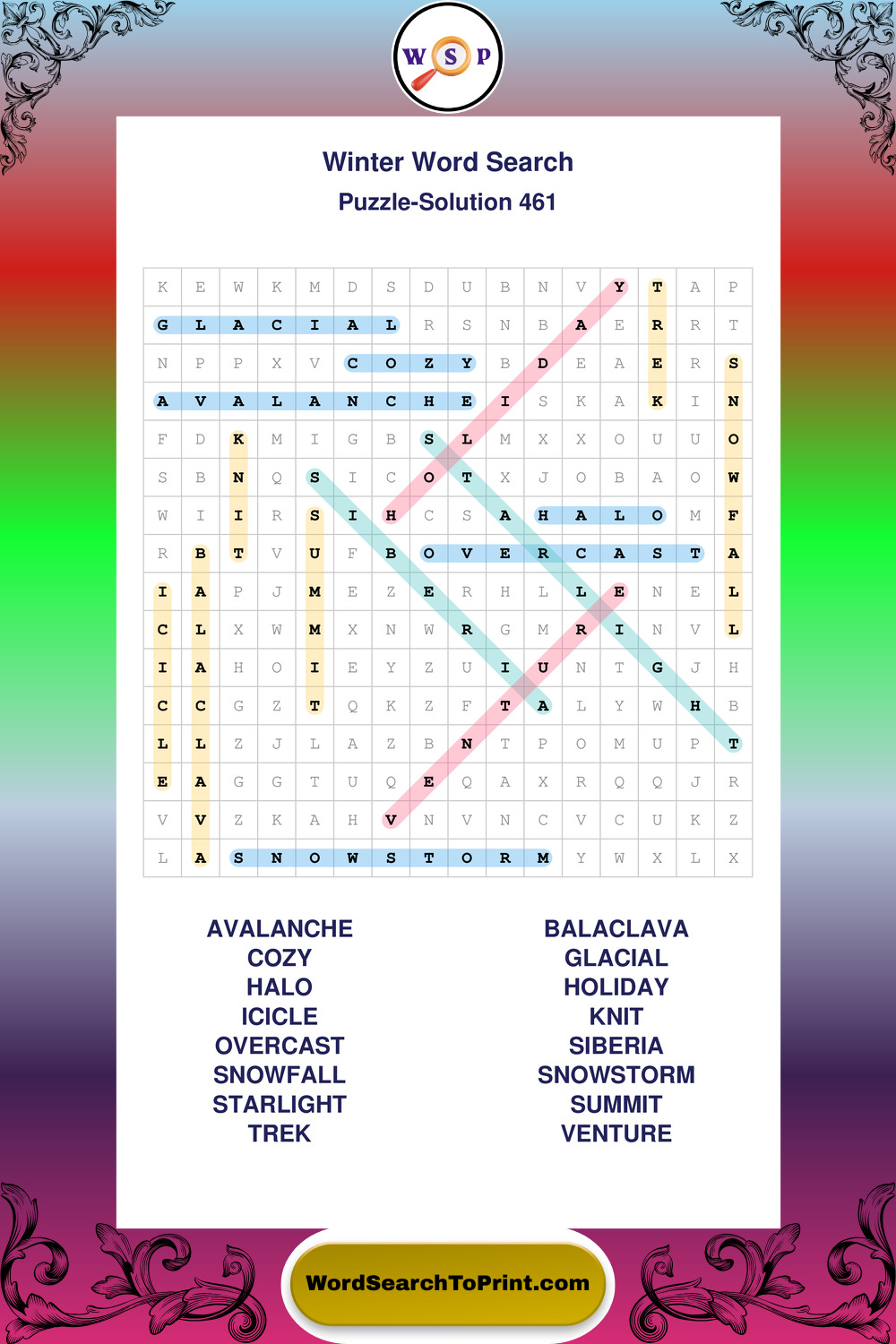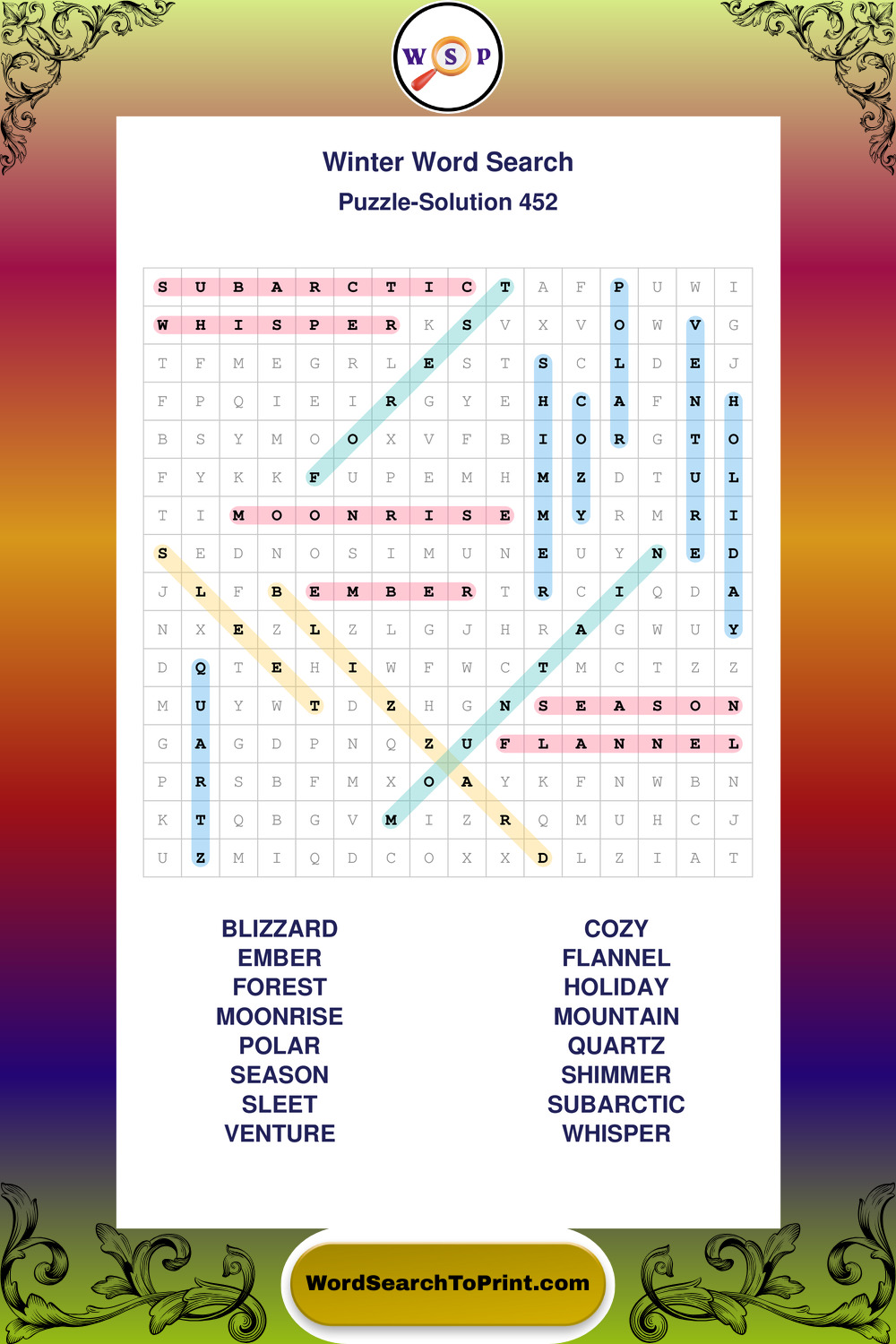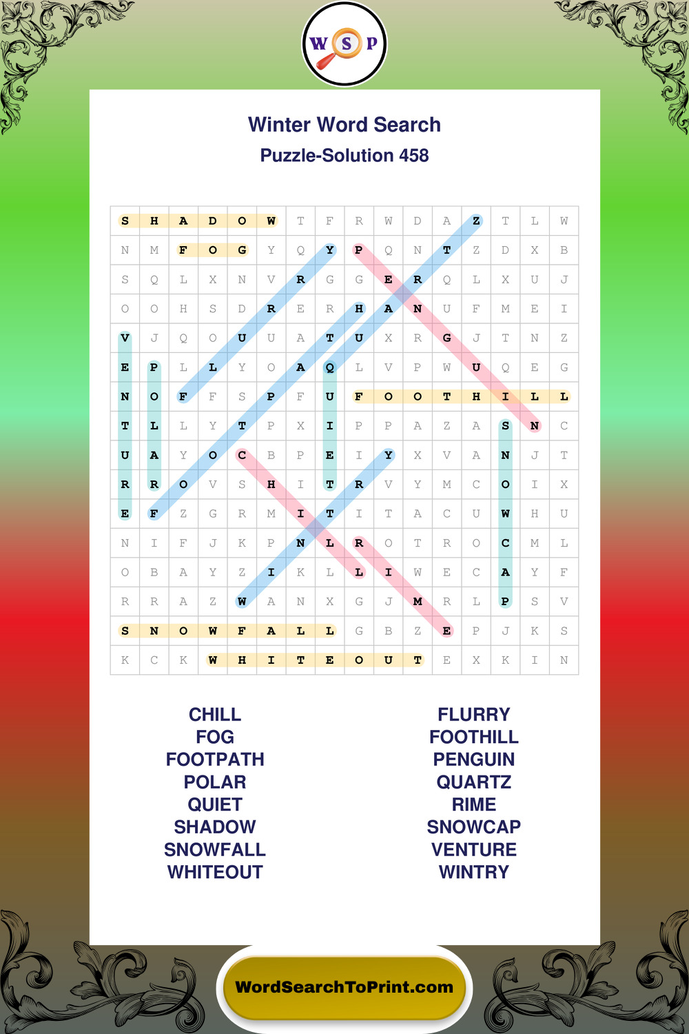 Printable Winter Wordsearch Puzzles