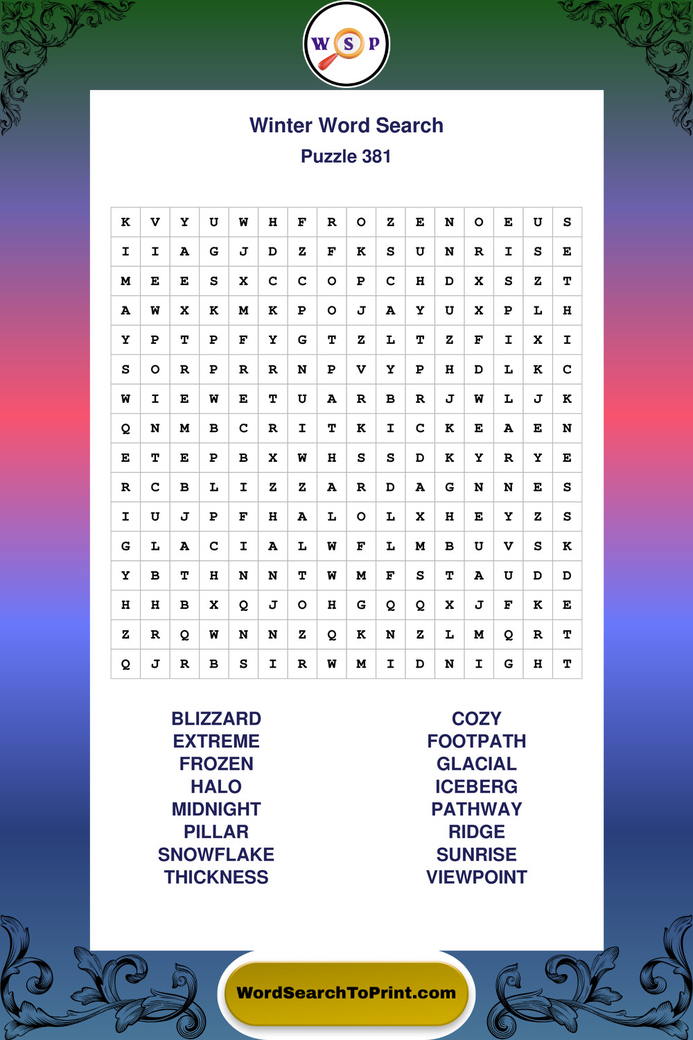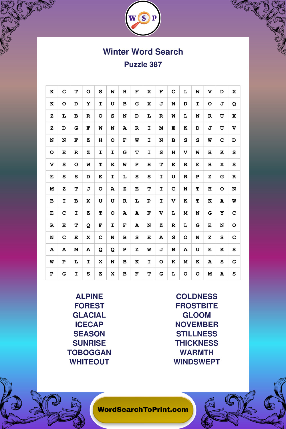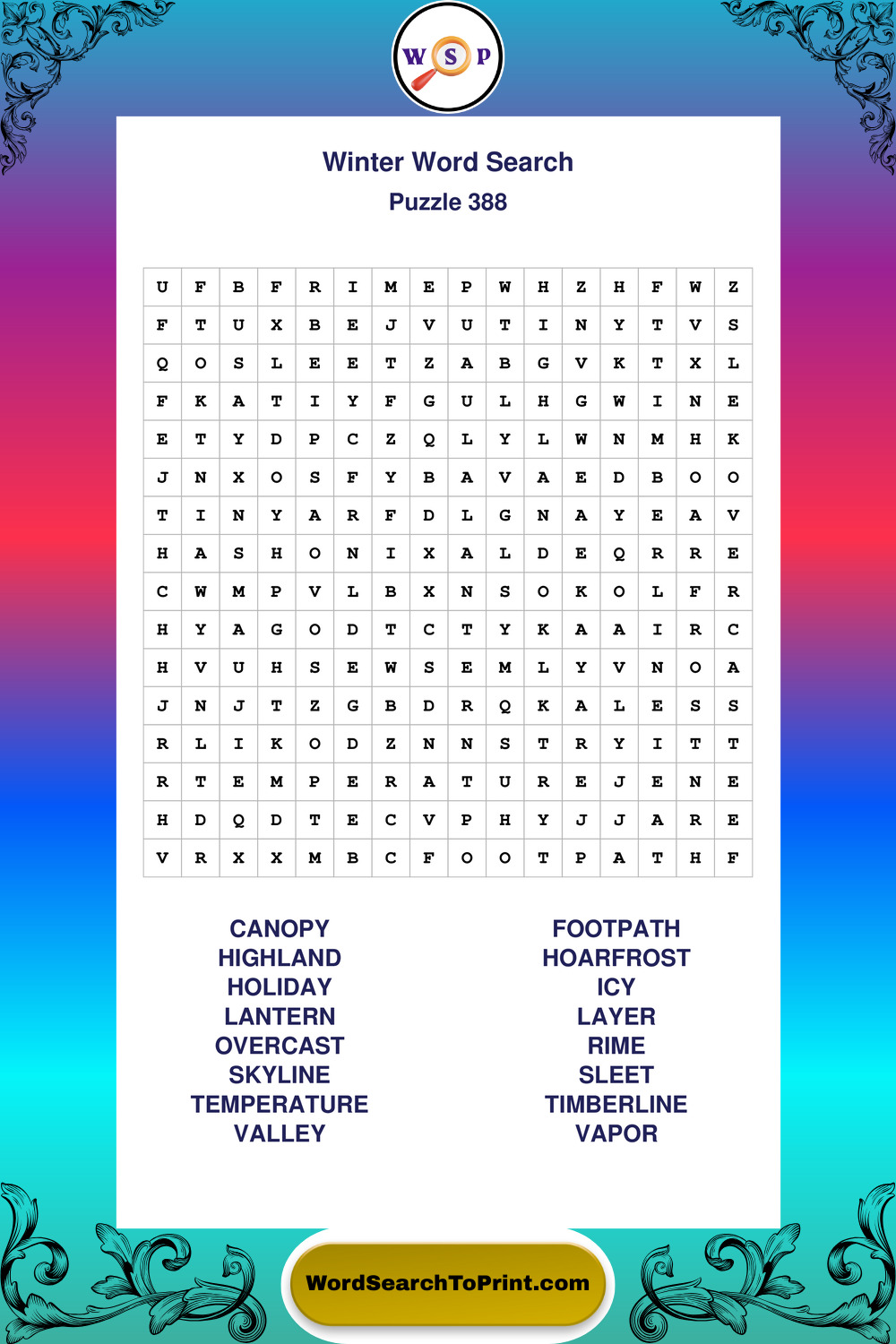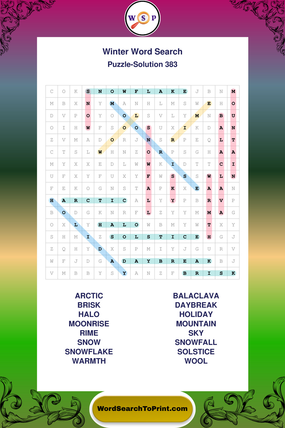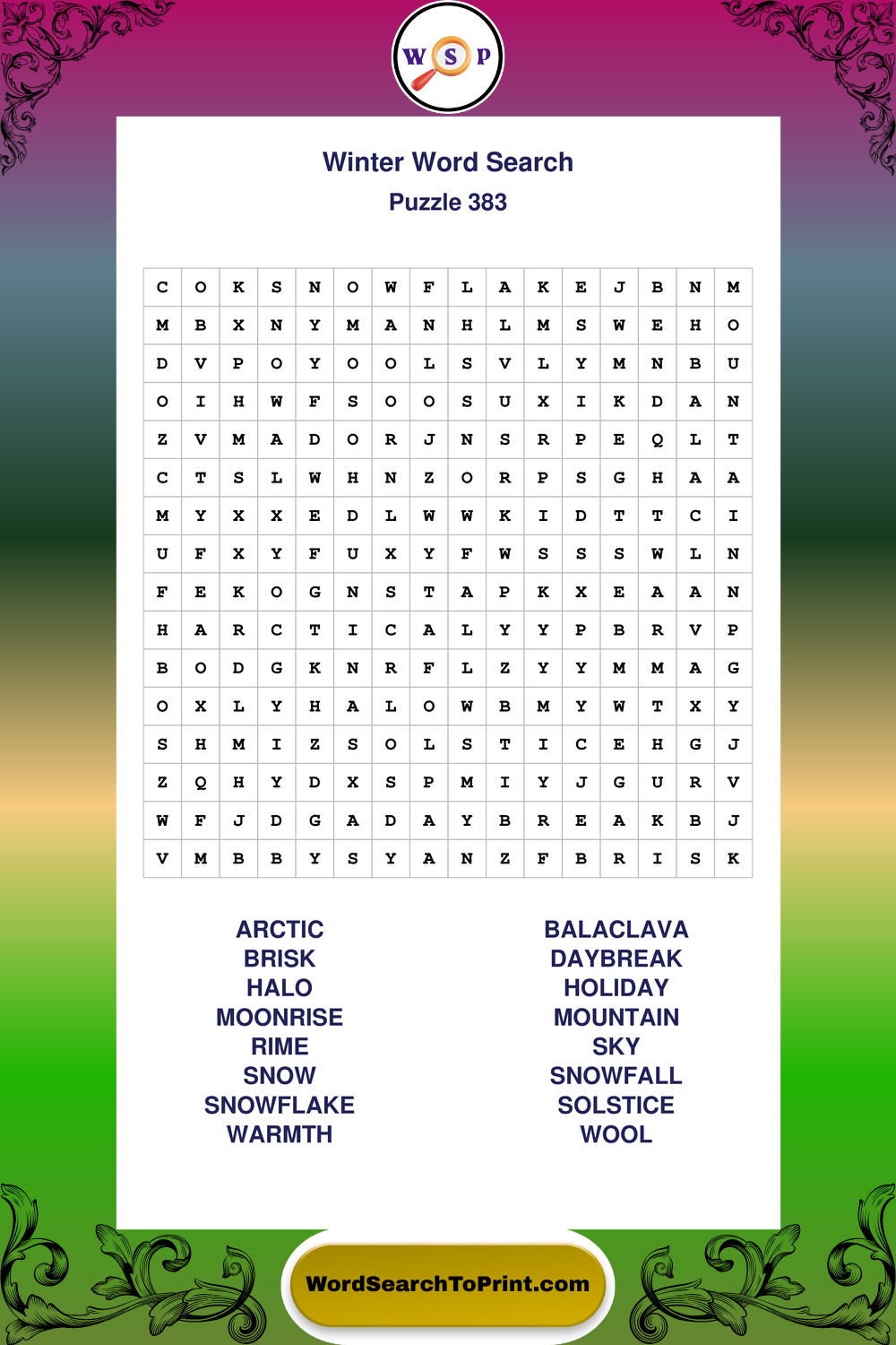 Printable Winter Wordsearch Puzzles