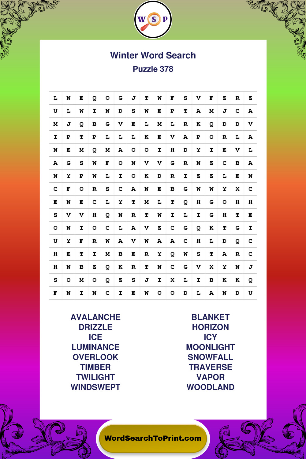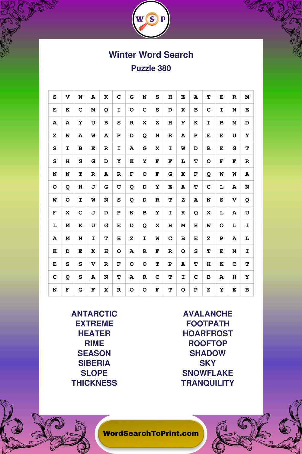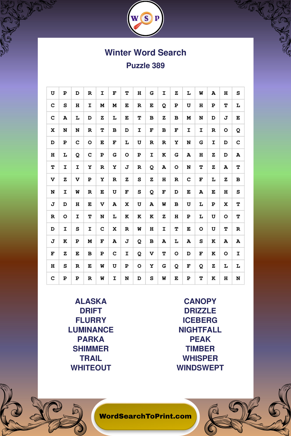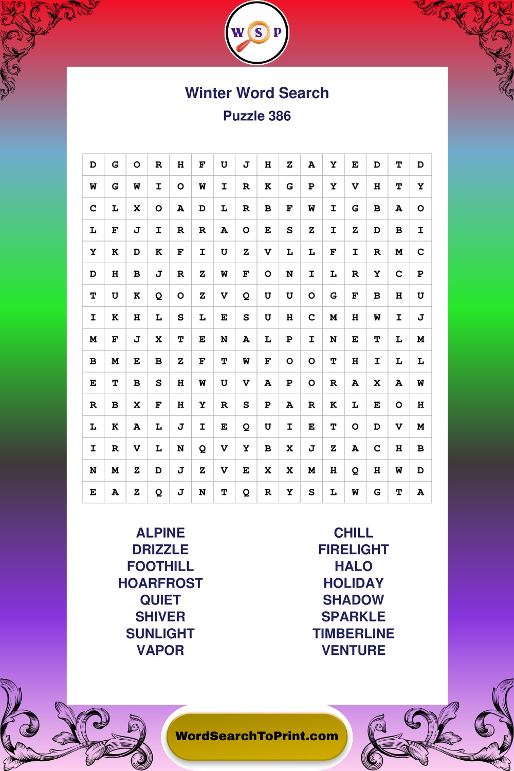 Printable Winter Wordsearch Puzzles