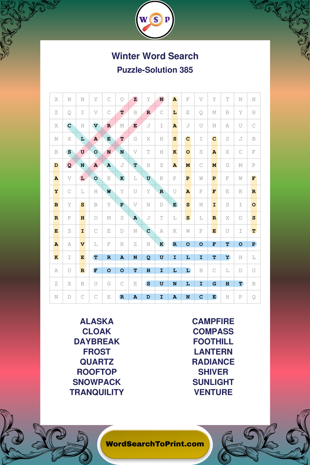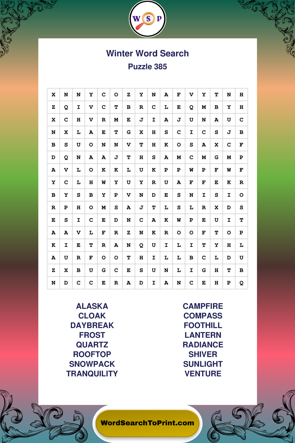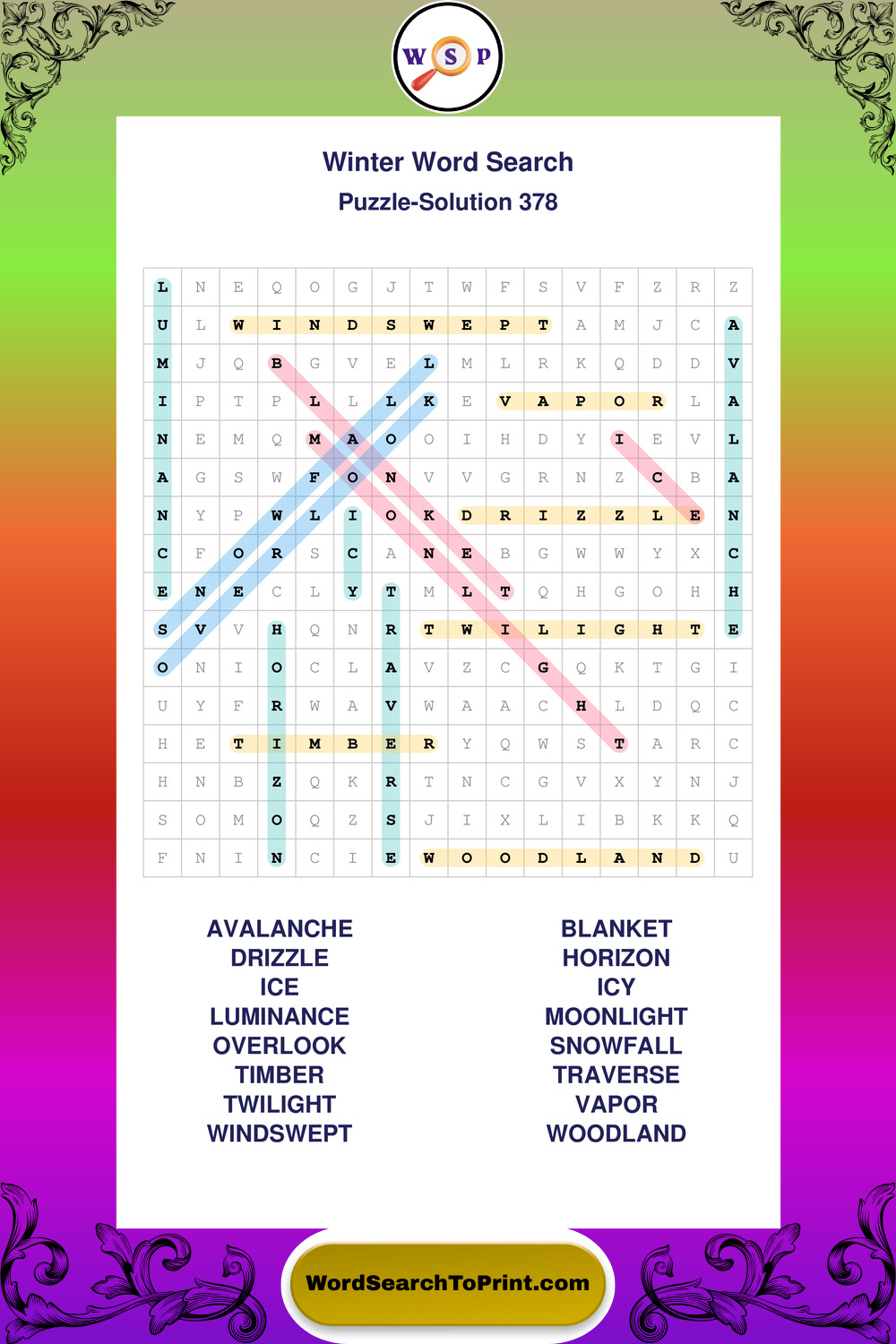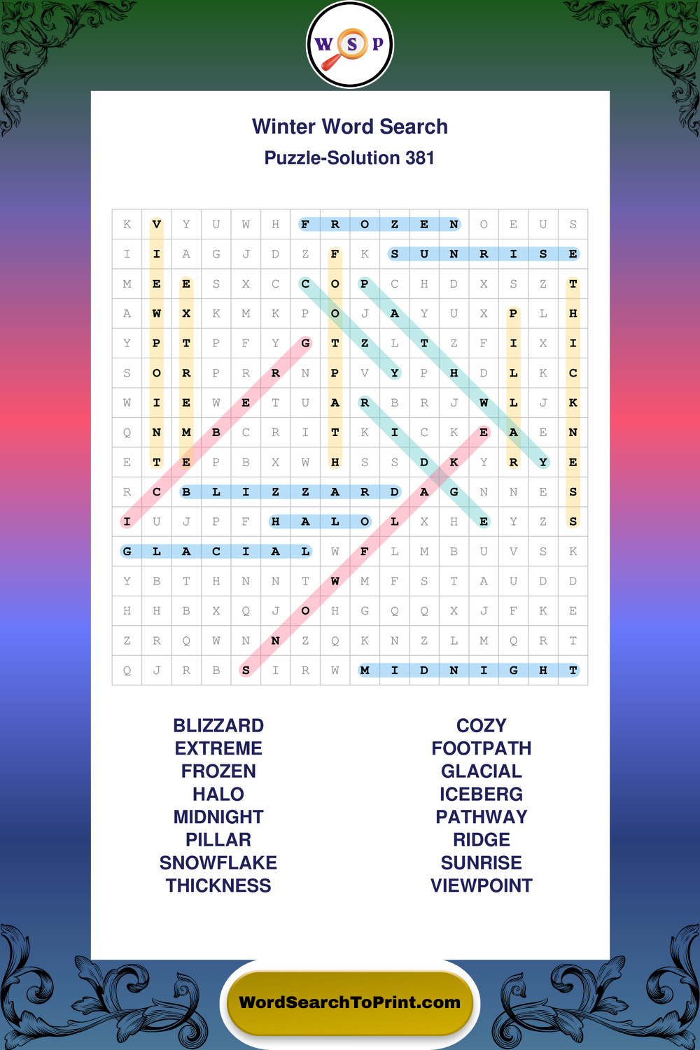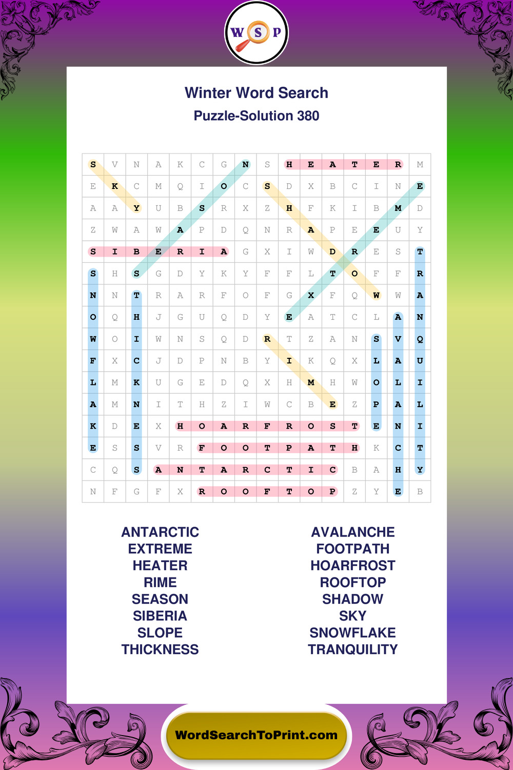 Printable Winter Wordsearch Puzzles