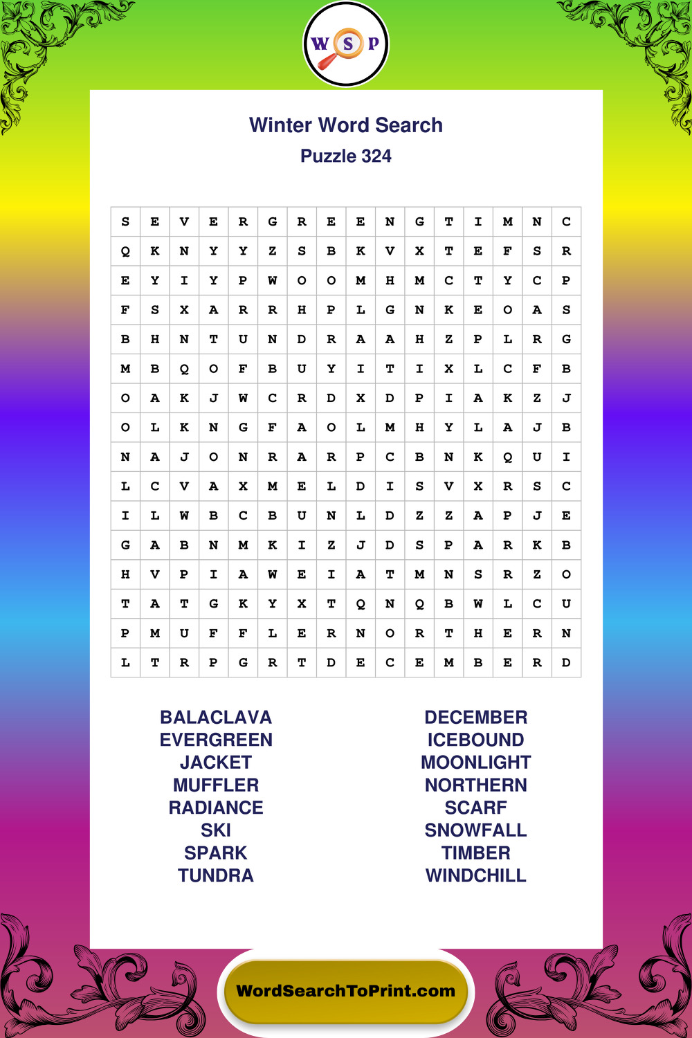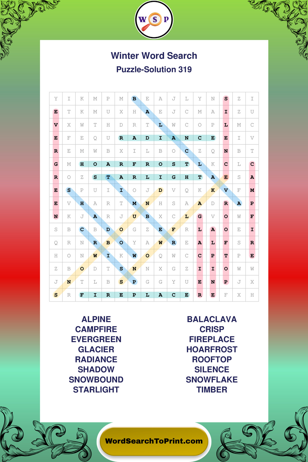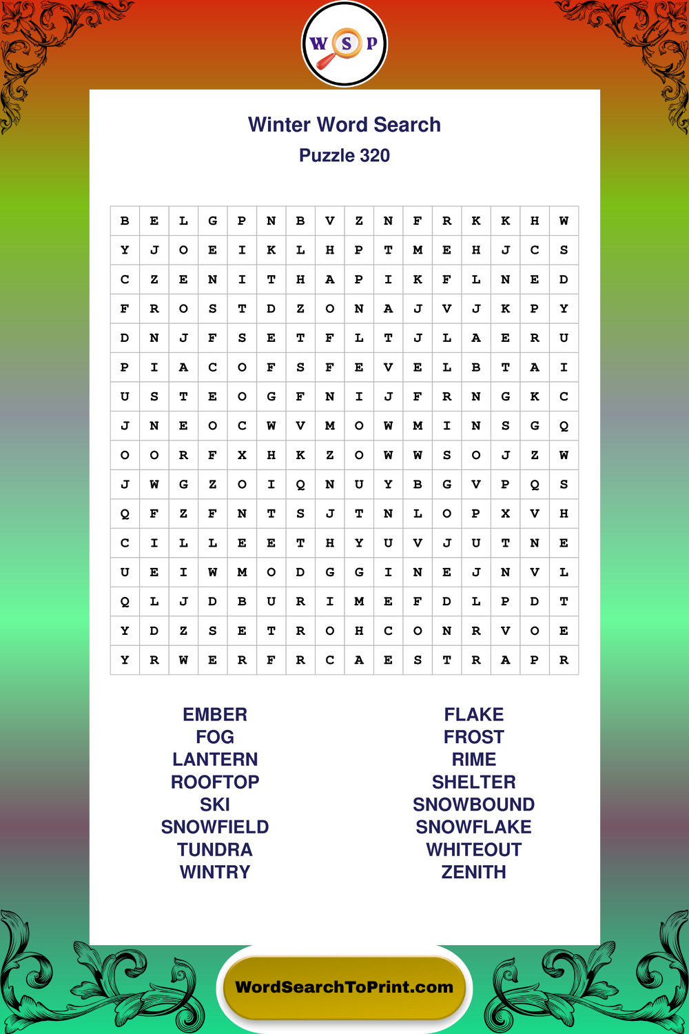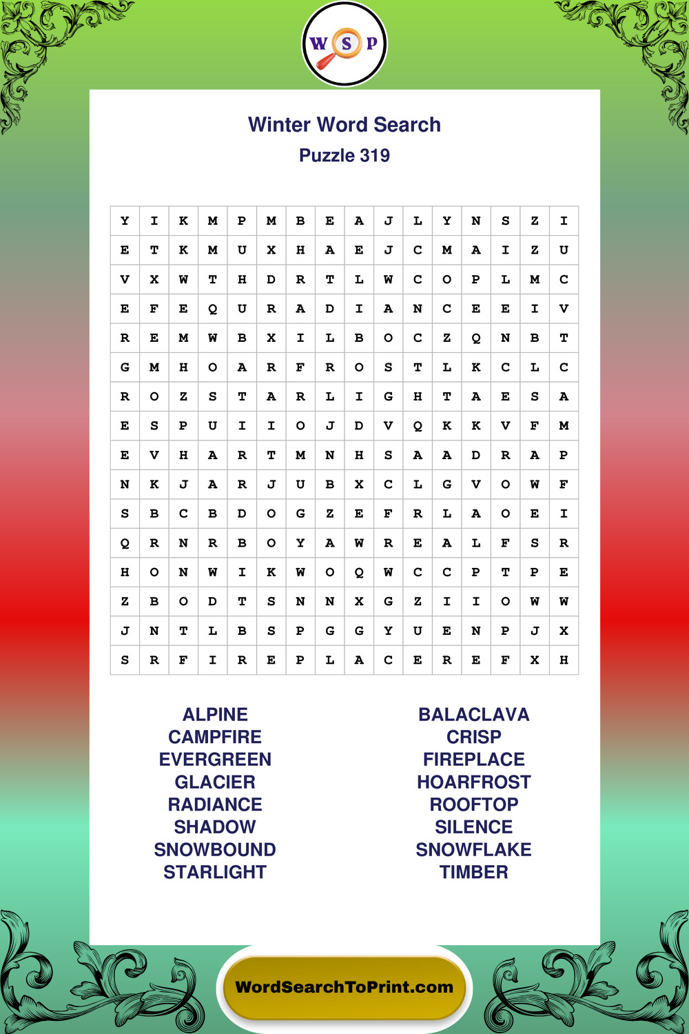 Printable Winter Wordsearch Puzzles
