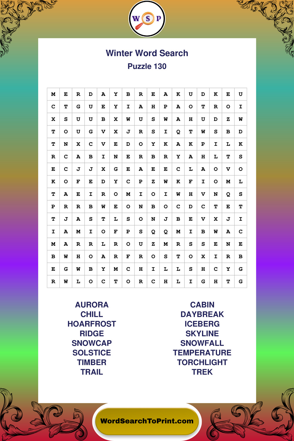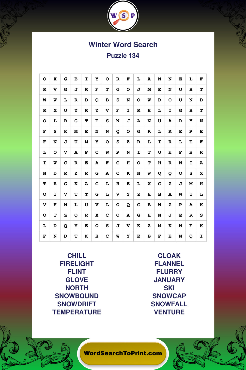Printable Winter Wordsearch Puzzles